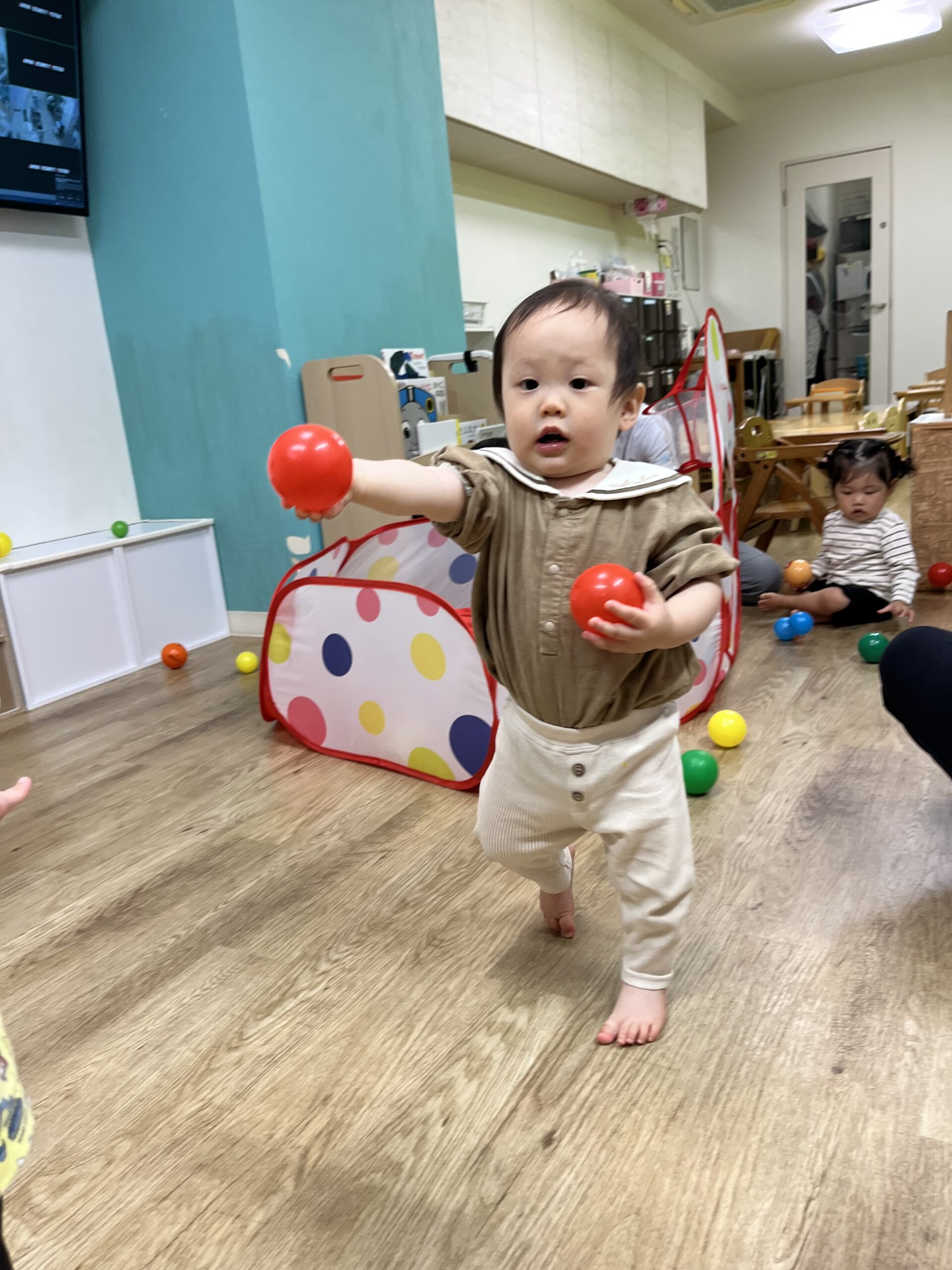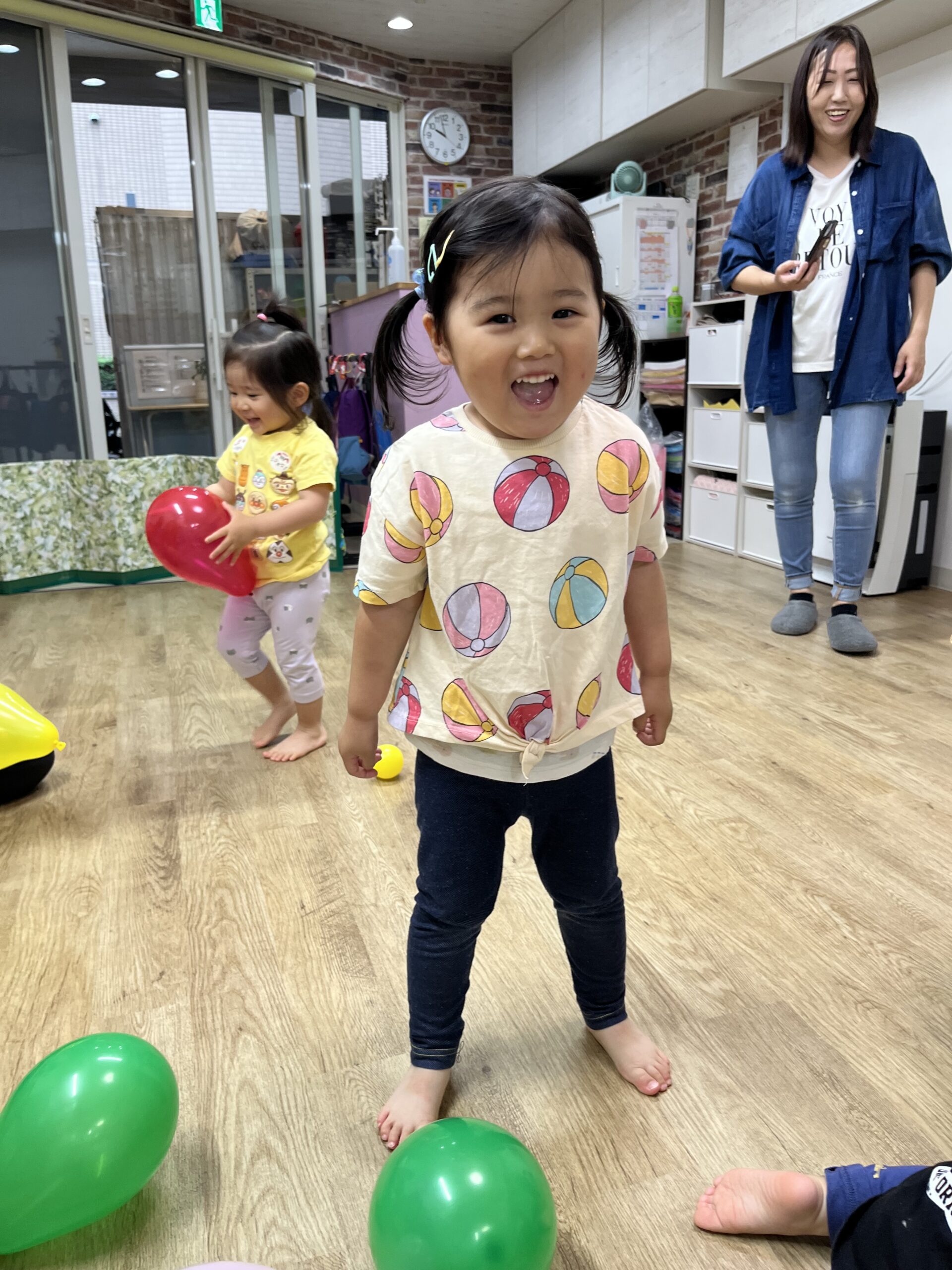 今日は朝避難訓練をした後、風船とボールを出して遊びました☺️