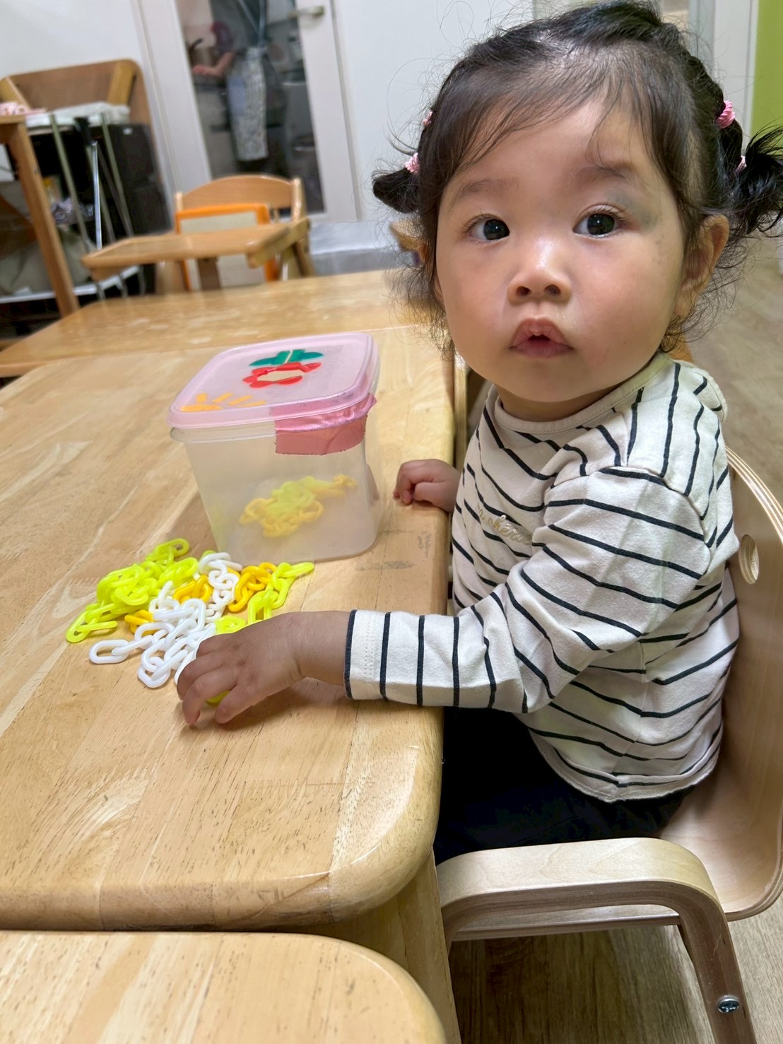 「〇〇ちゃんピンク色にしたの!」と好みの色を選んで遊ぶ子もいました💕