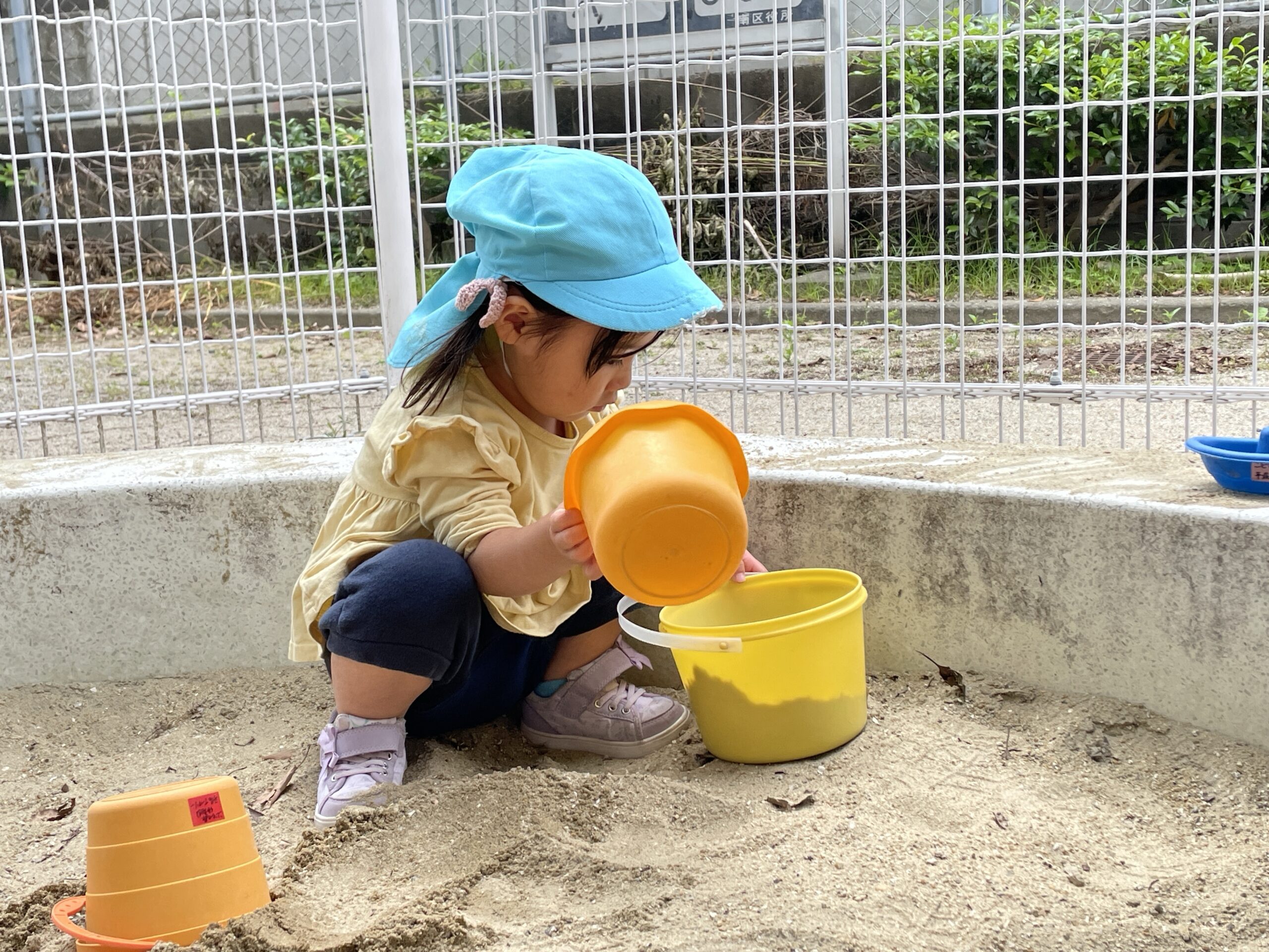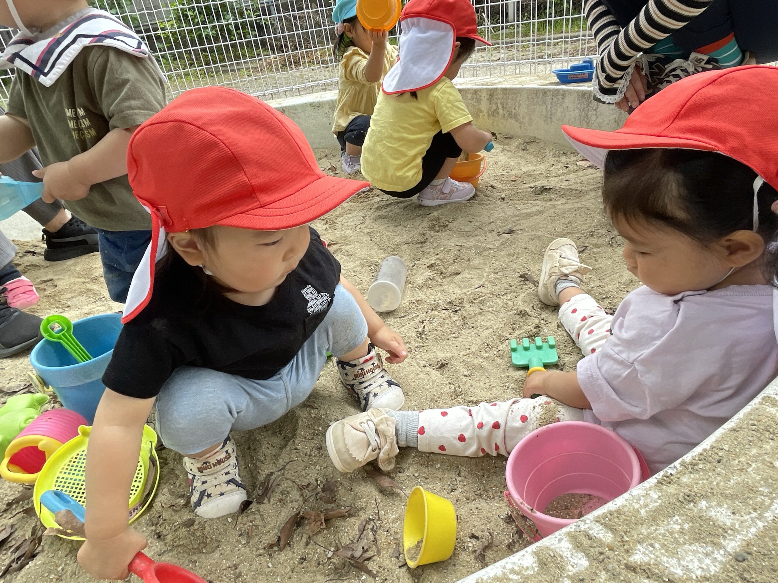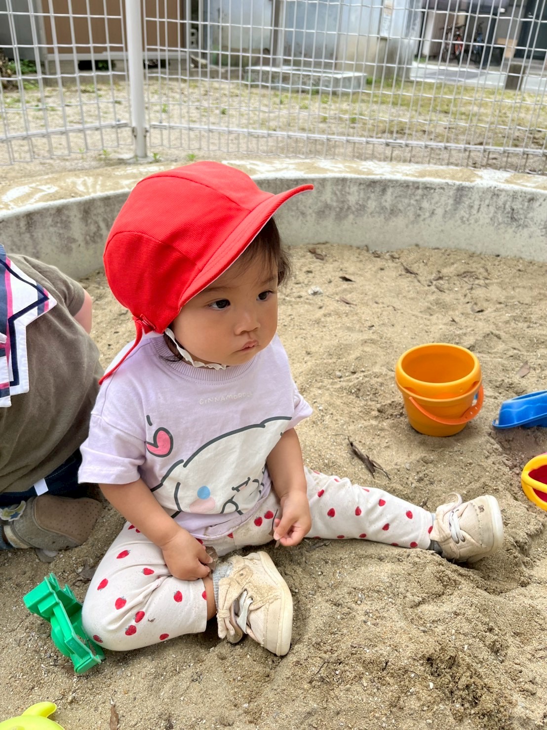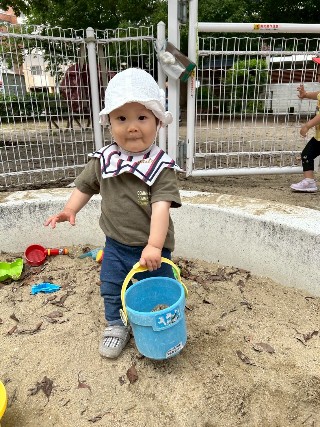 今日は曇り☁️。風も心地よく吹いていて、お外遊び日和。砂遊びや滑り台🛝、虫探しを存分に楽しみました。