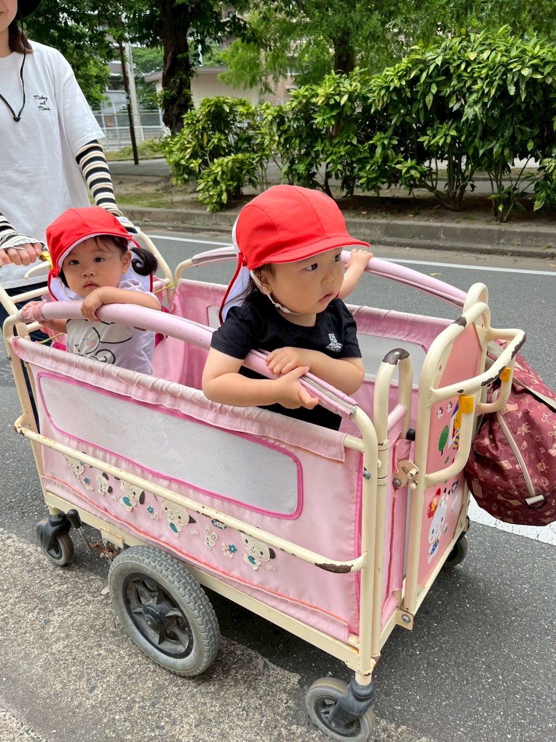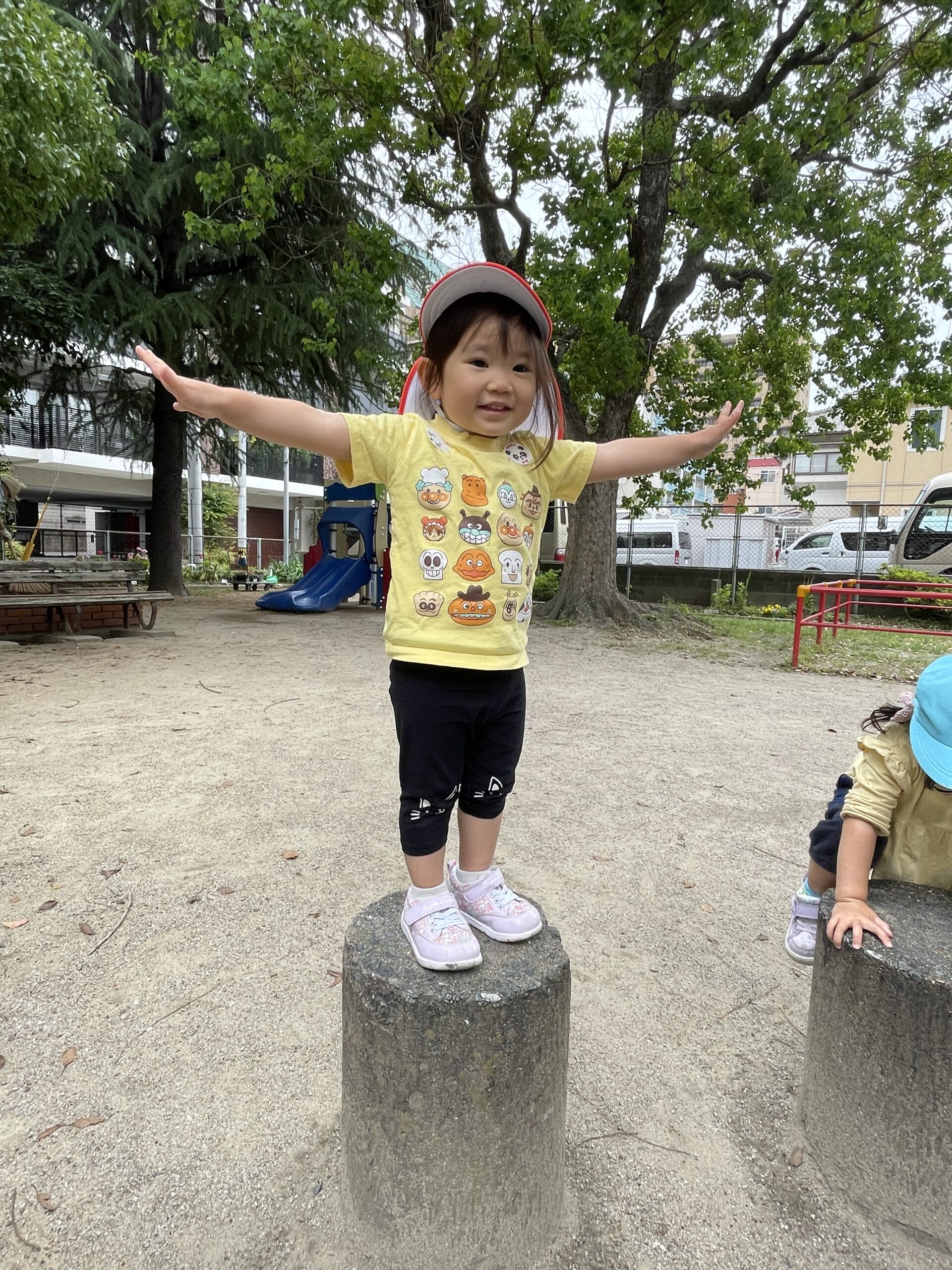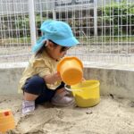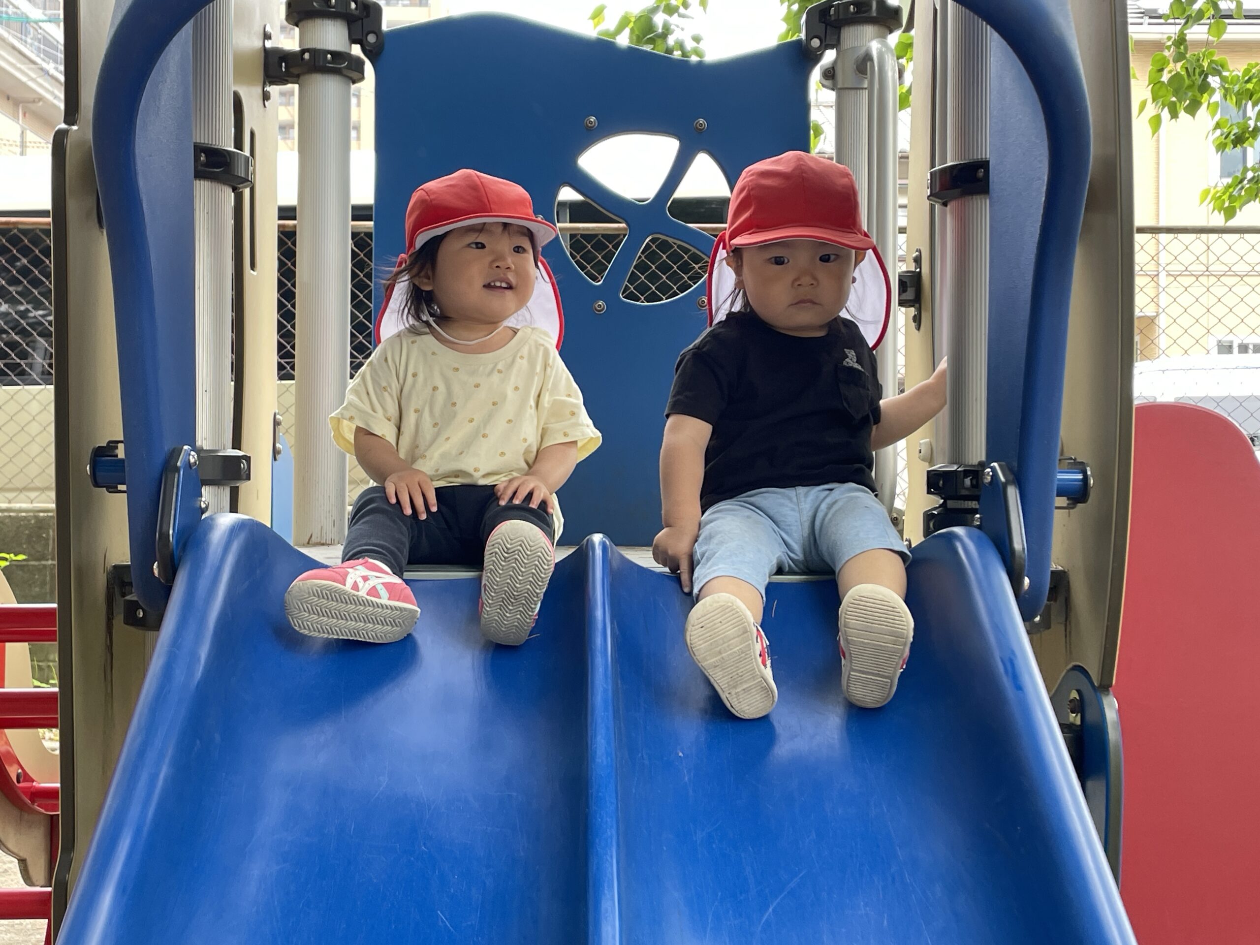 今日は曇り☁️。風も心地よく吹いていて、お外遊び日和。砂遊びや滑り台🛝、虫探しを存分に楽しみました。