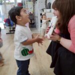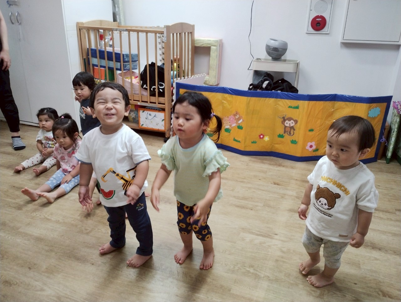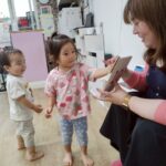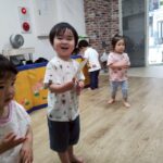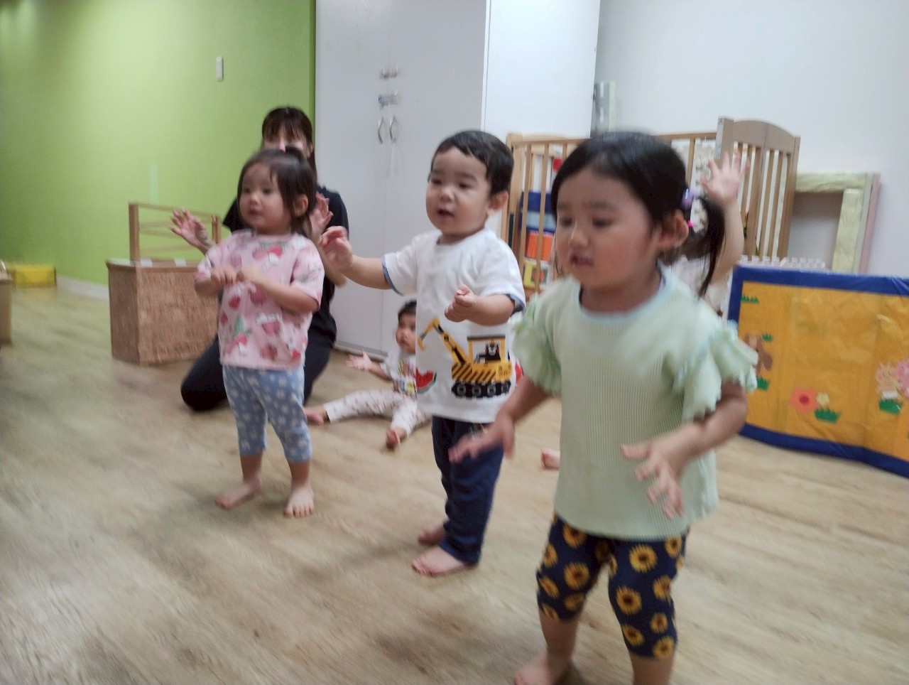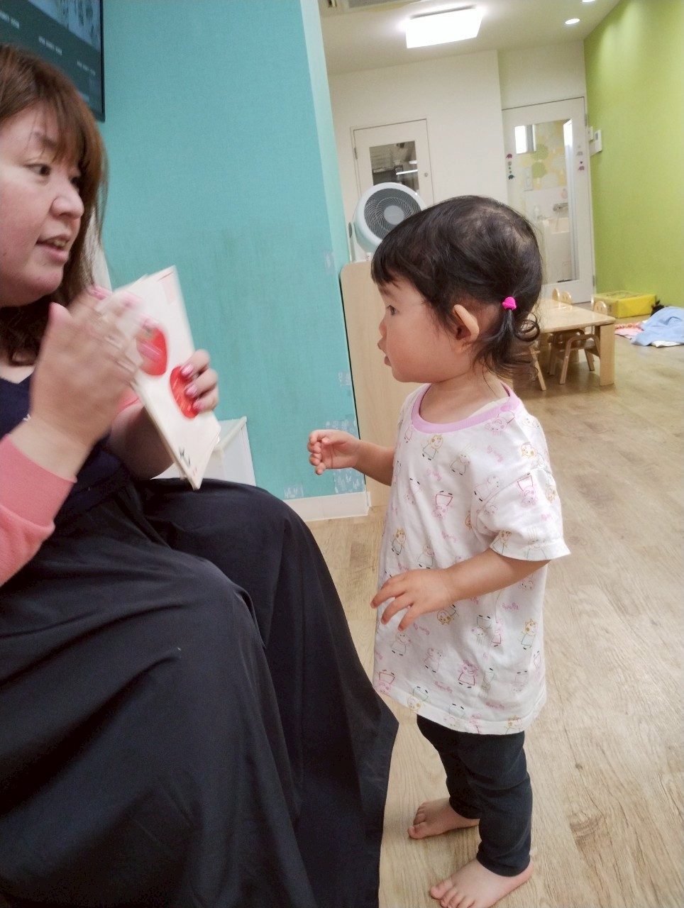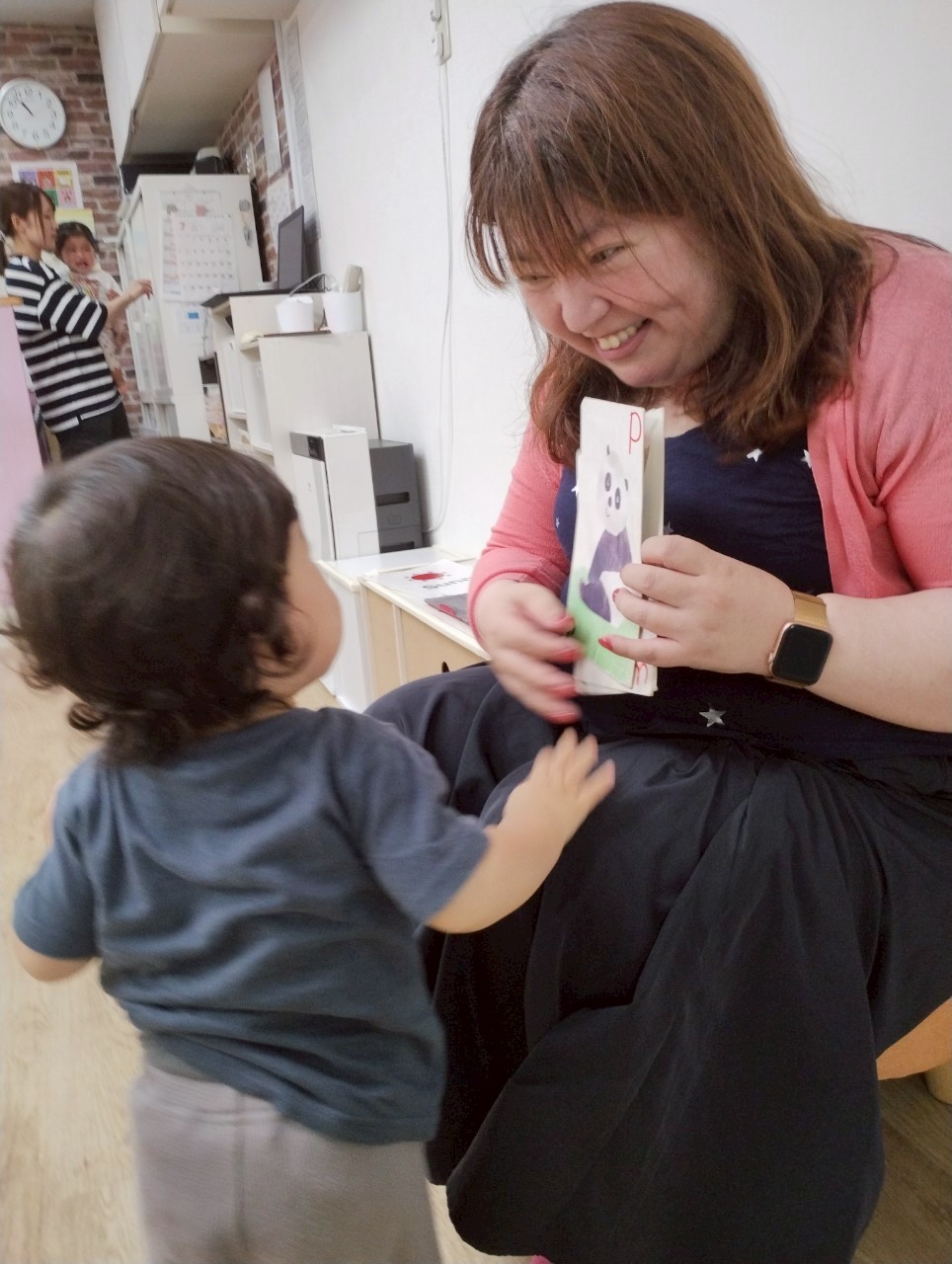 英語教室では、カードハンティングをしました。お部屋の中をあちこち覗き込んでカードを探す子どもたちでした。カードが見つかるととっても嬉しそうに渡しにいっていましたよ(*^-^*)