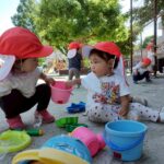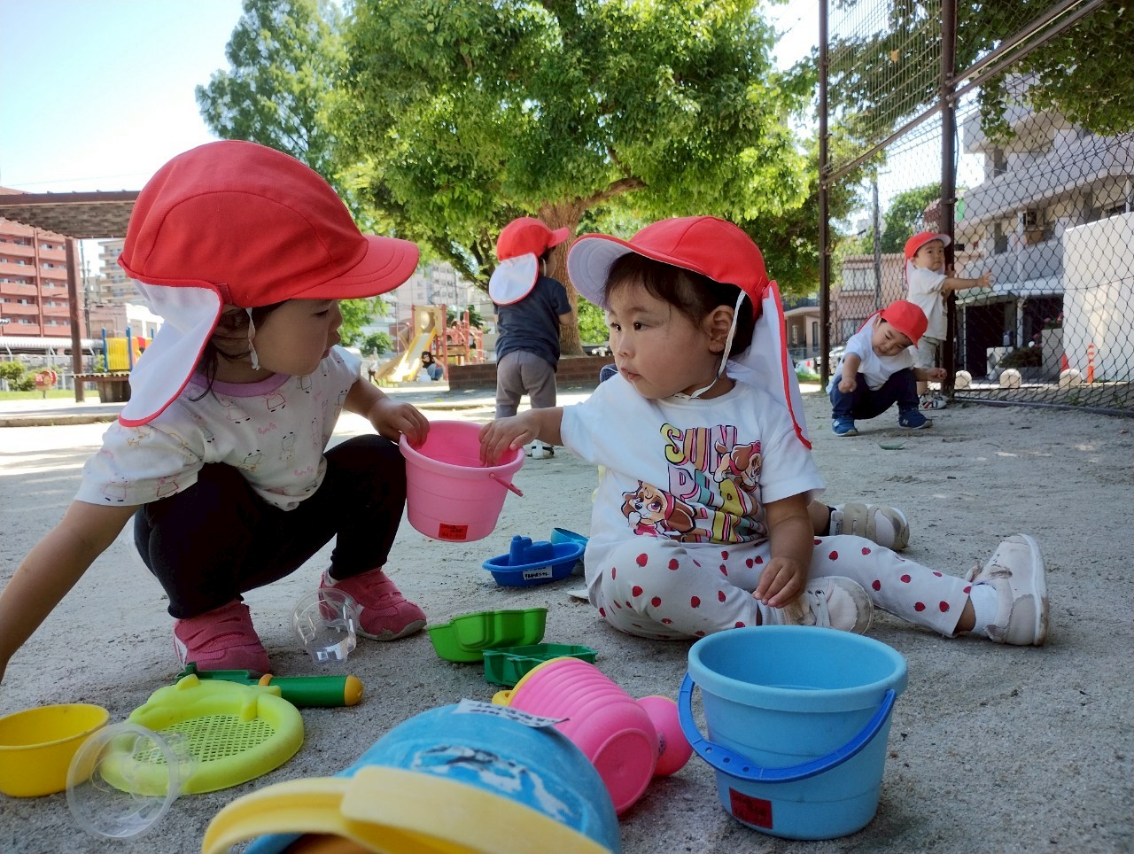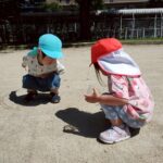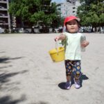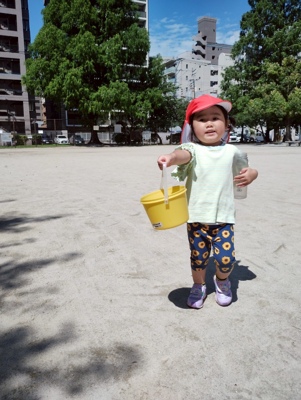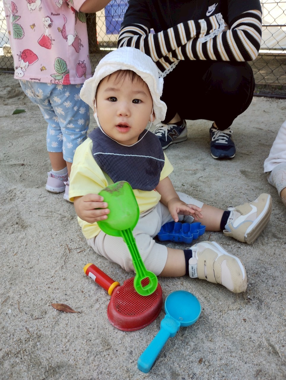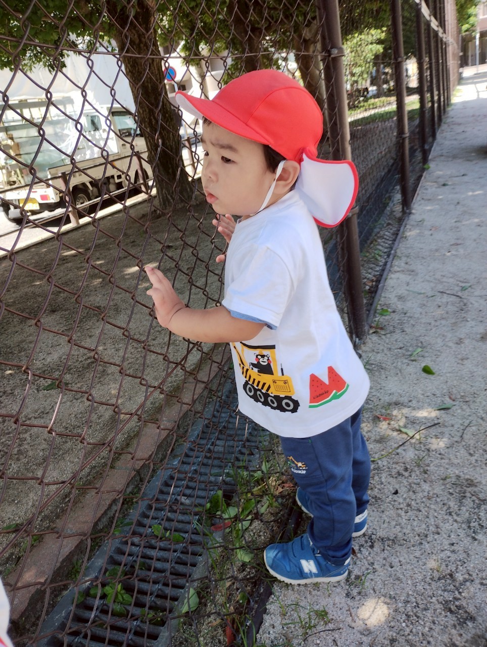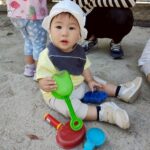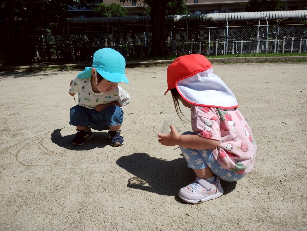 今日は、英語教室の前に公園へ行きました。木陰で砂遊びをしたり、公園のそばのショベルカーを覗いたり、ダンゴムシを探したりして楽しみました♪