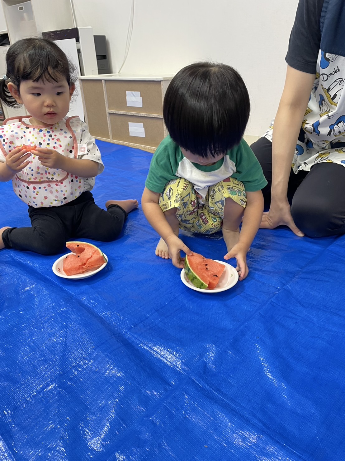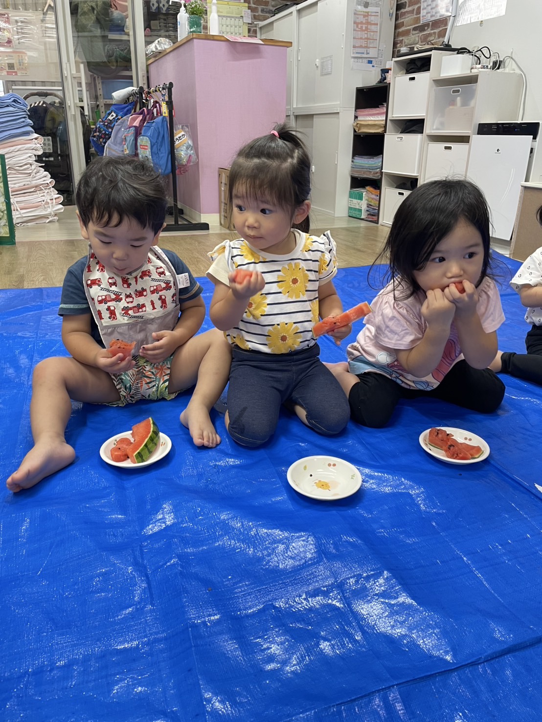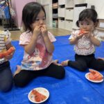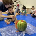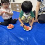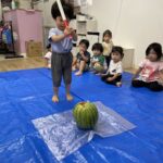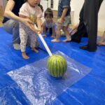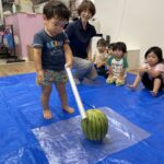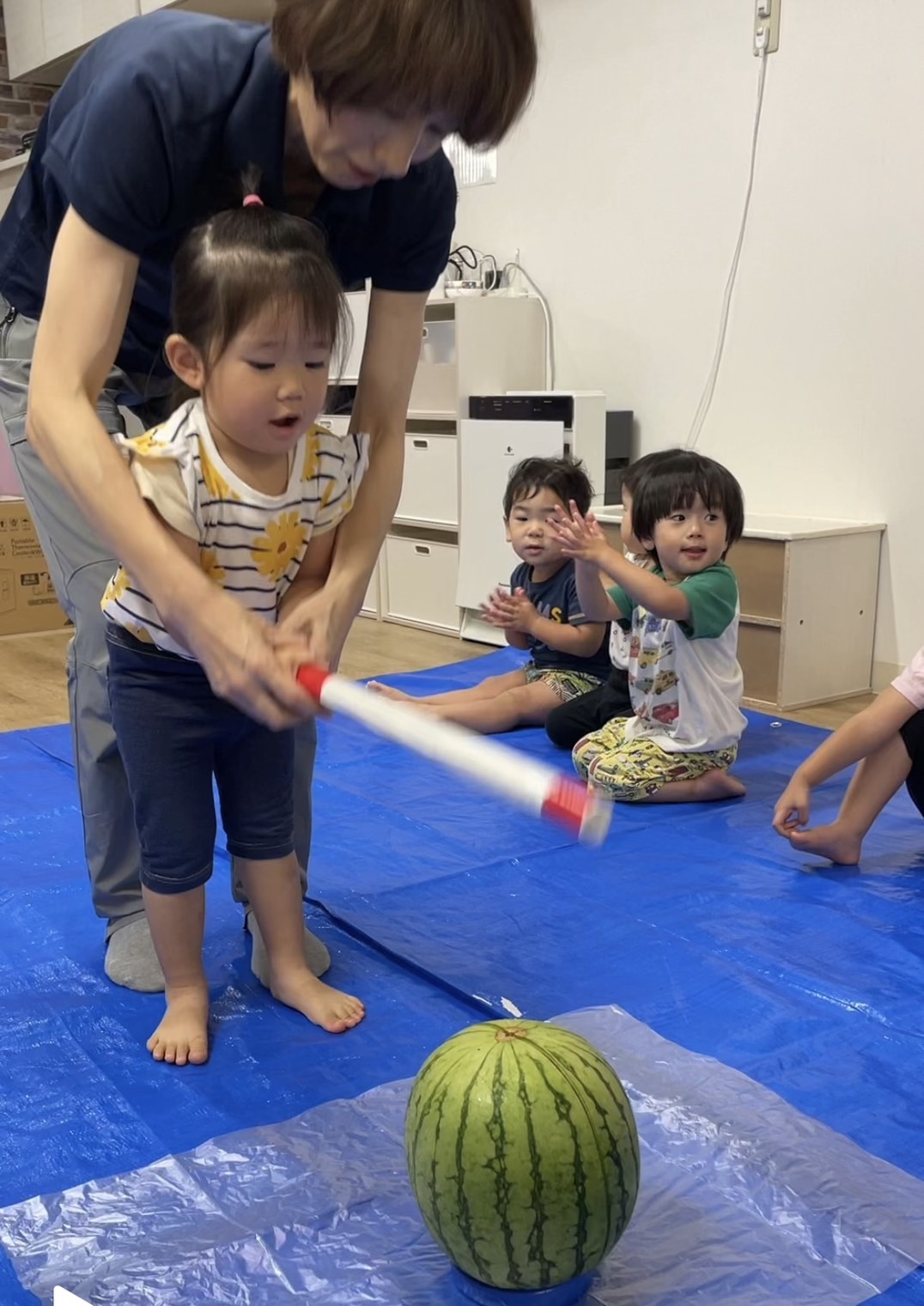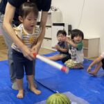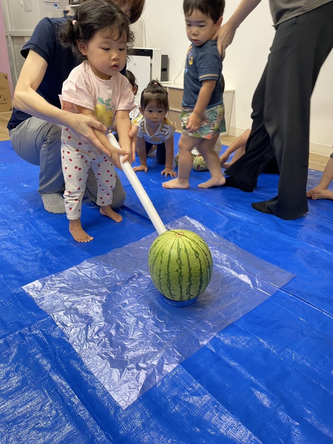 今日の15時のおやつはすいかだったのでお昼寝の後みんなですいか割りをしました🍉