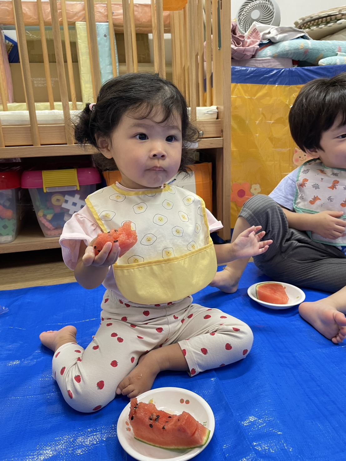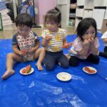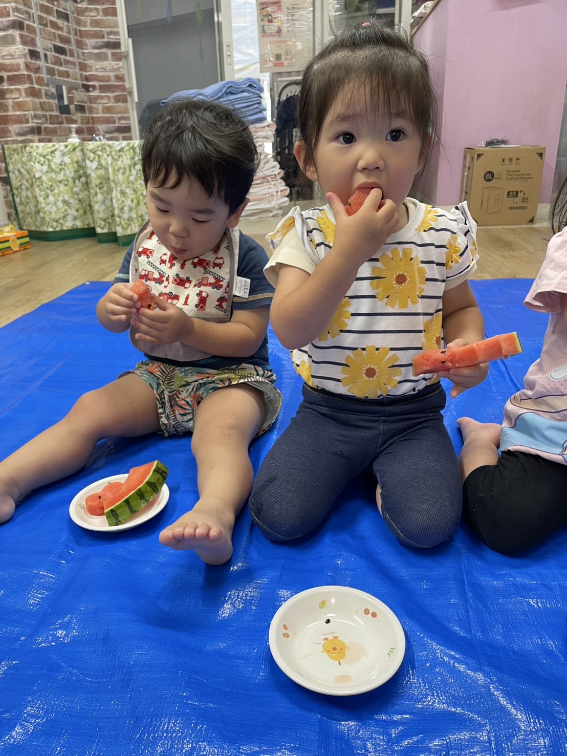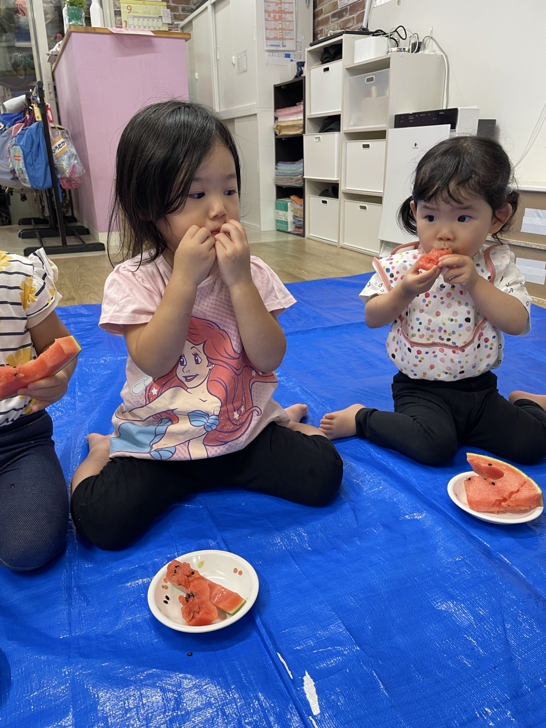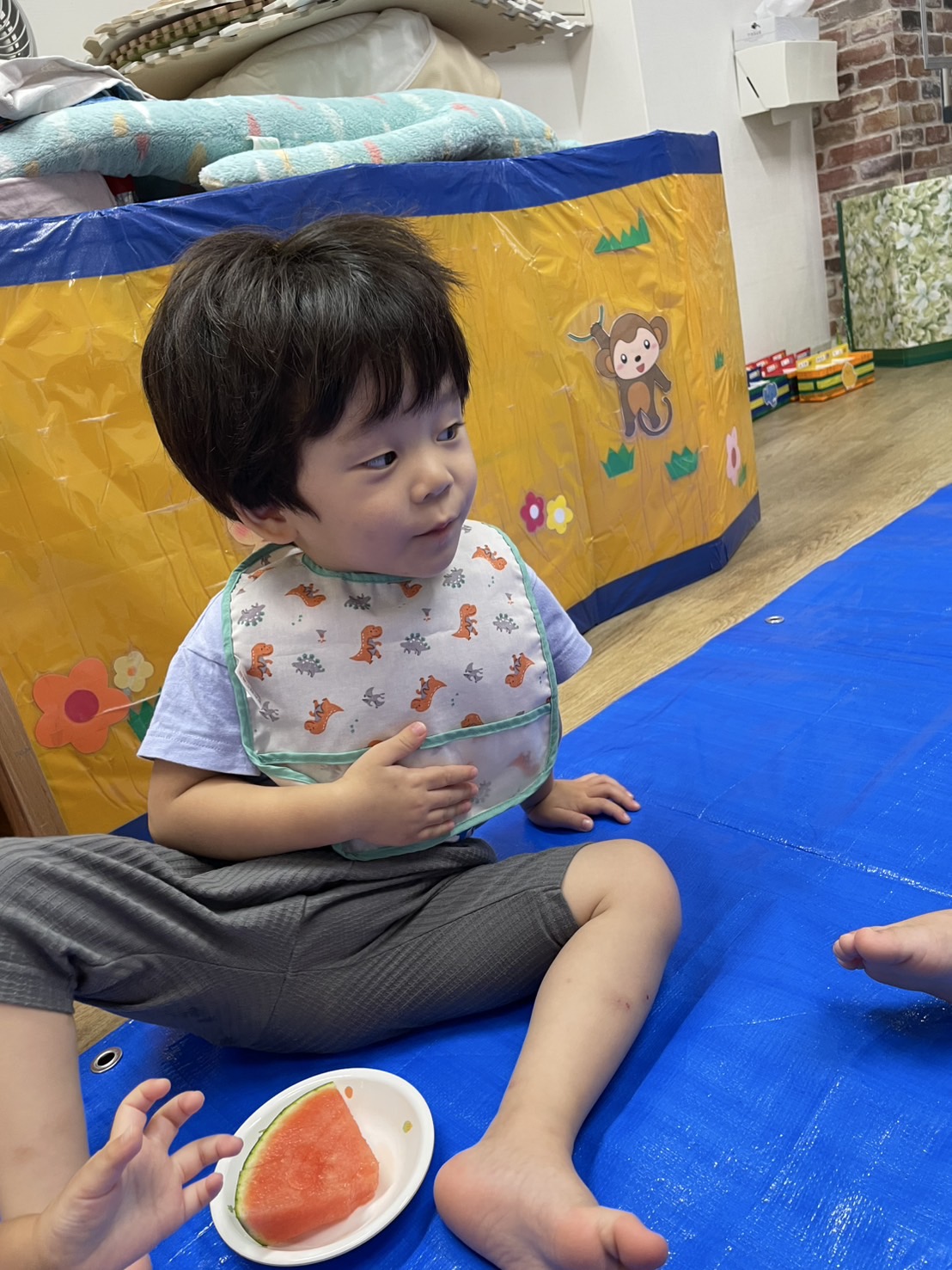 今日の15時のおやつはすいかだったのでお昼寝の後みんなですいか割りをしました🍉