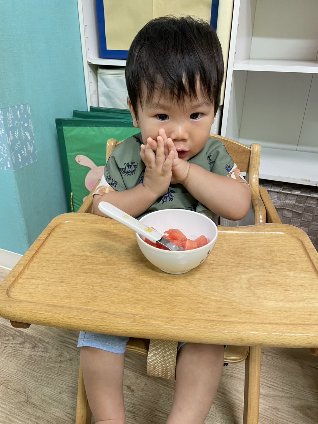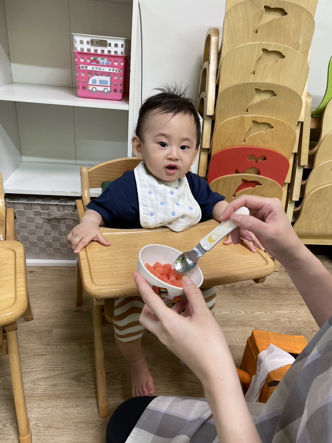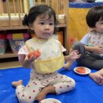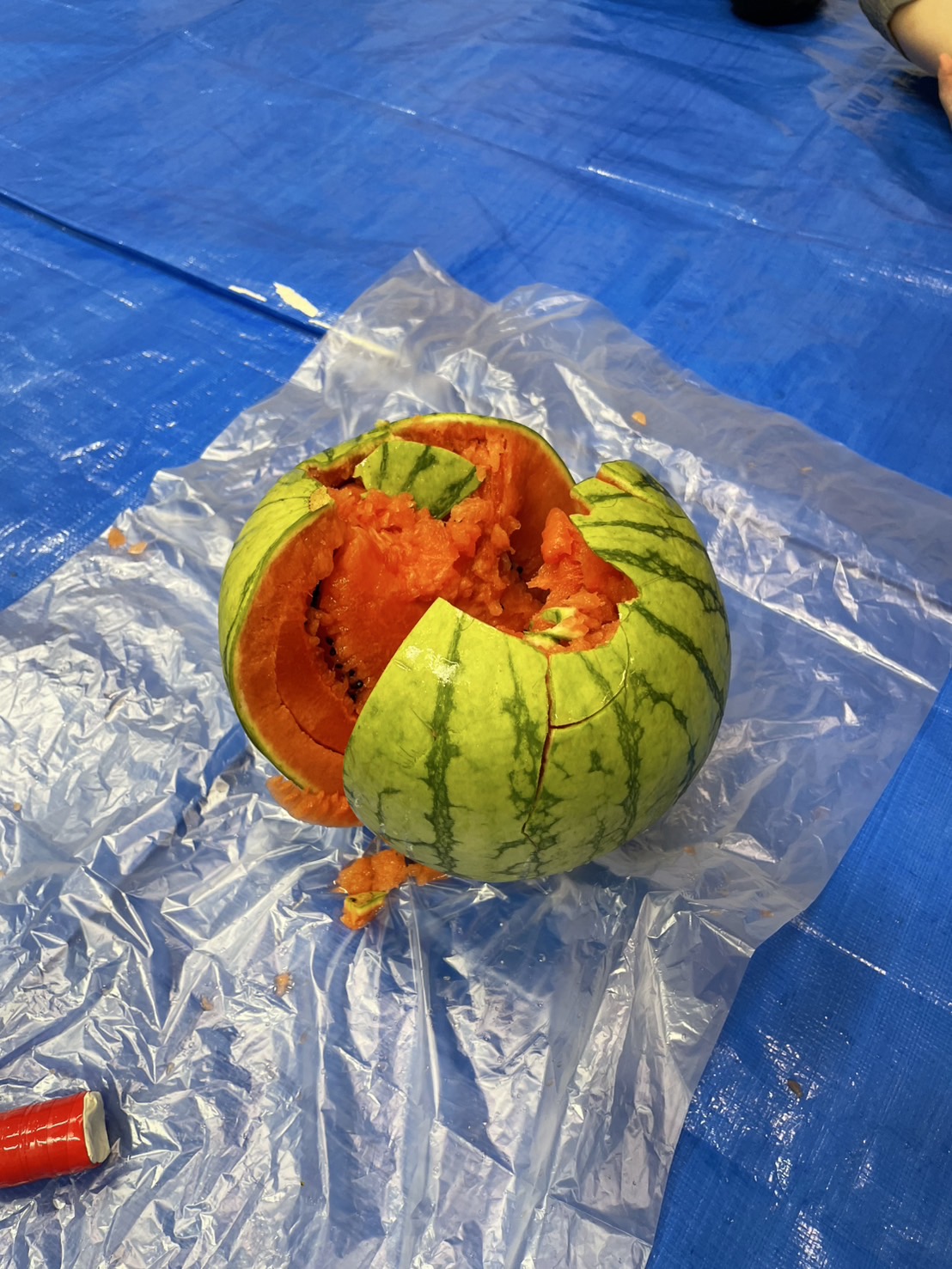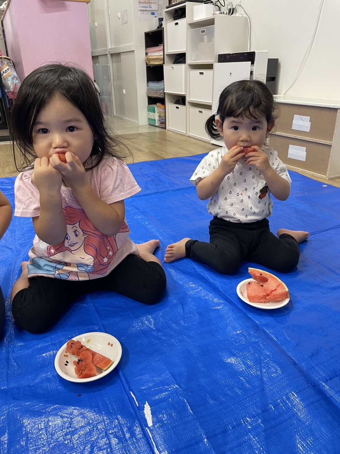 今日の15時のおやつはすいかだったのでお昼寝の後みんなですいか割りをしました🍉