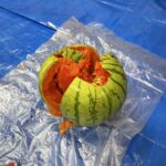 割れたスイカを給食室の先生に切ってもらい、いただきます!