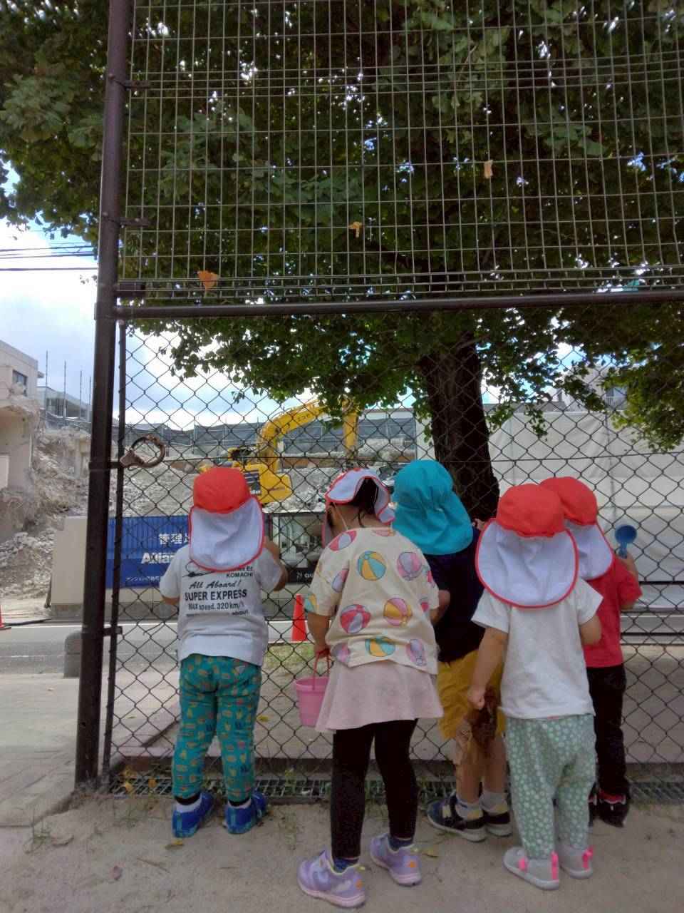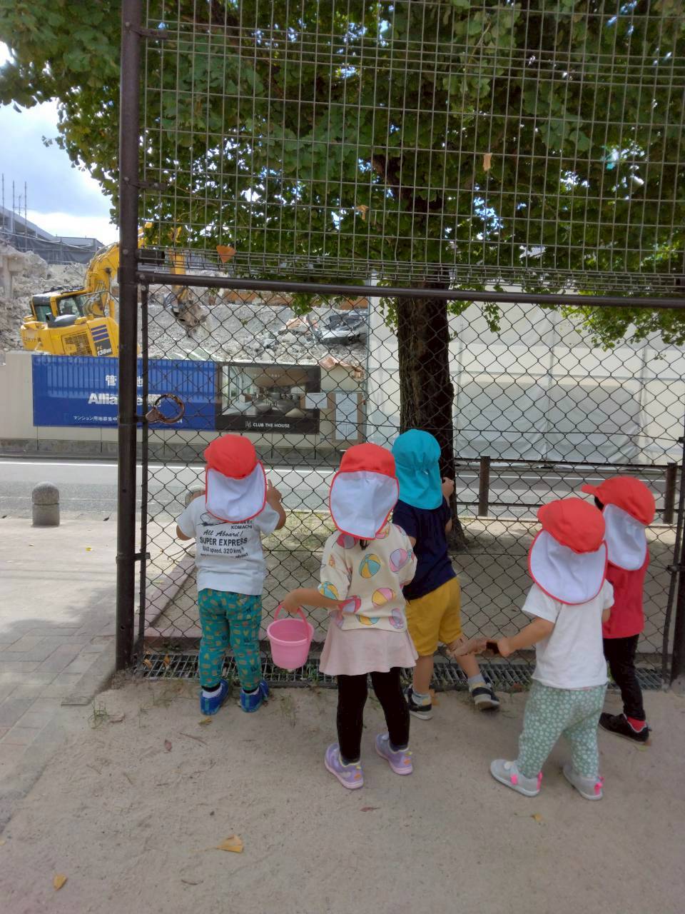 近くの工事現場を見ていると工事車両が動き出し、みんな集まってきて応援していて可愛かったですよ🚩