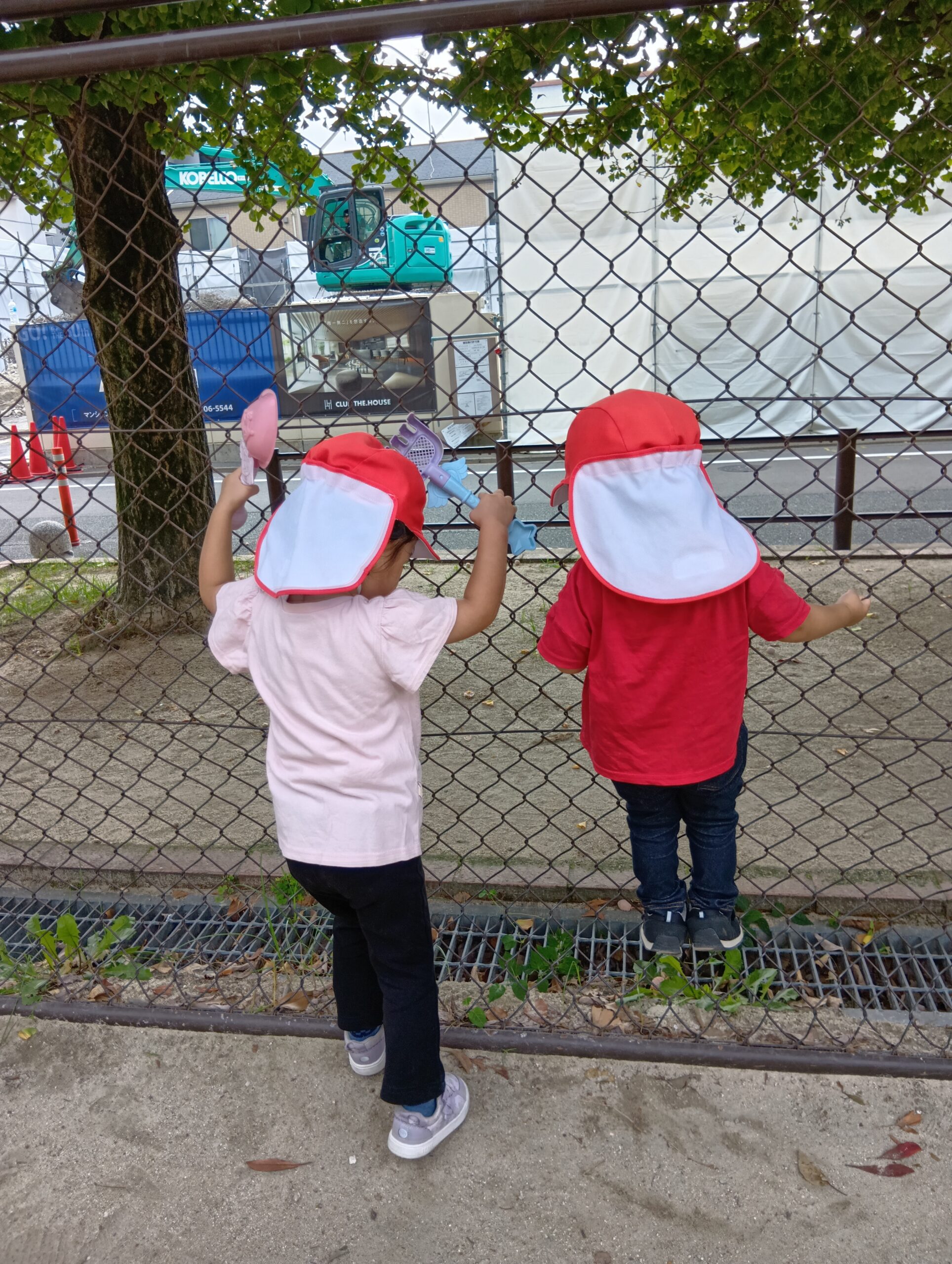 工事車両が動いており、「動いてる!」と興味津々な子どもたちでした⭐