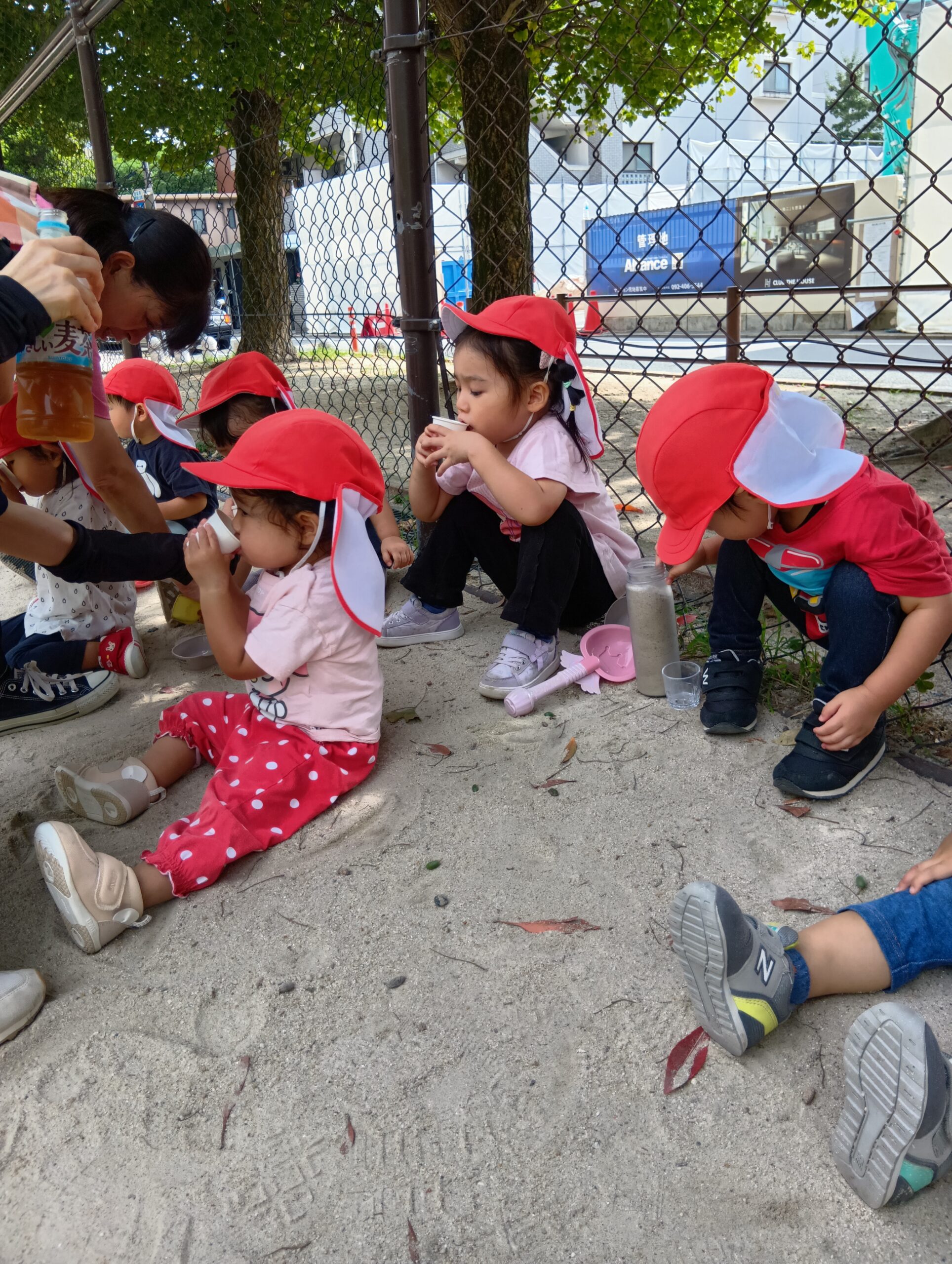 たくさん動いて汗をかいたので水分補給をして保育園に帰りました😋
