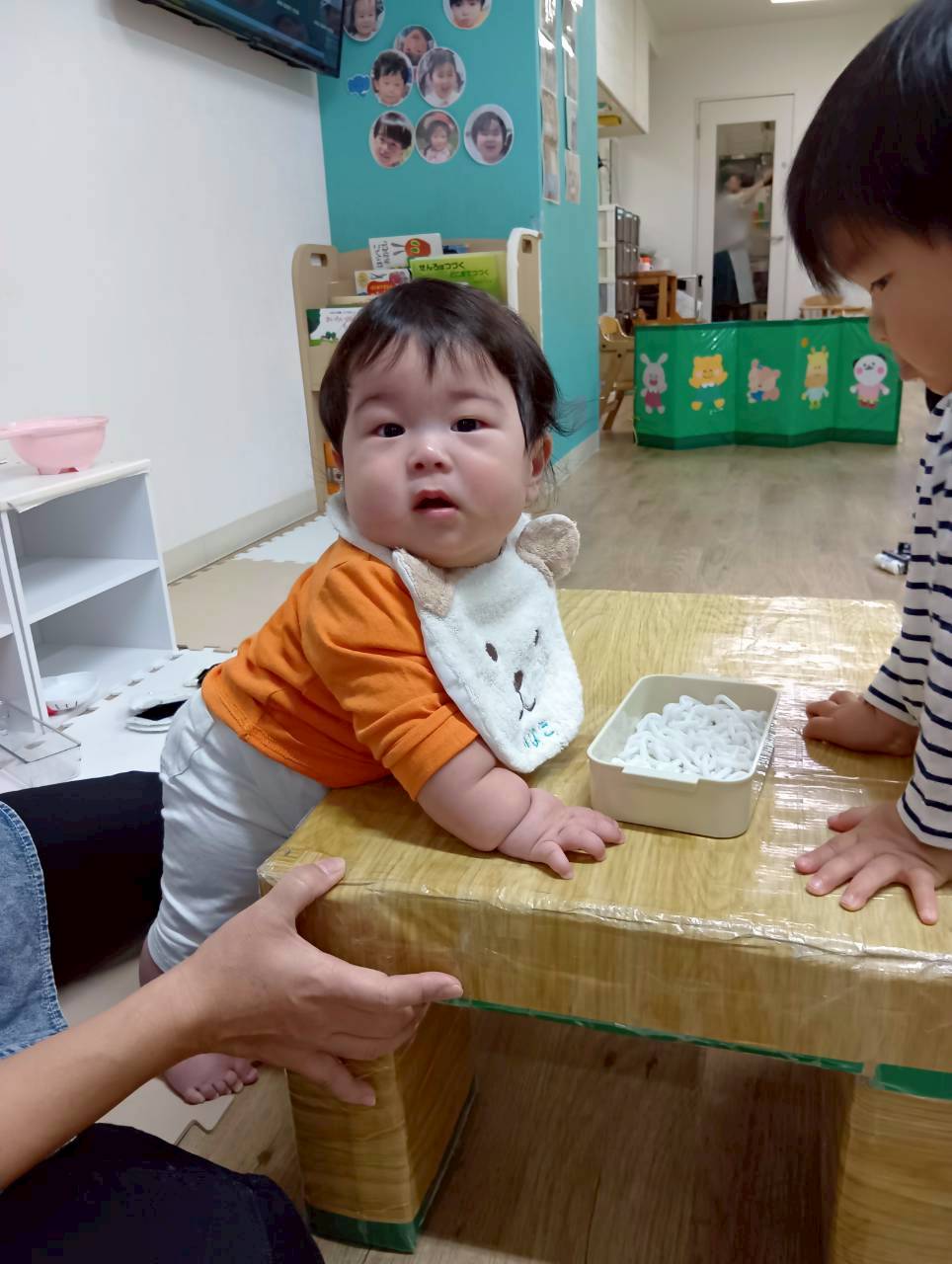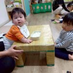 0歳児さんのお友達はお部屋の中で一生懸命体を動かしていましたよ✨