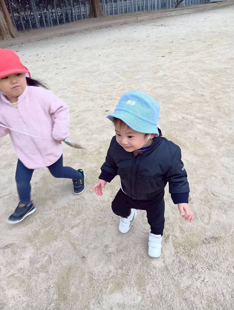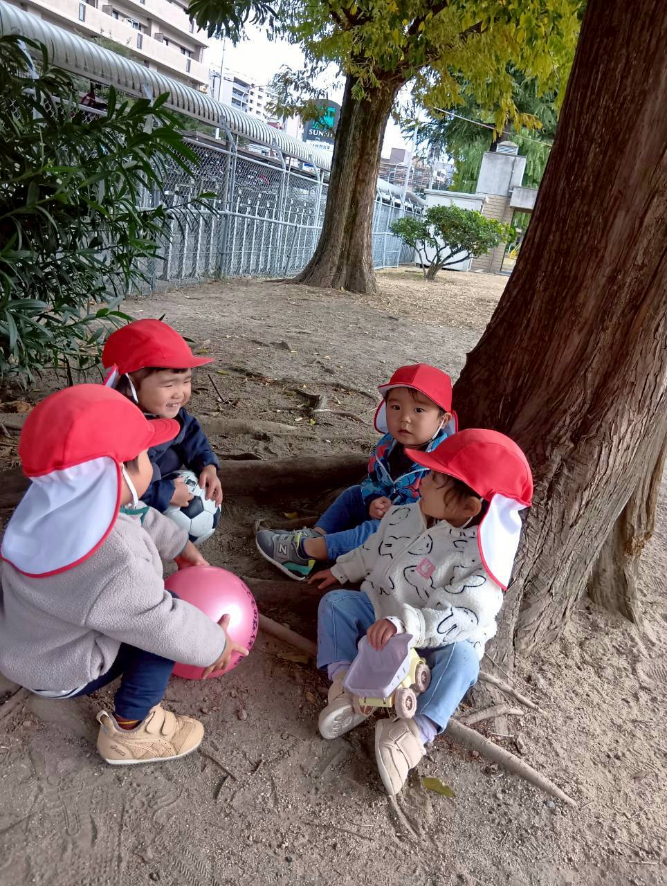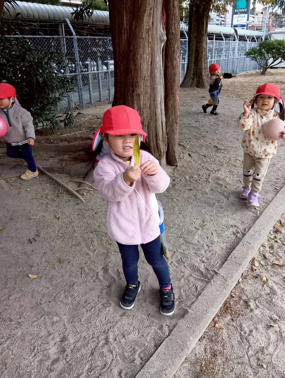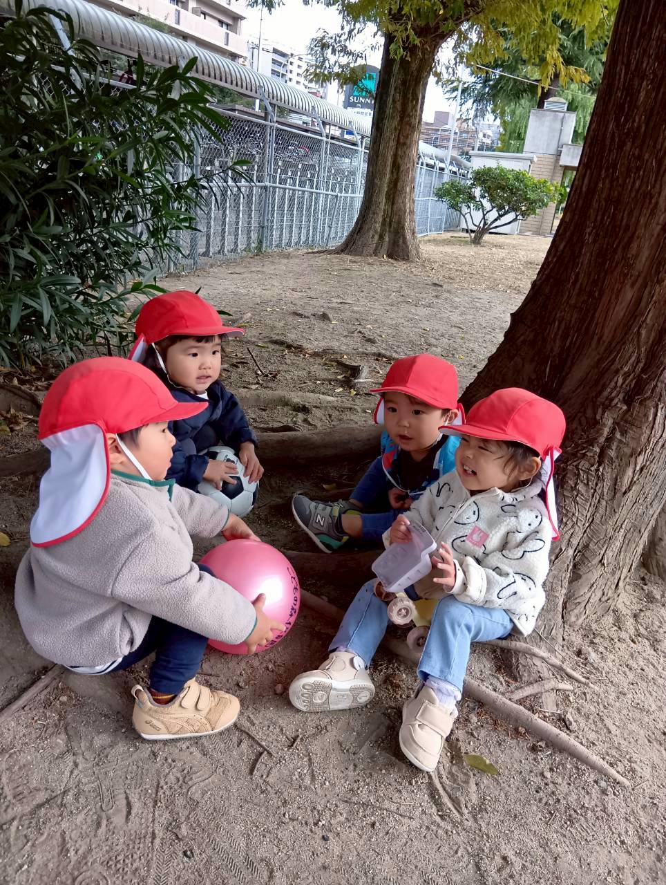 公園内を散策したり、お友達と集まって座り、顔を見合わせて笑いあったりとっても楽しそうでしたよ♩