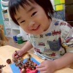 どんぐりだけにしたり、紙粘土を平たくしてから刺してみたりとそれぞれ個性が出て見ていてとっても面白かったですよ!