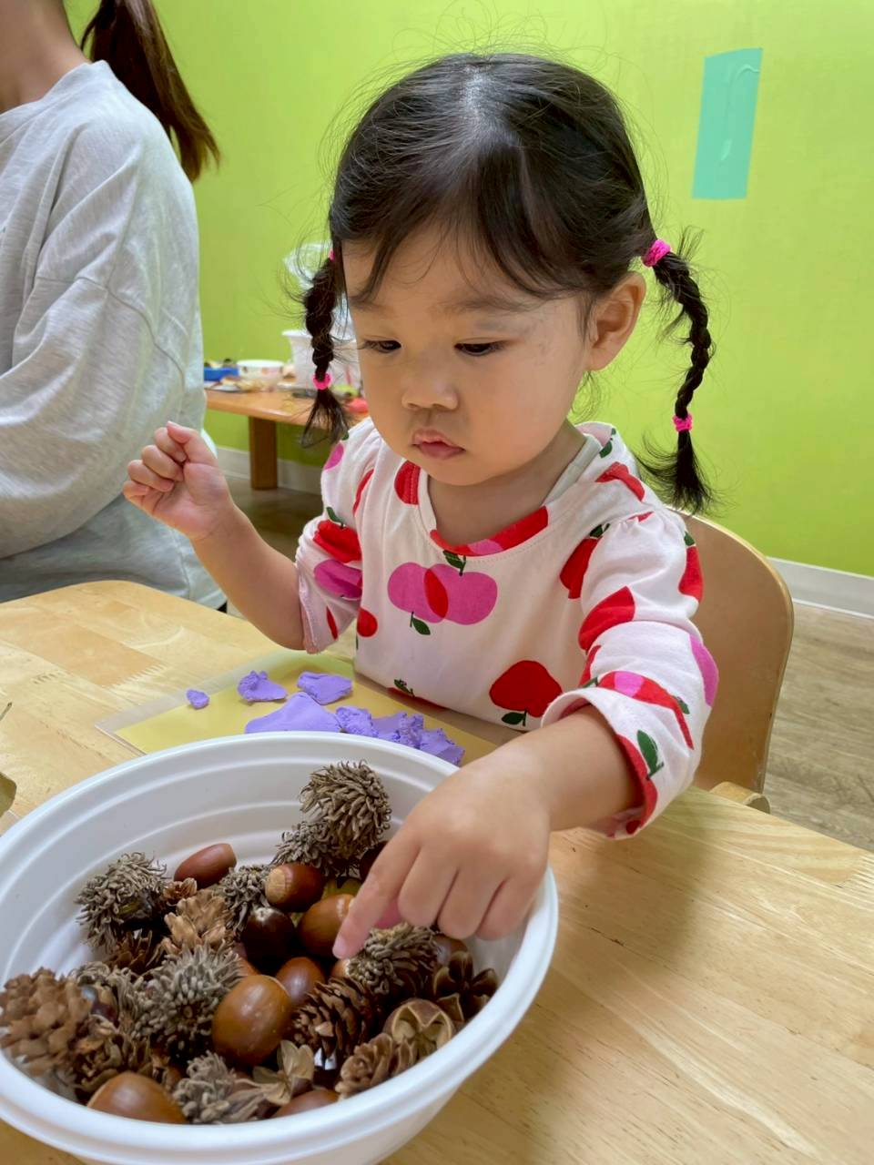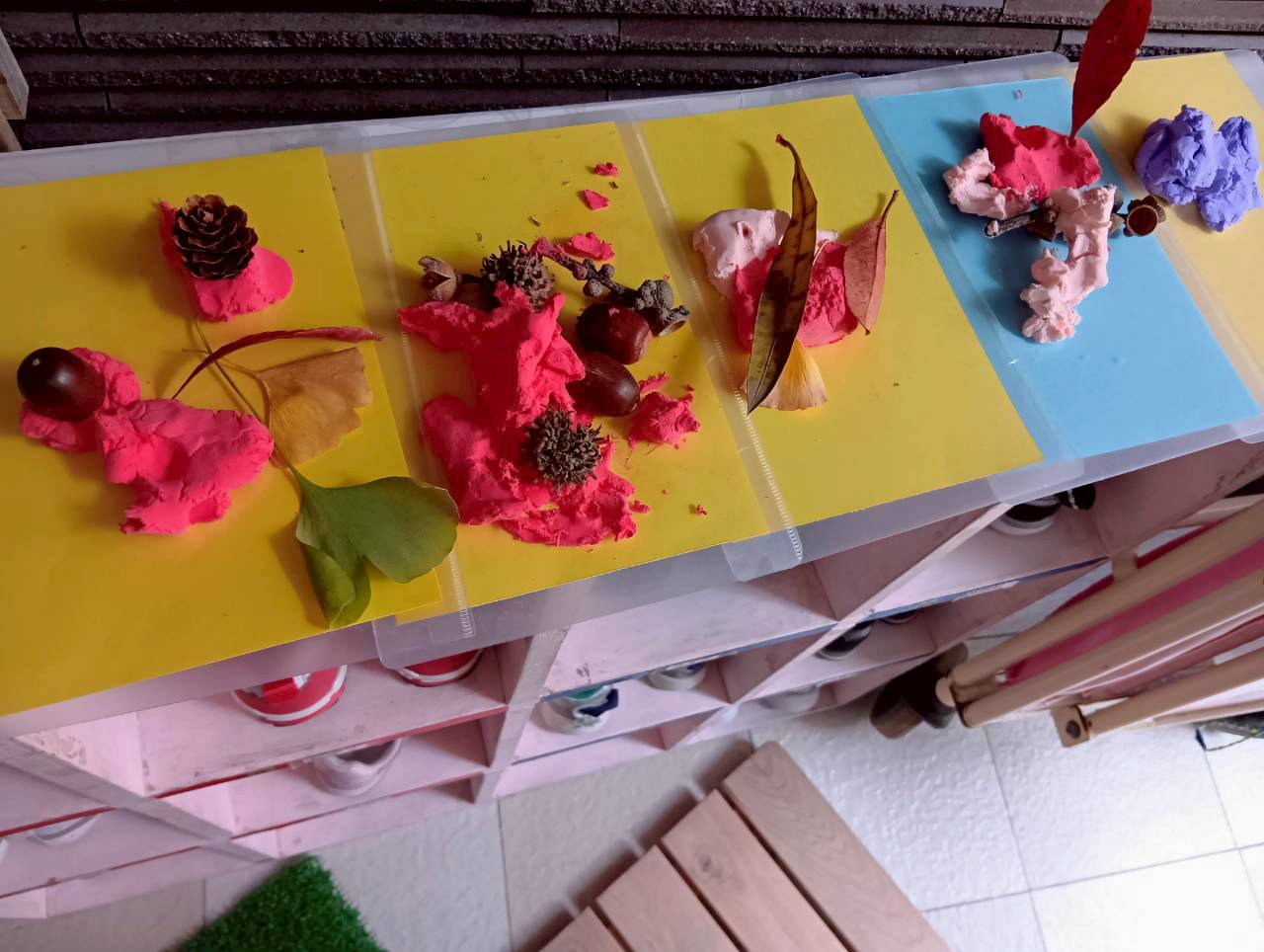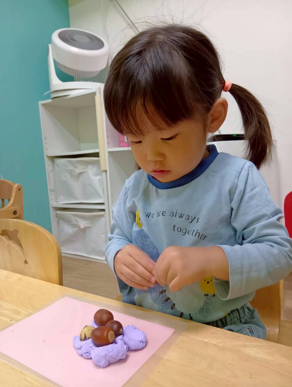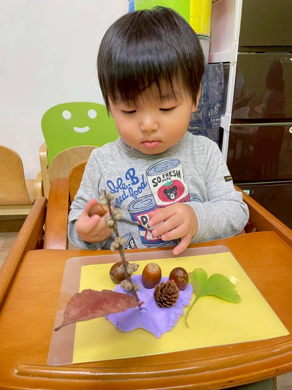 その後は紙粘土をこねてからどんぐりや落ち葉を刺していきました🍂
