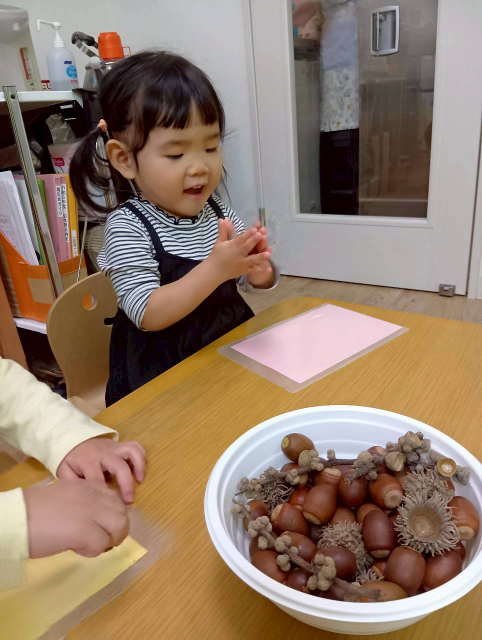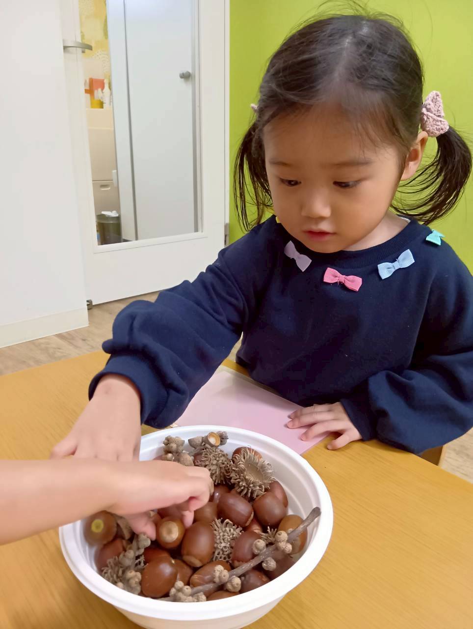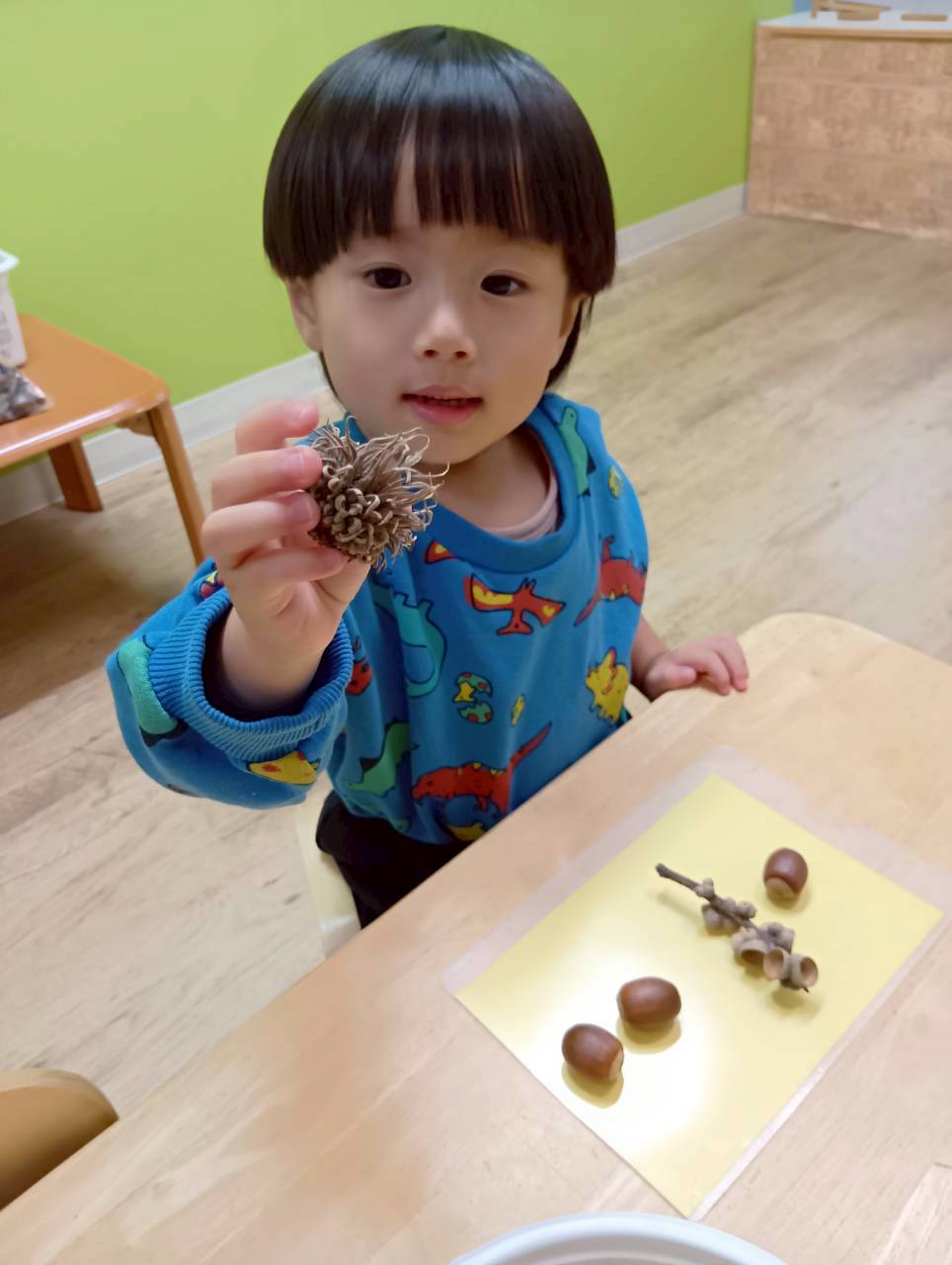 まずはたくさんのどんぐりを触ってみたり、観察したりしました!