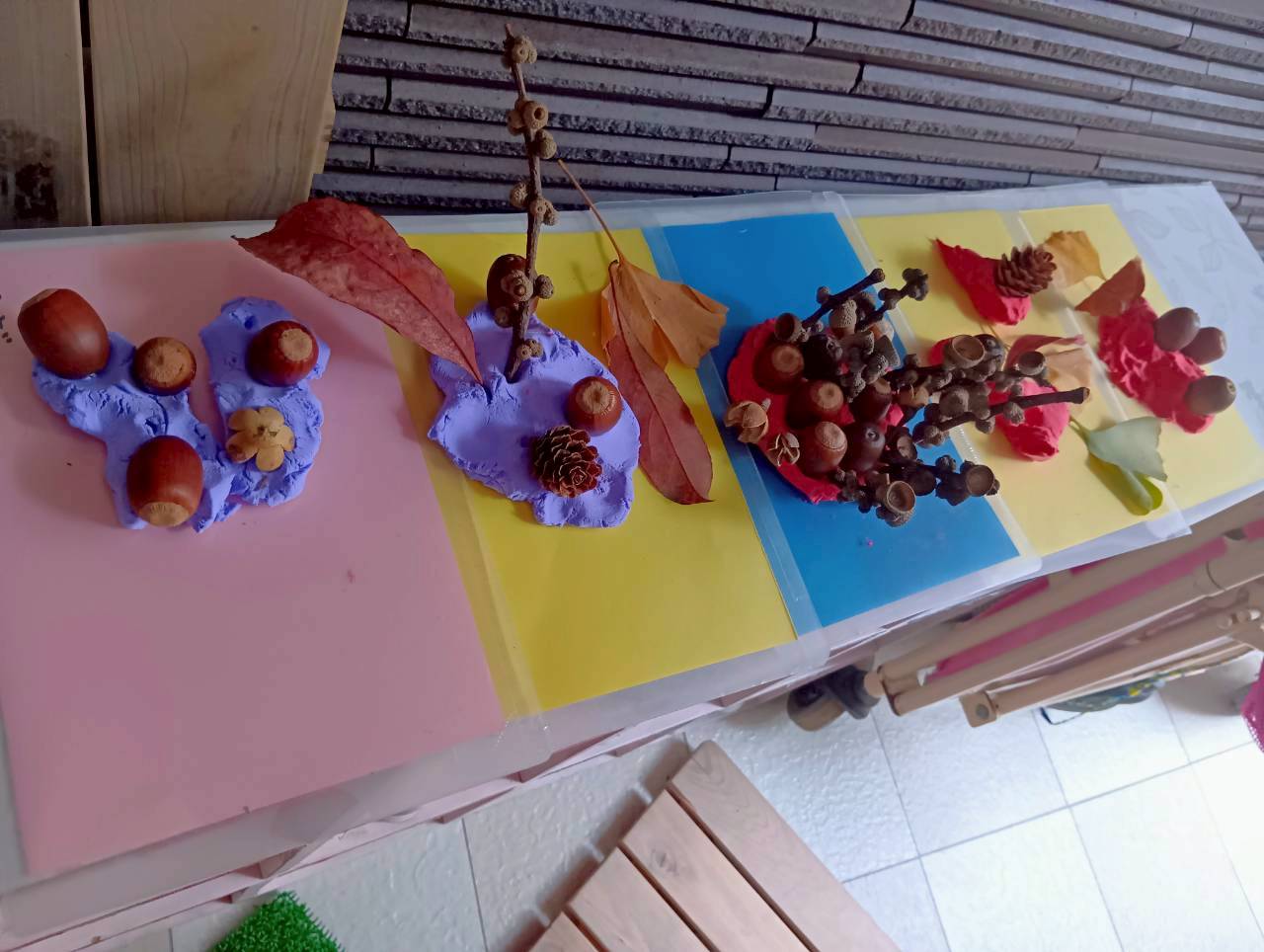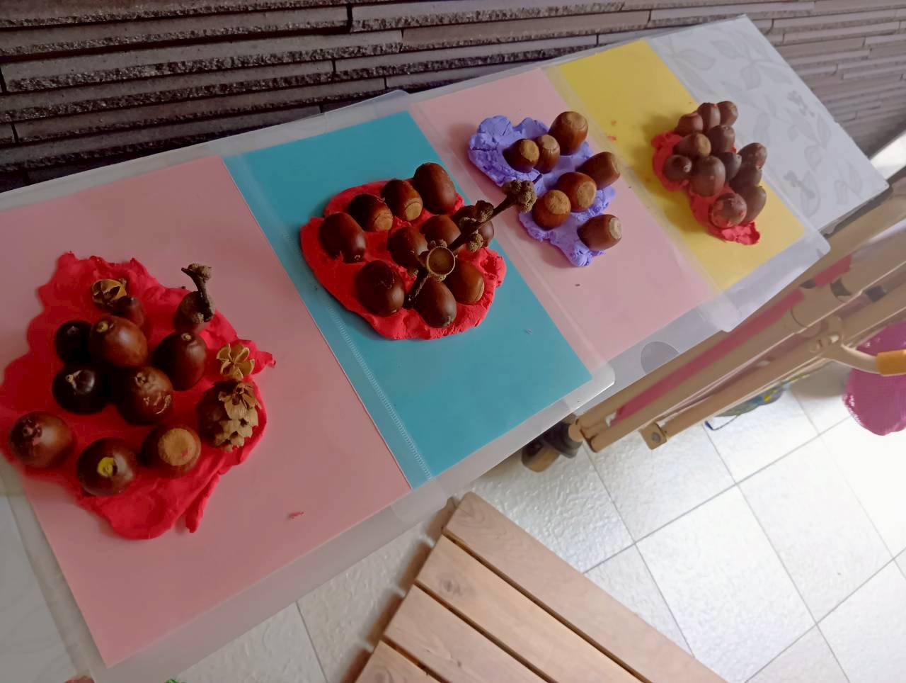 今日は今週拾っていた落ち葉やどんぐりを使って製作をしました🍂