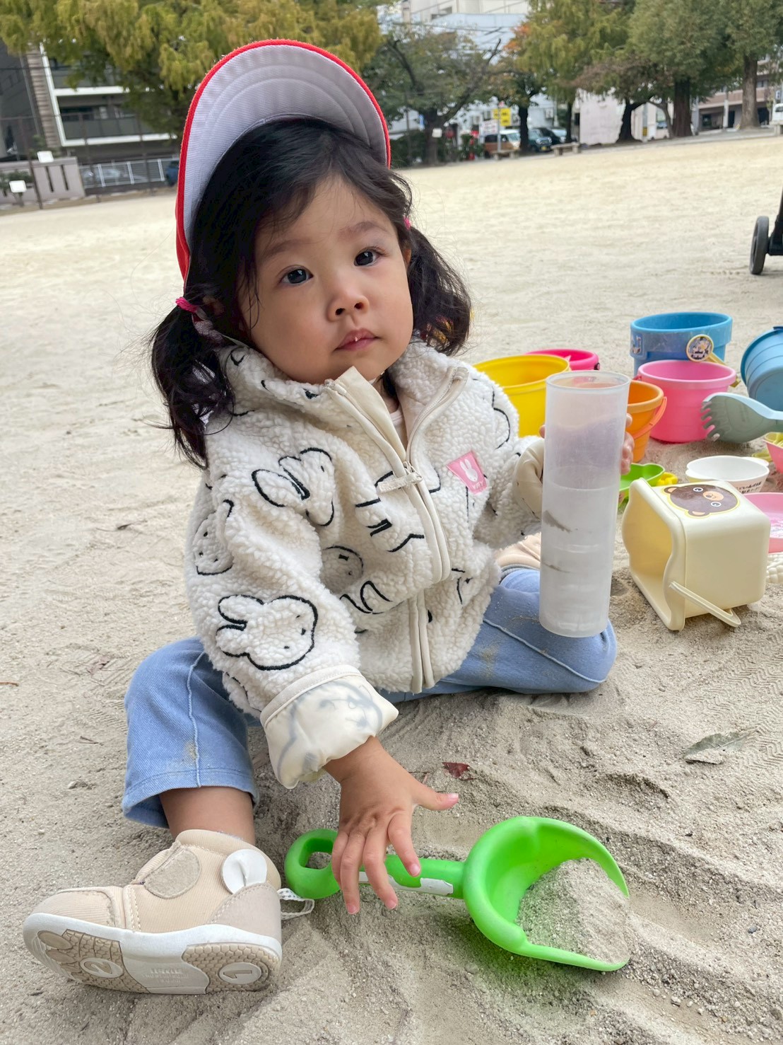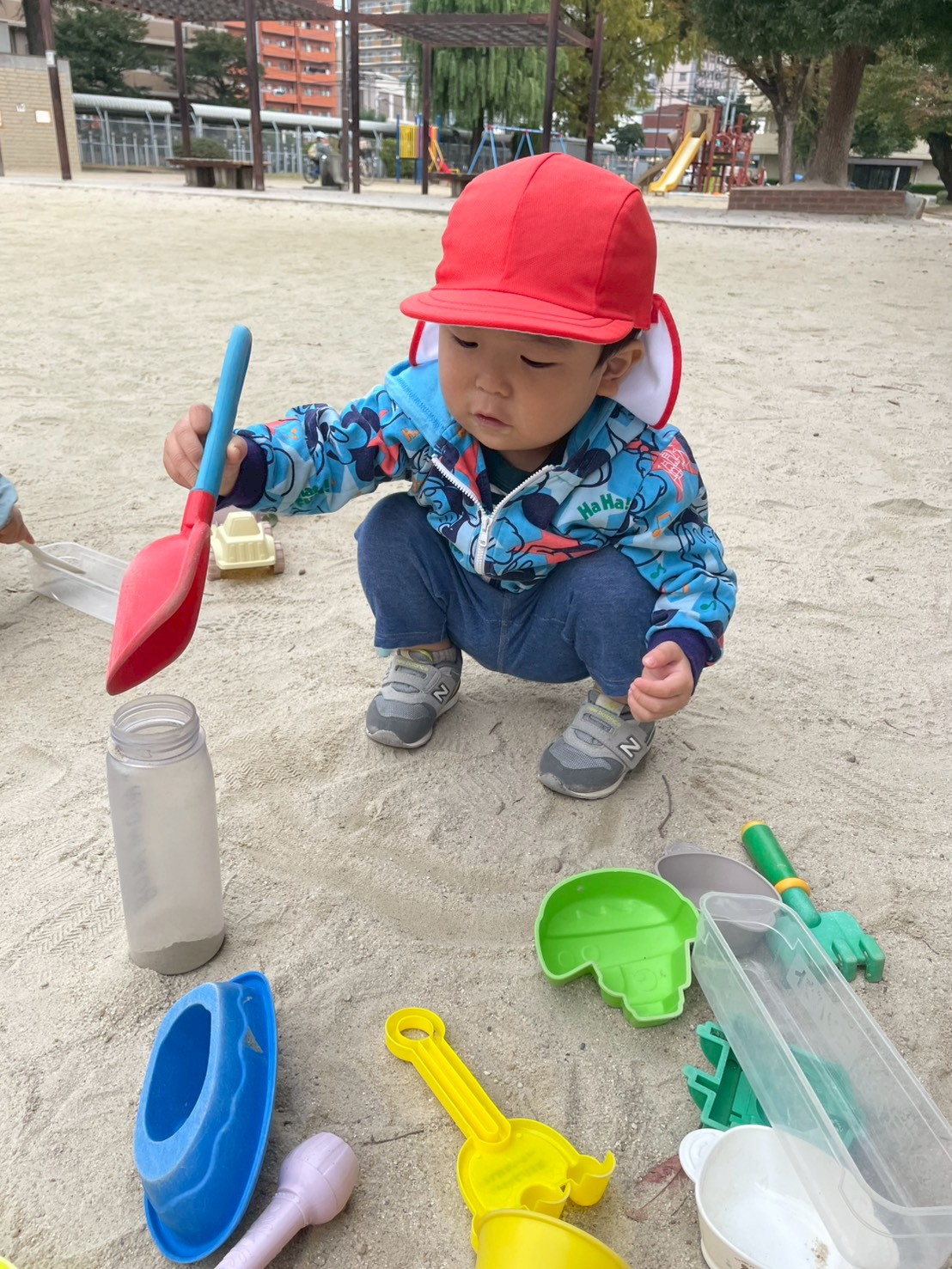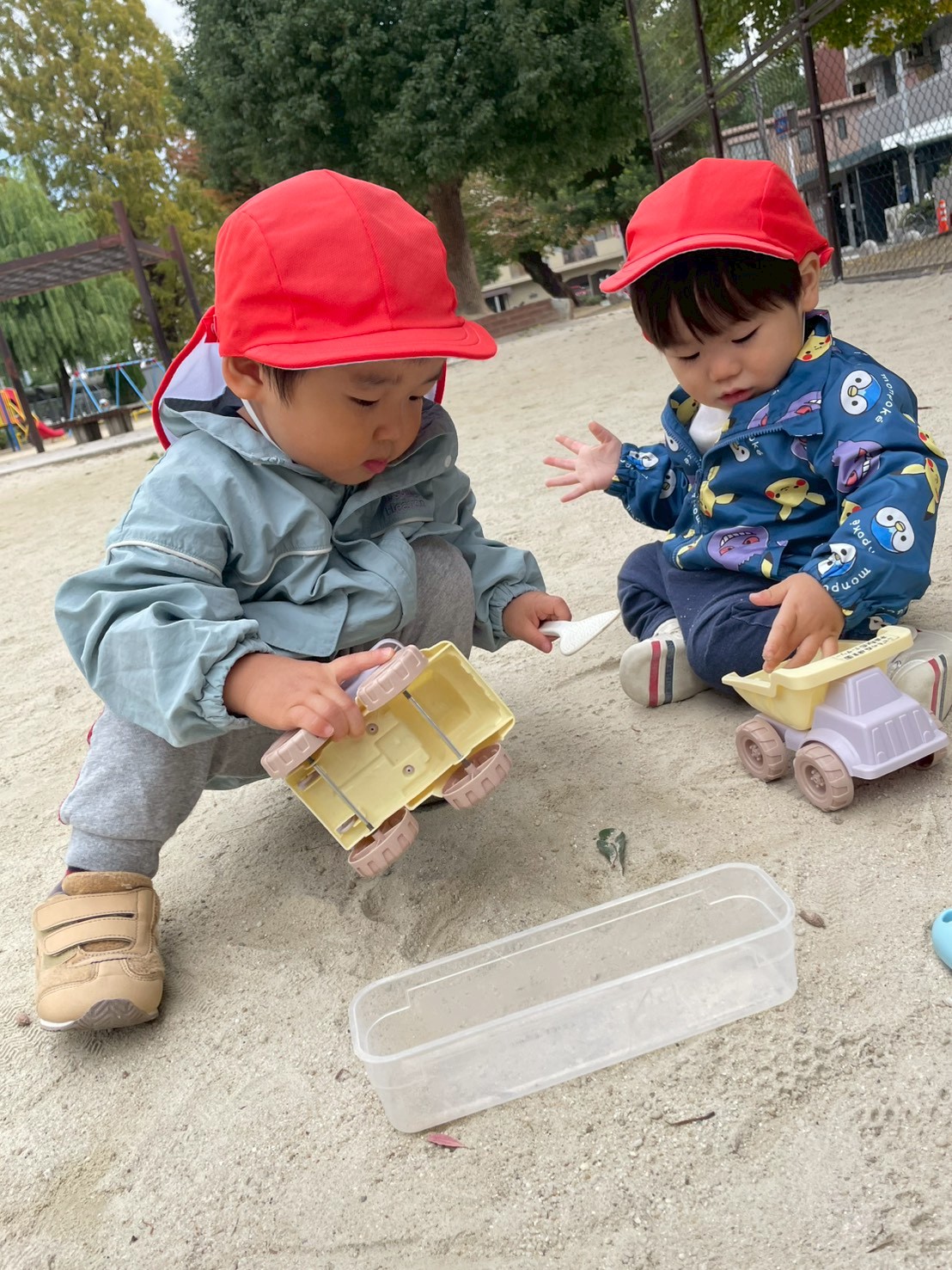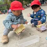 砂遊びや、公園内を散策したりと楽しんでいた子ども達です😊