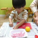 ちぎるのが少し難しい子もいましたが、保育士と一緒にすると上手にちぎれていましたよ♪