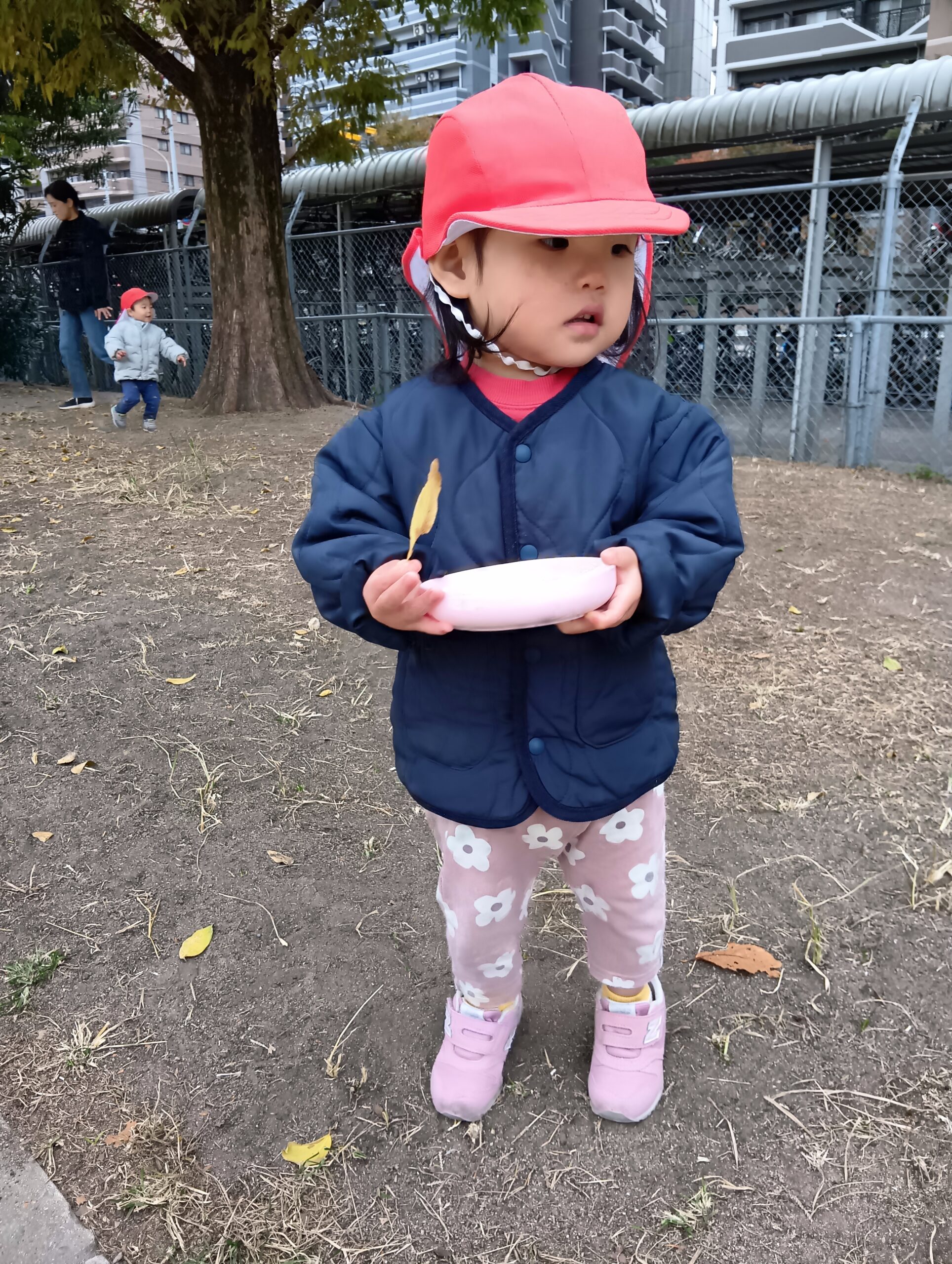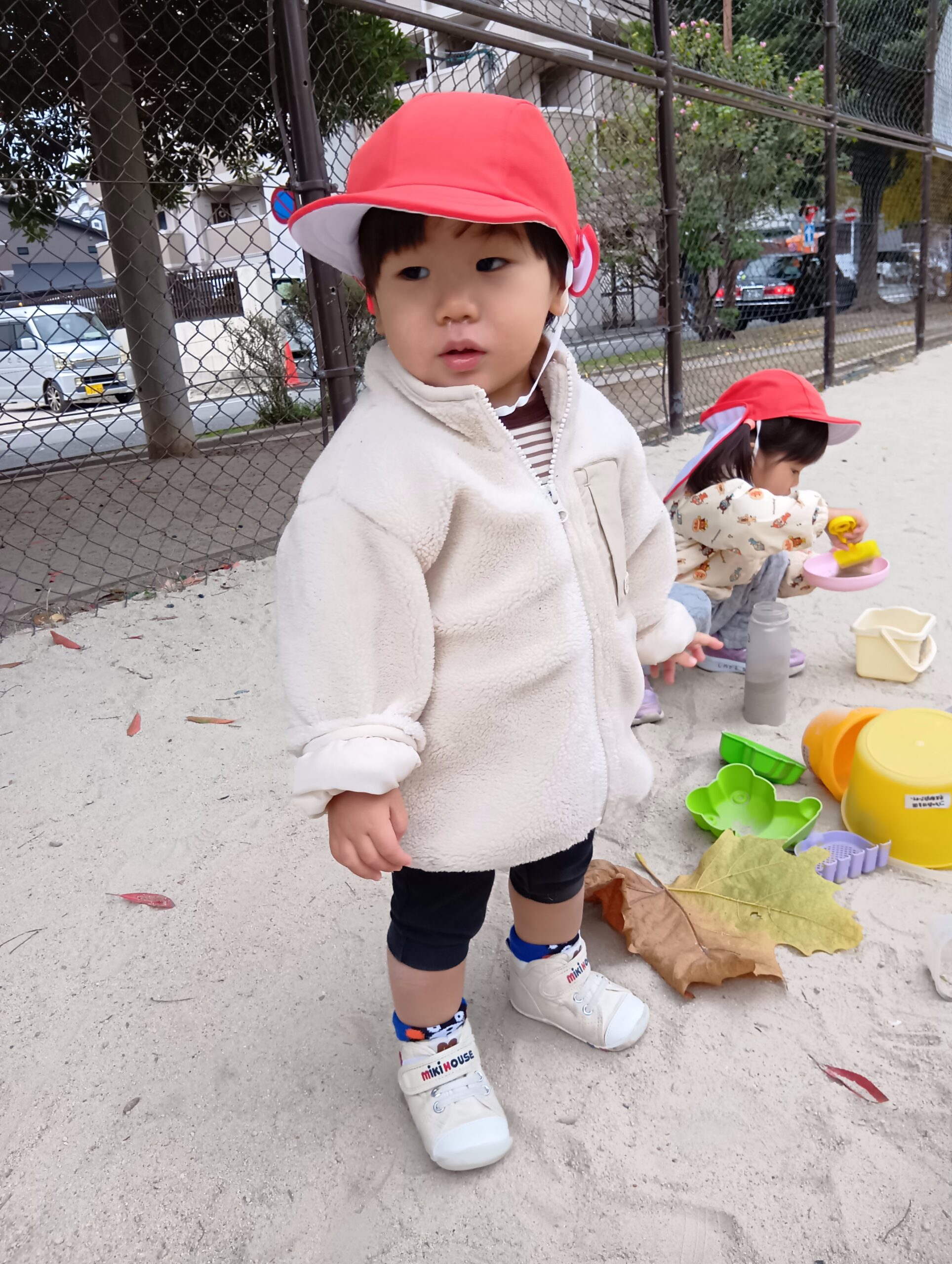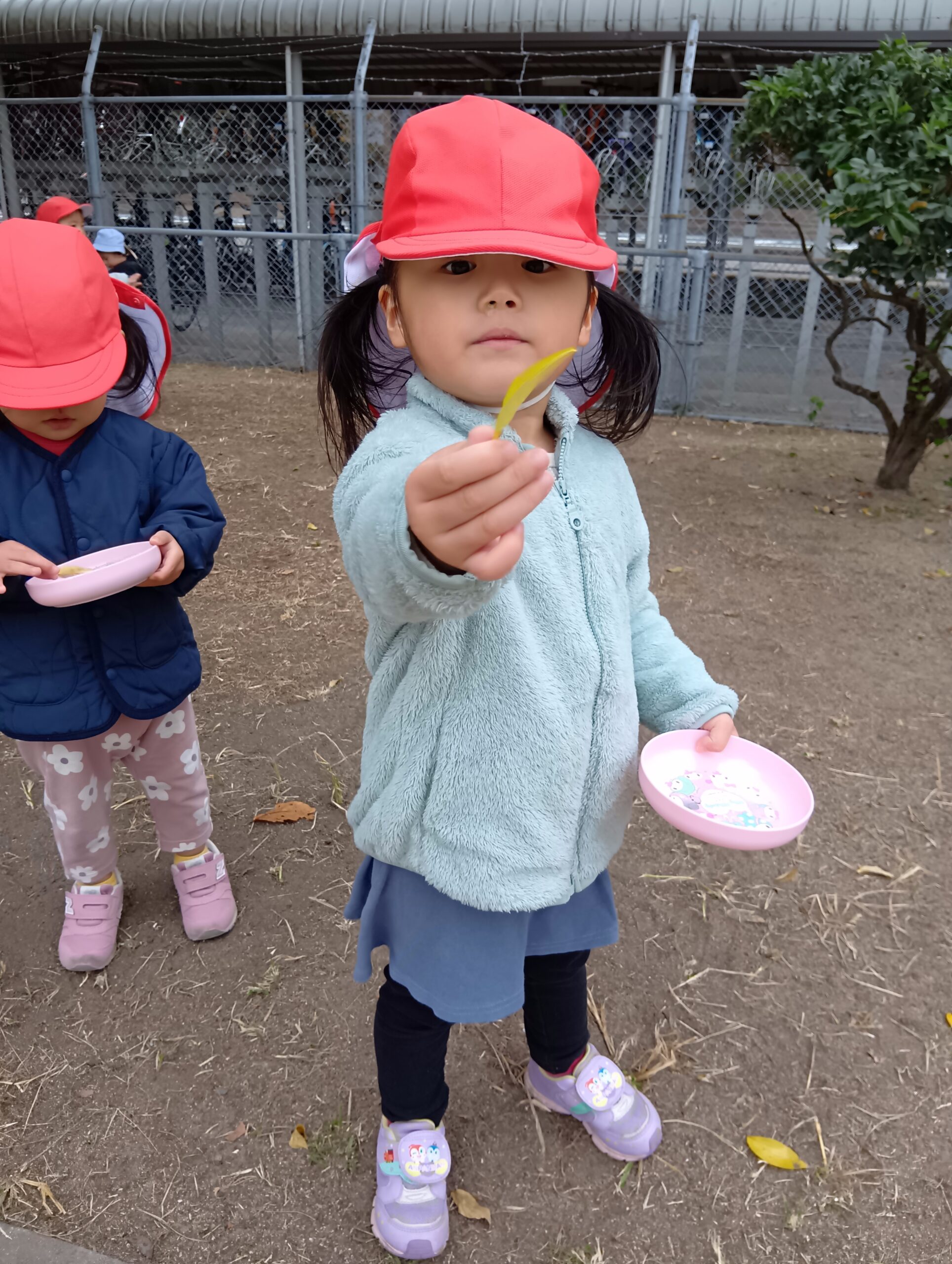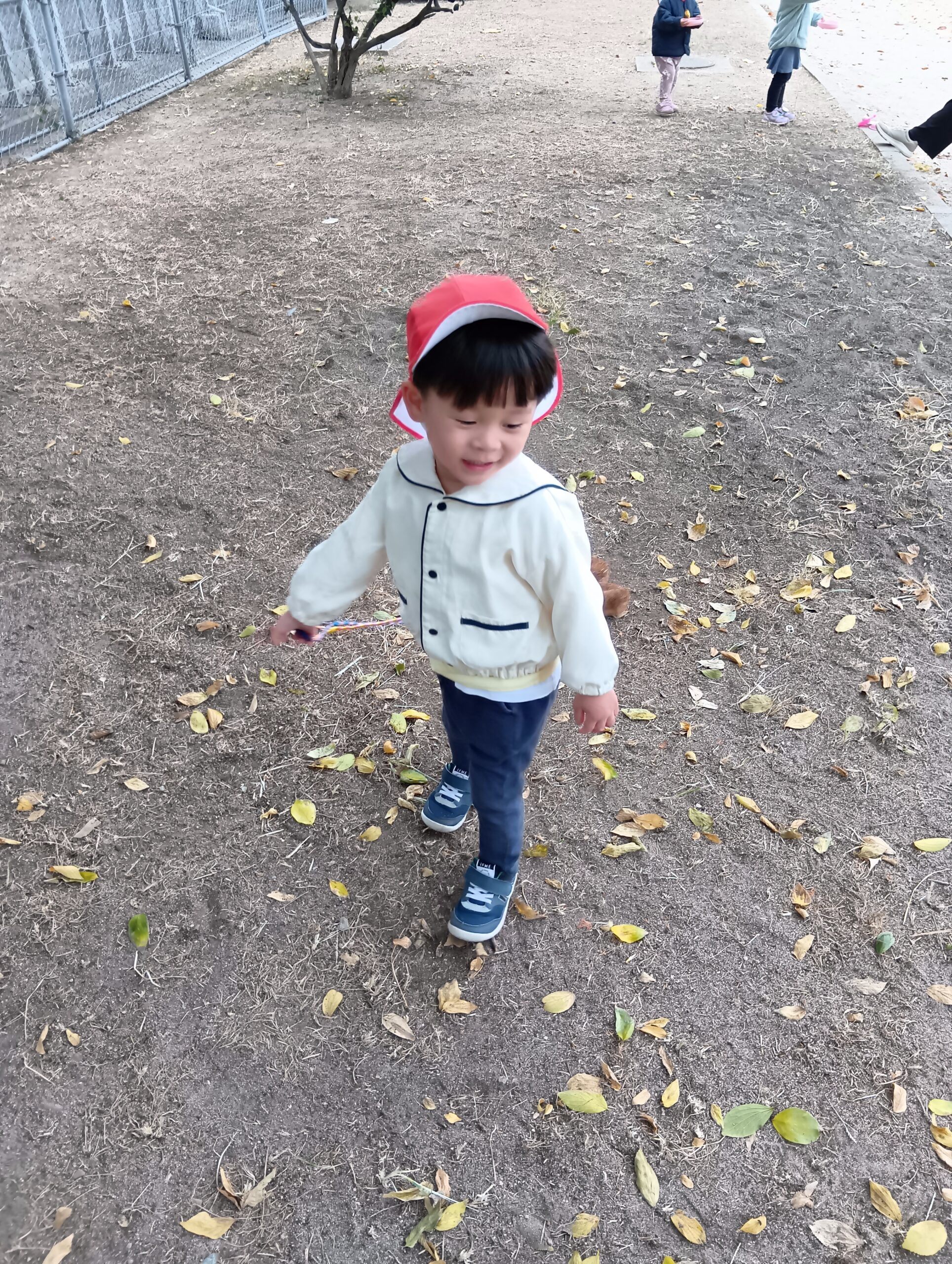 黄色い落ち葉を見つけると「見て!きいろ!」と保育士に見せに来ていましたよ♪