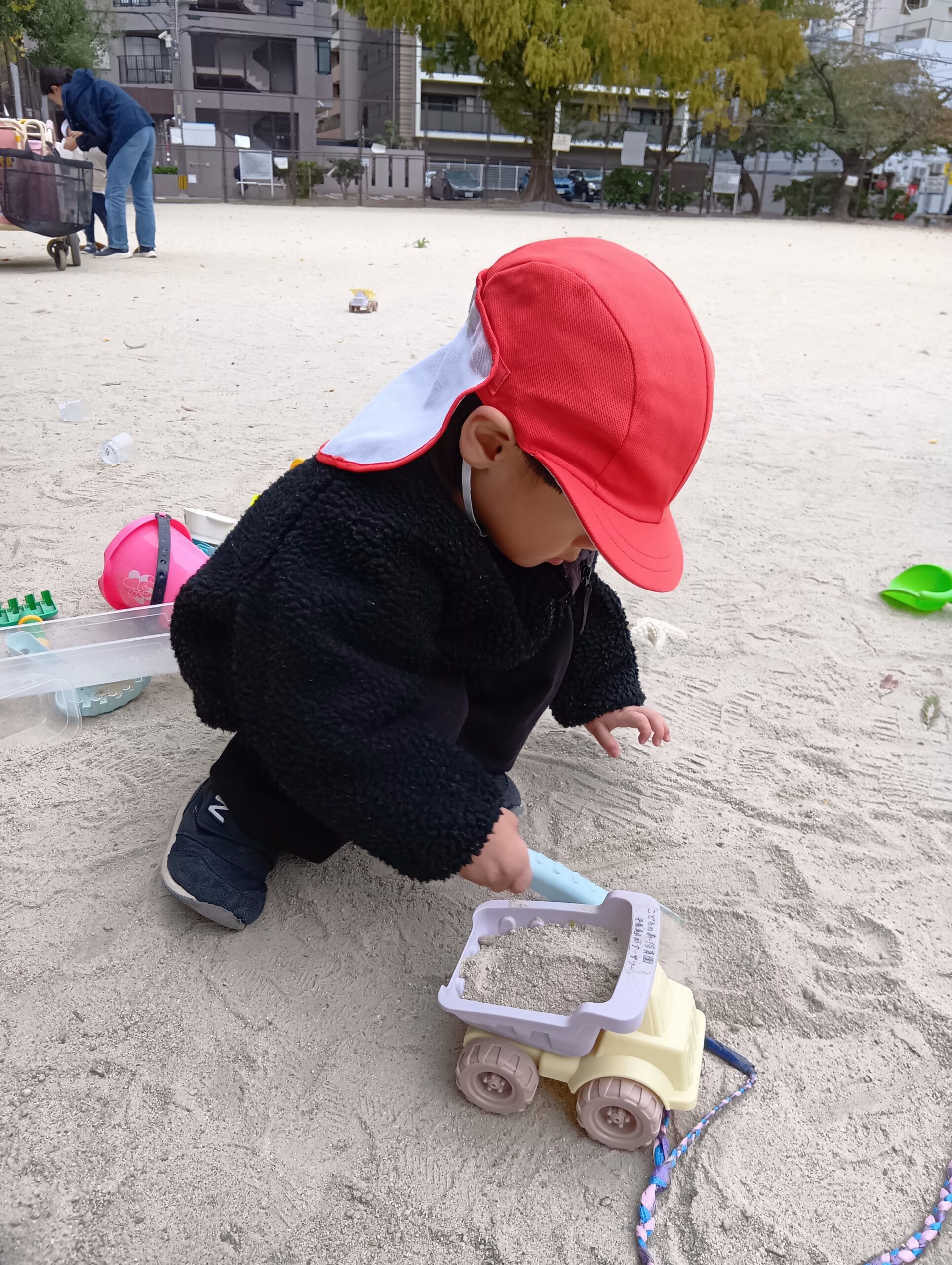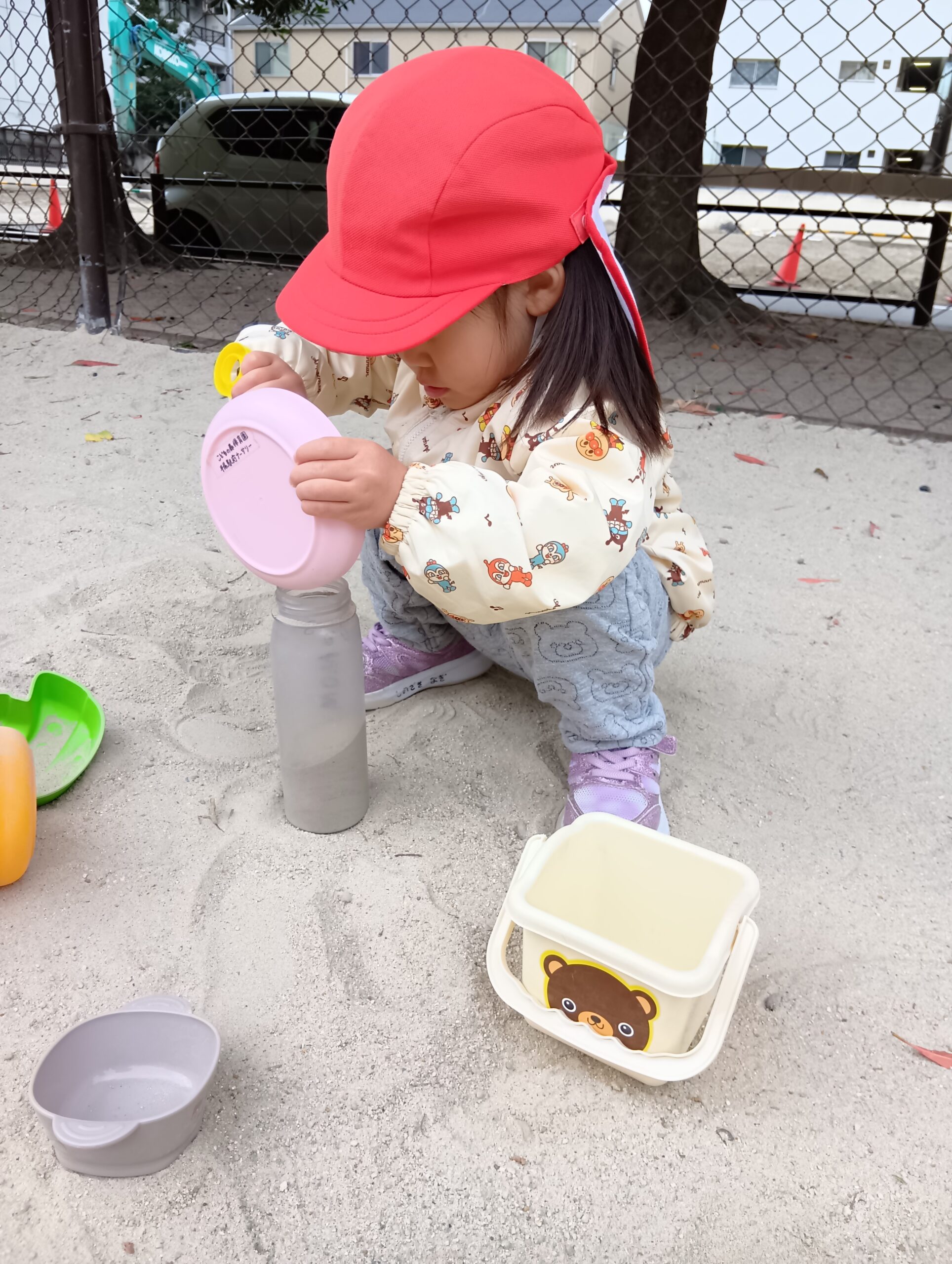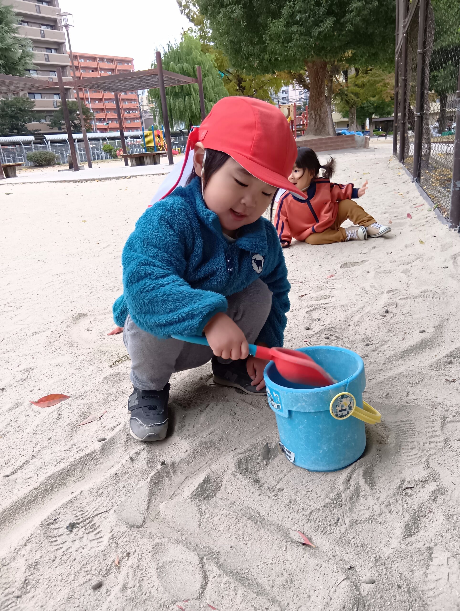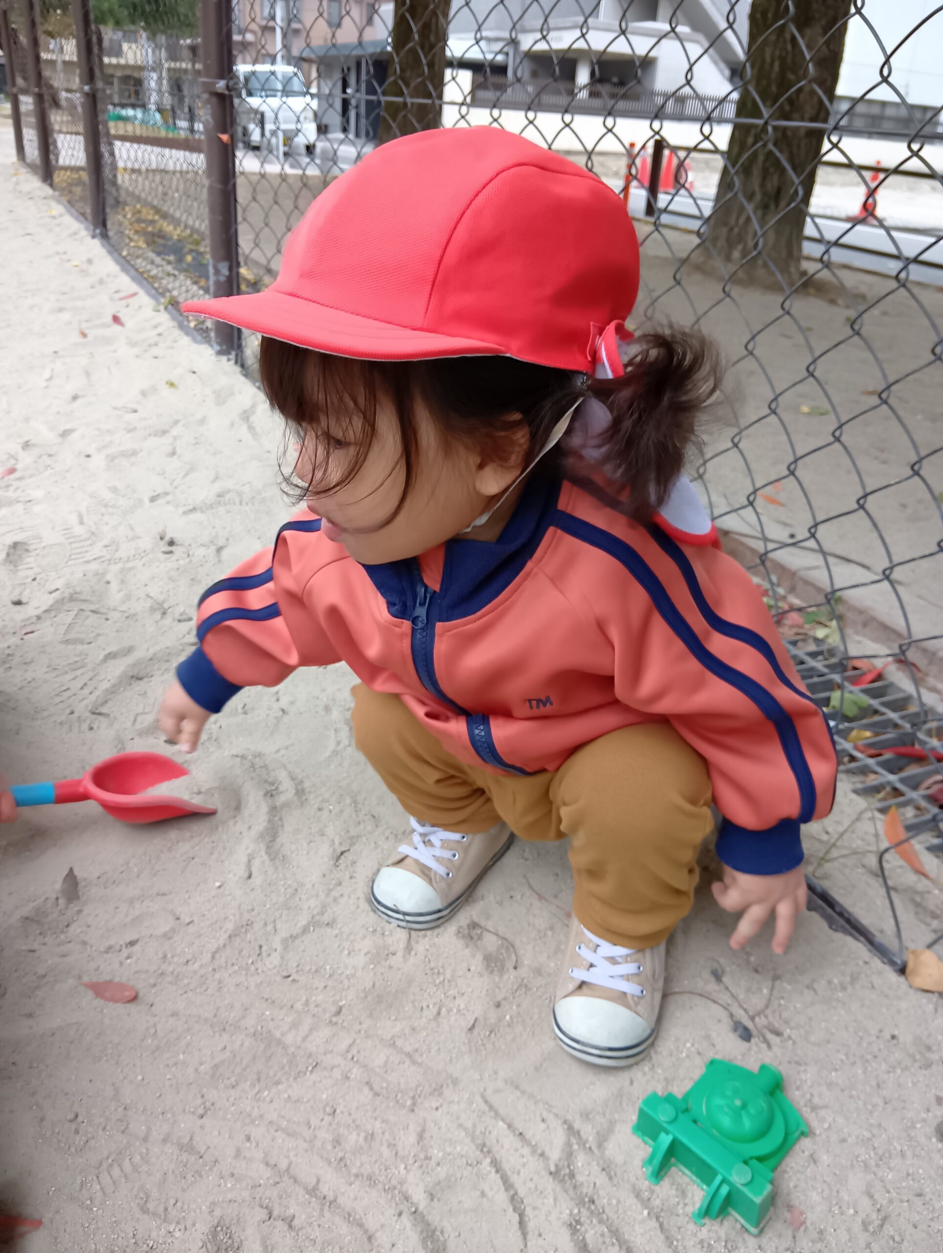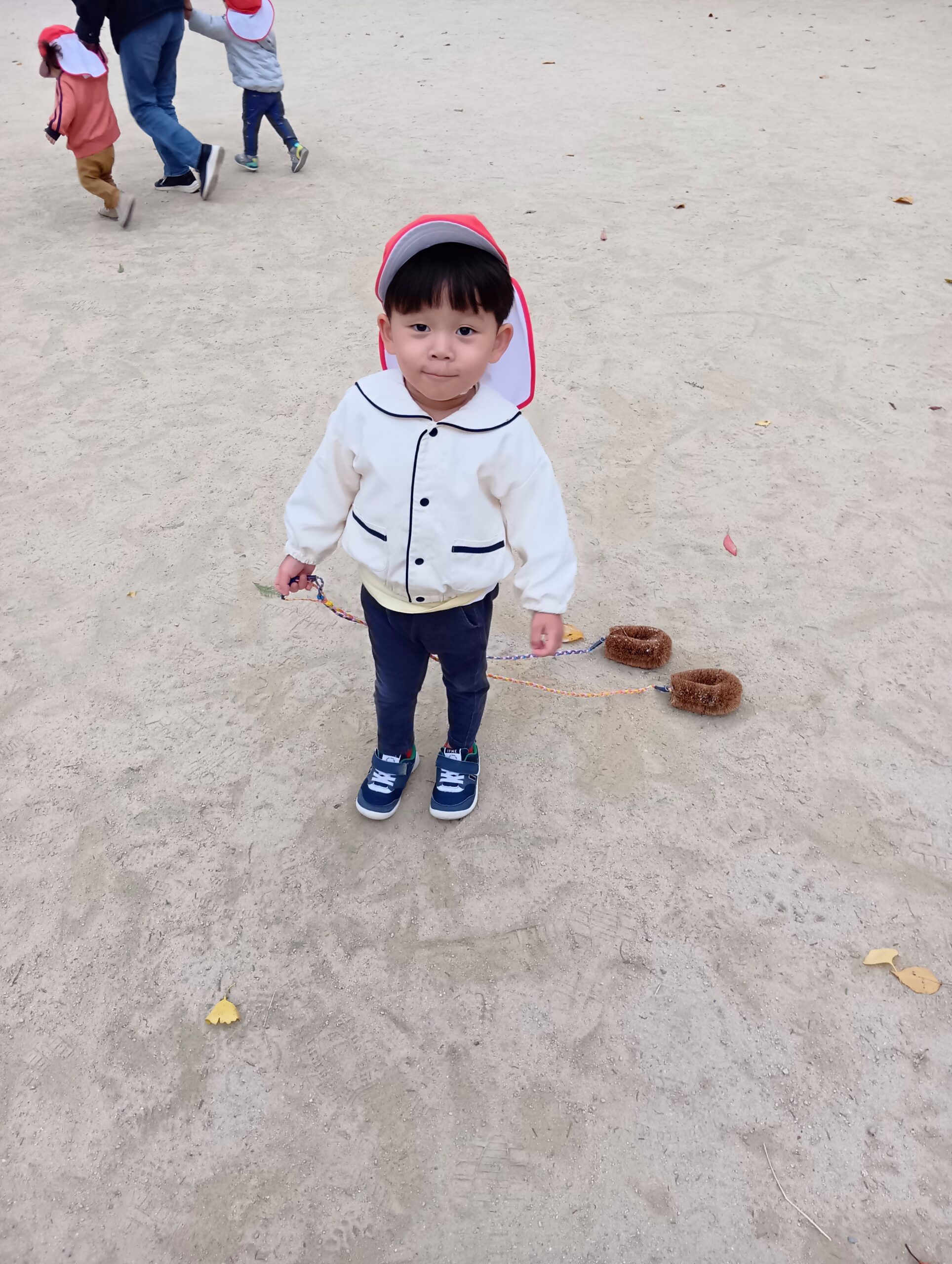 黄色い落ち葉を見つけると「見て!きいろ!」と保育士に見せに来ていましたよ♪