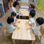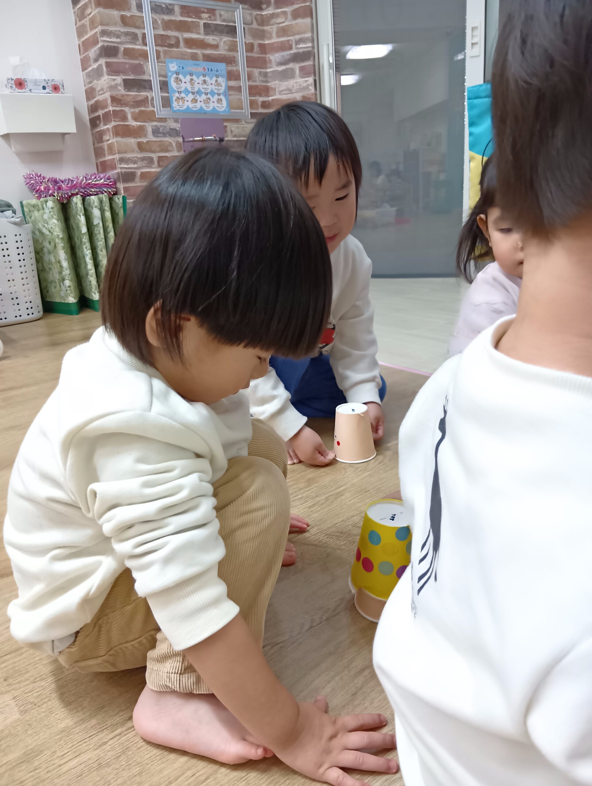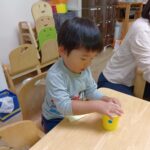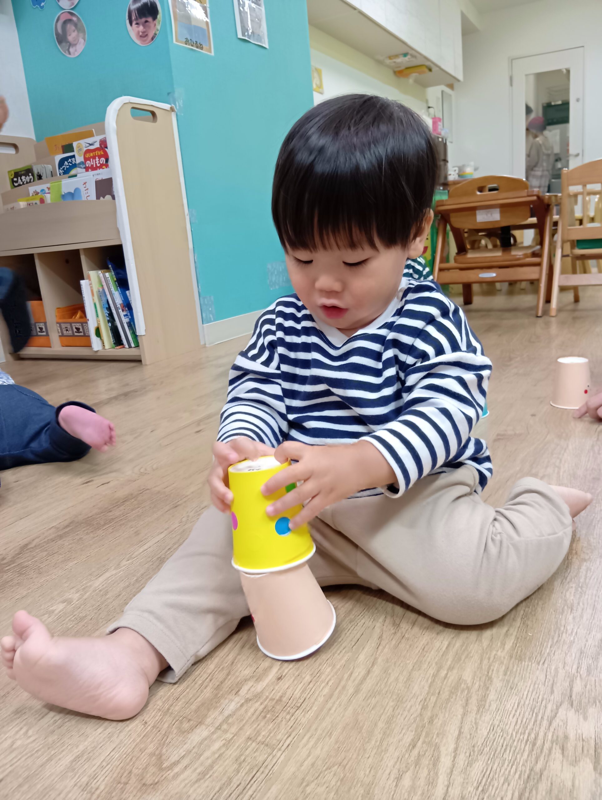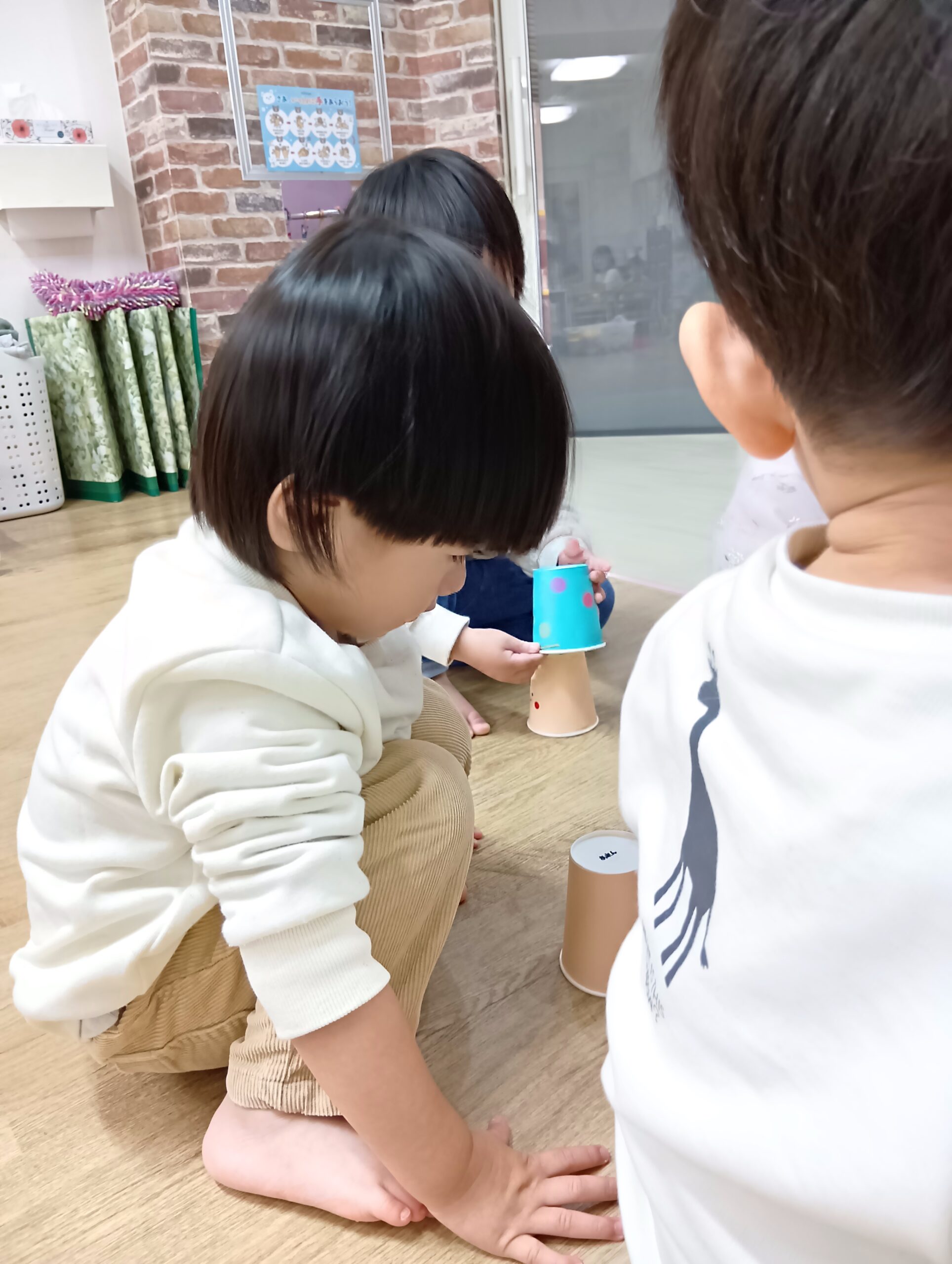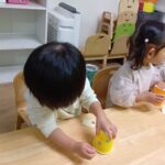 台紙からはがす作業が難しい子もいましたが、保育士に手伝ってもらいながら、上手にはがして貼っていた子ども達です♪