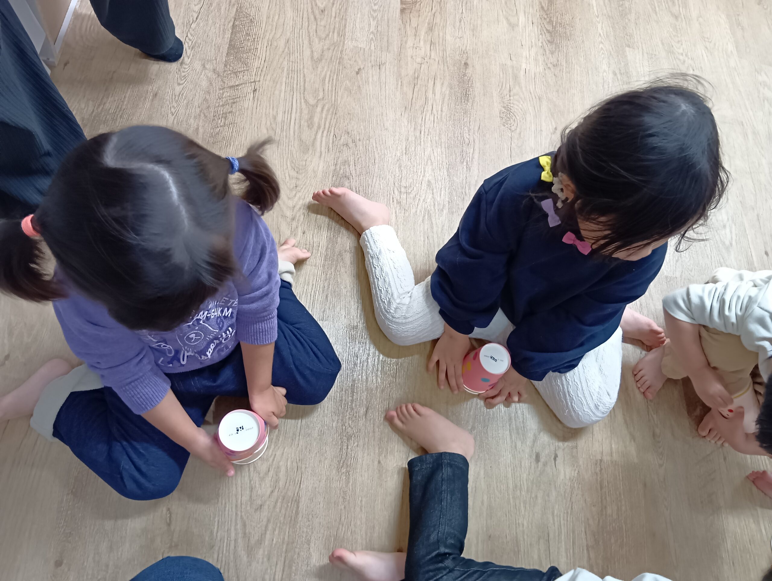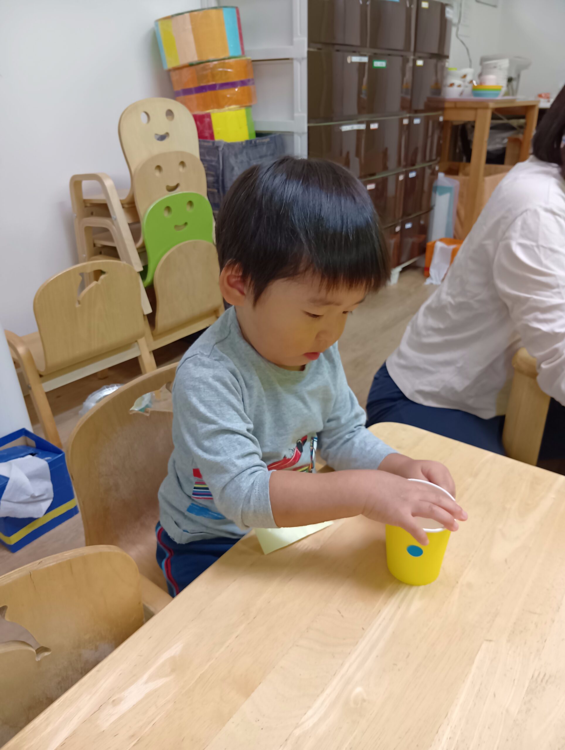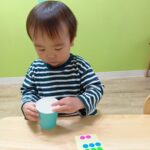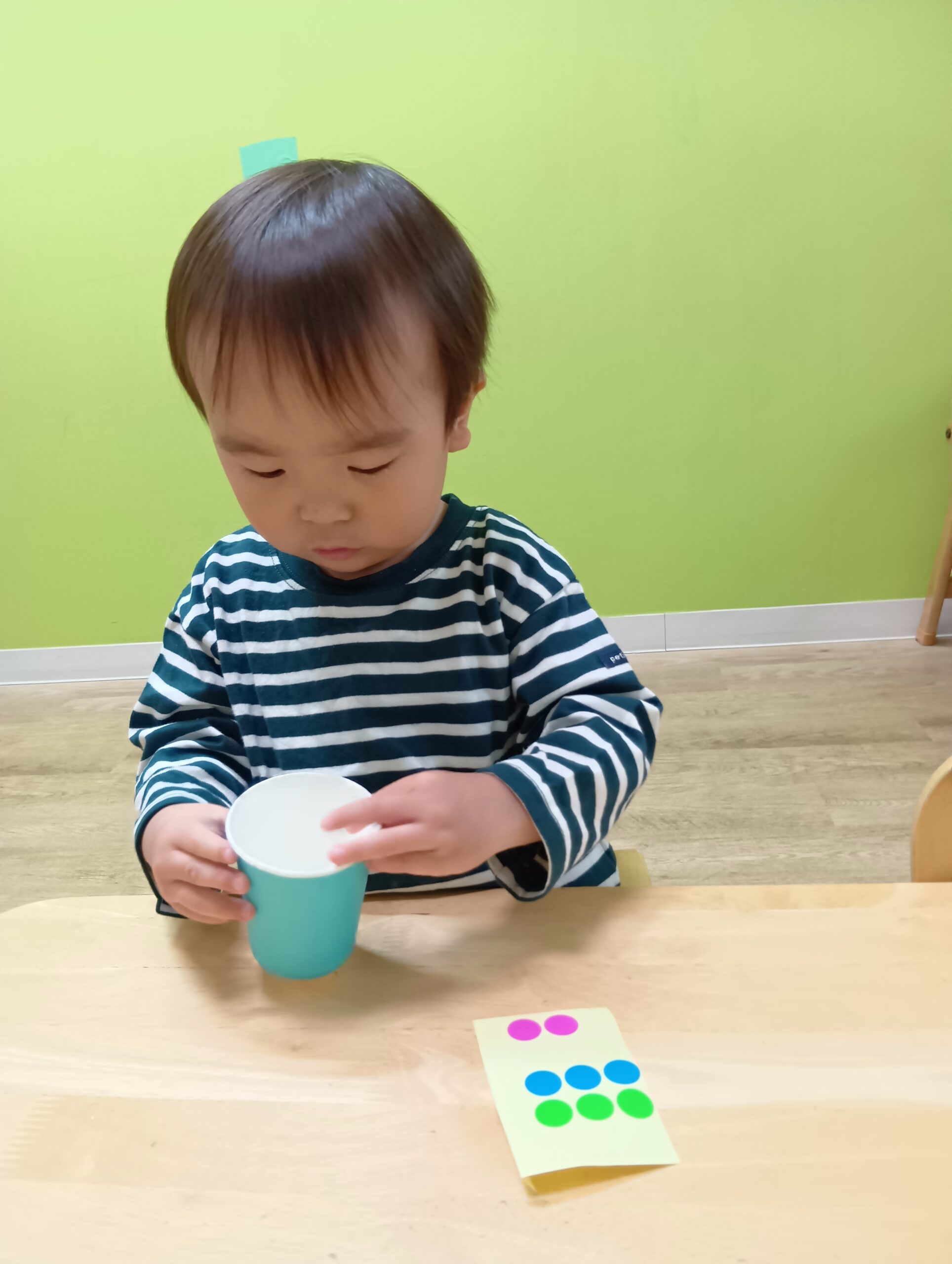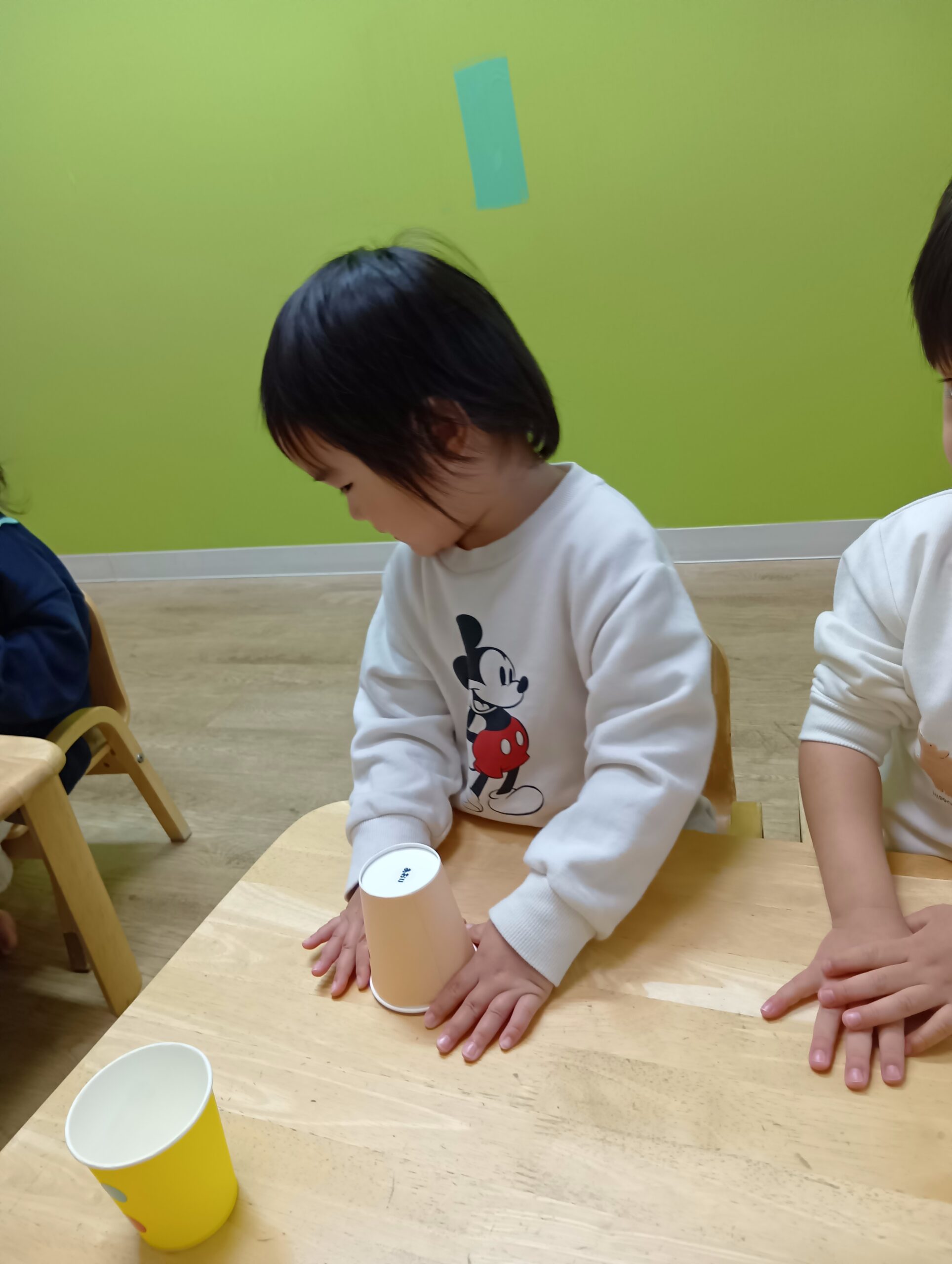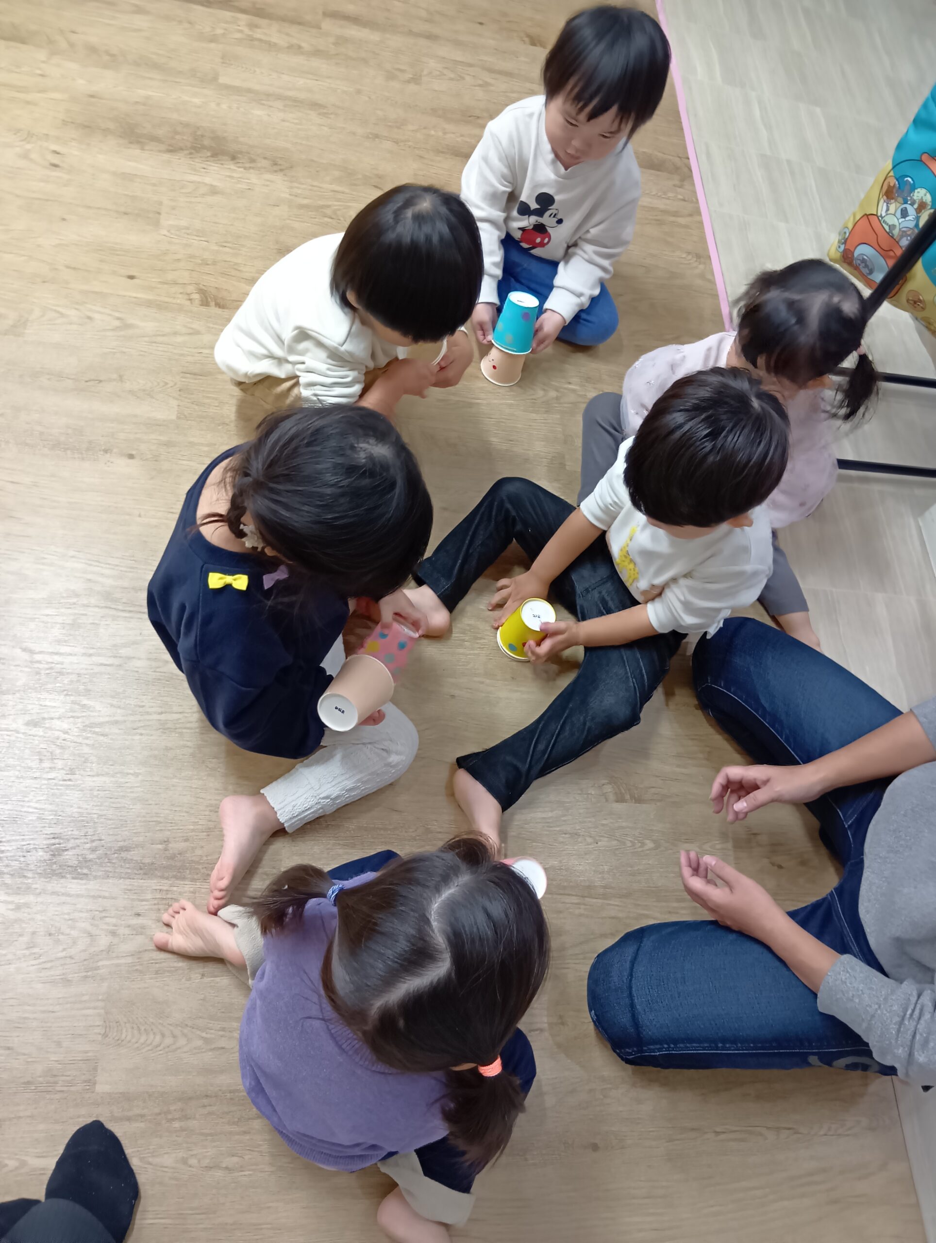 自分たちで好きな色の紙コップを選んで、シールを貼りました!