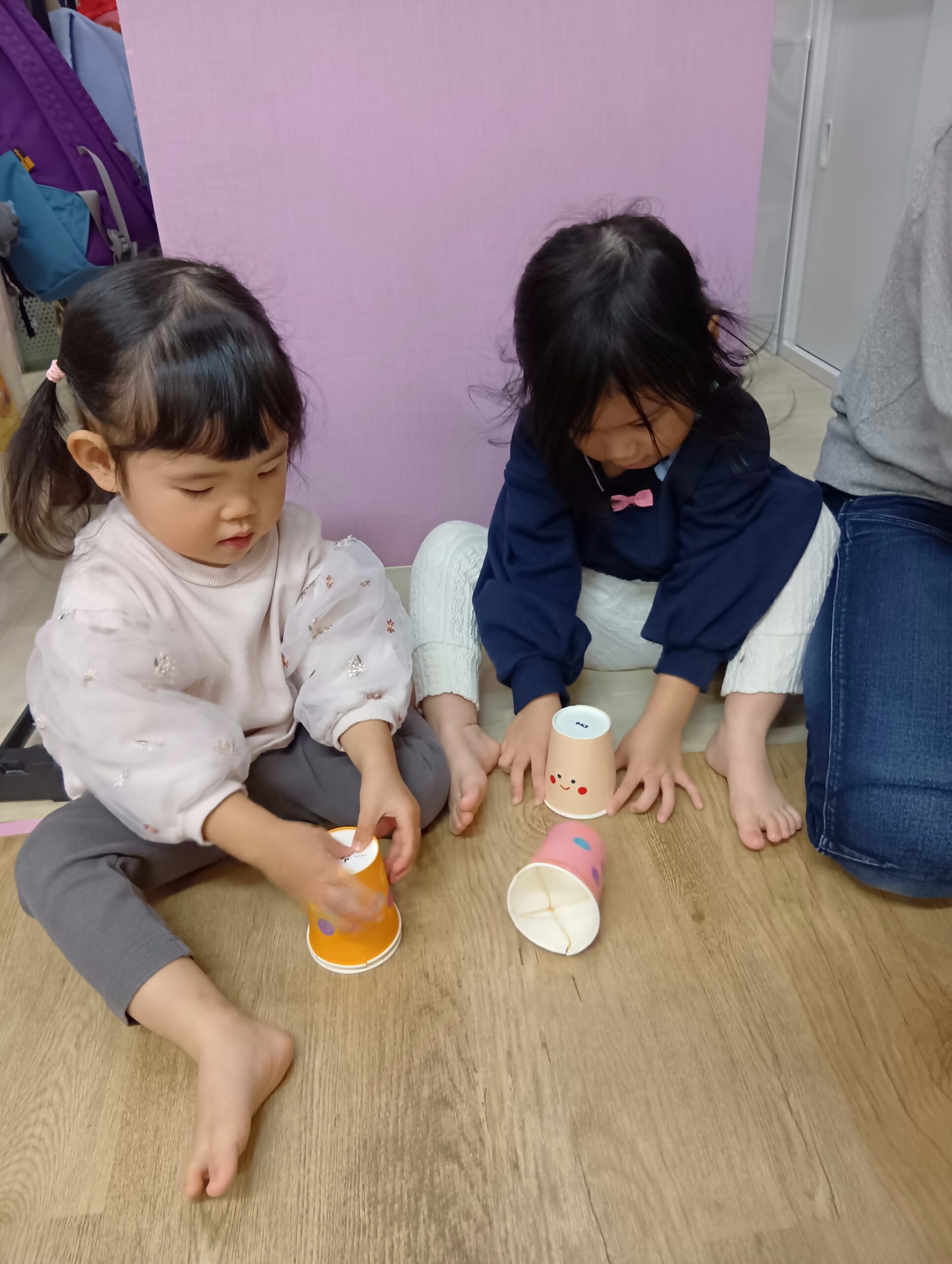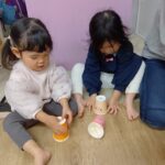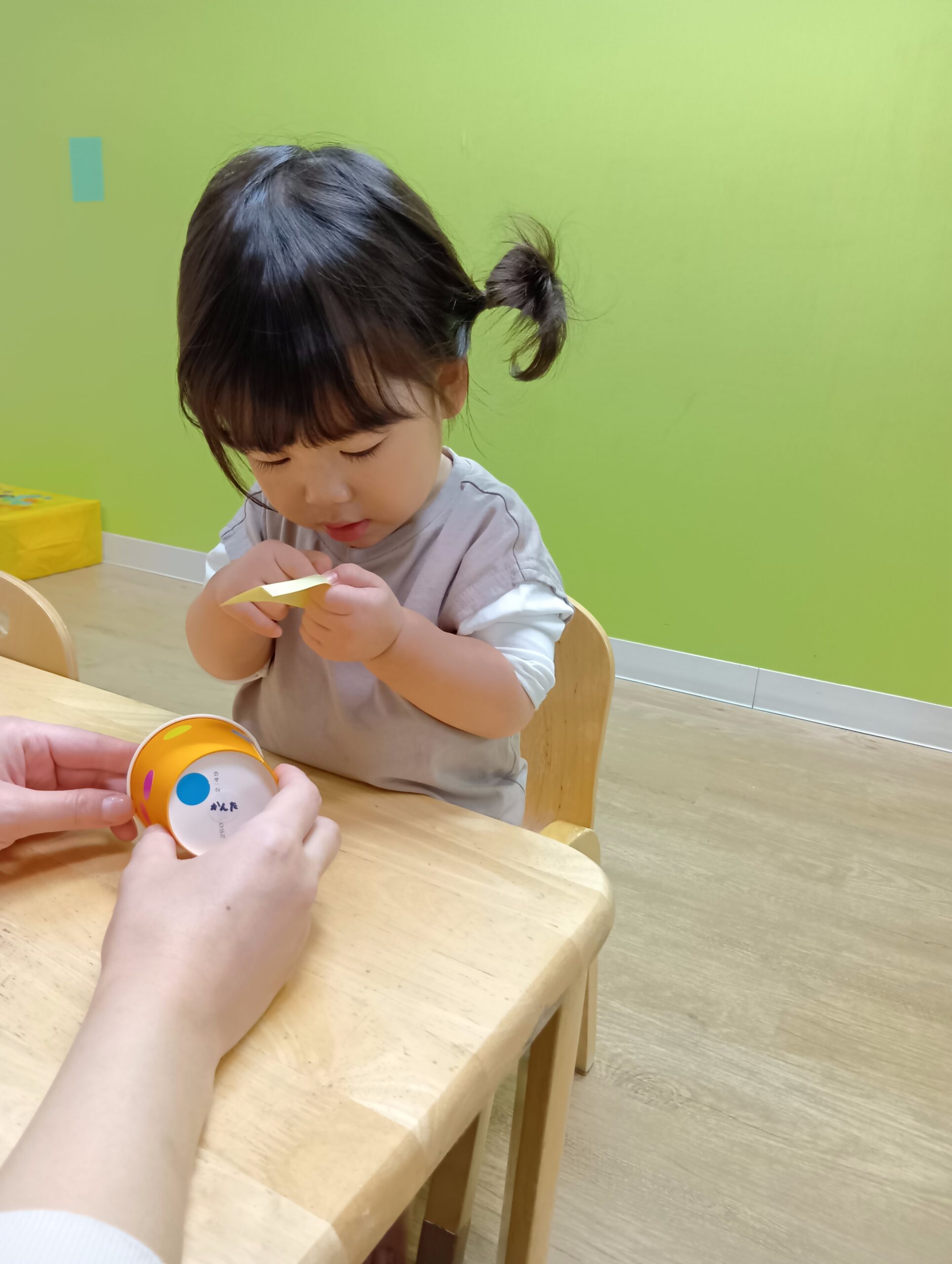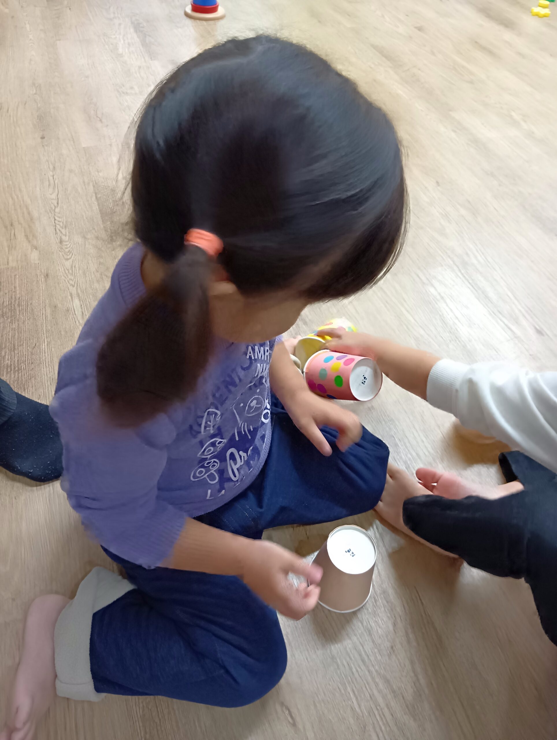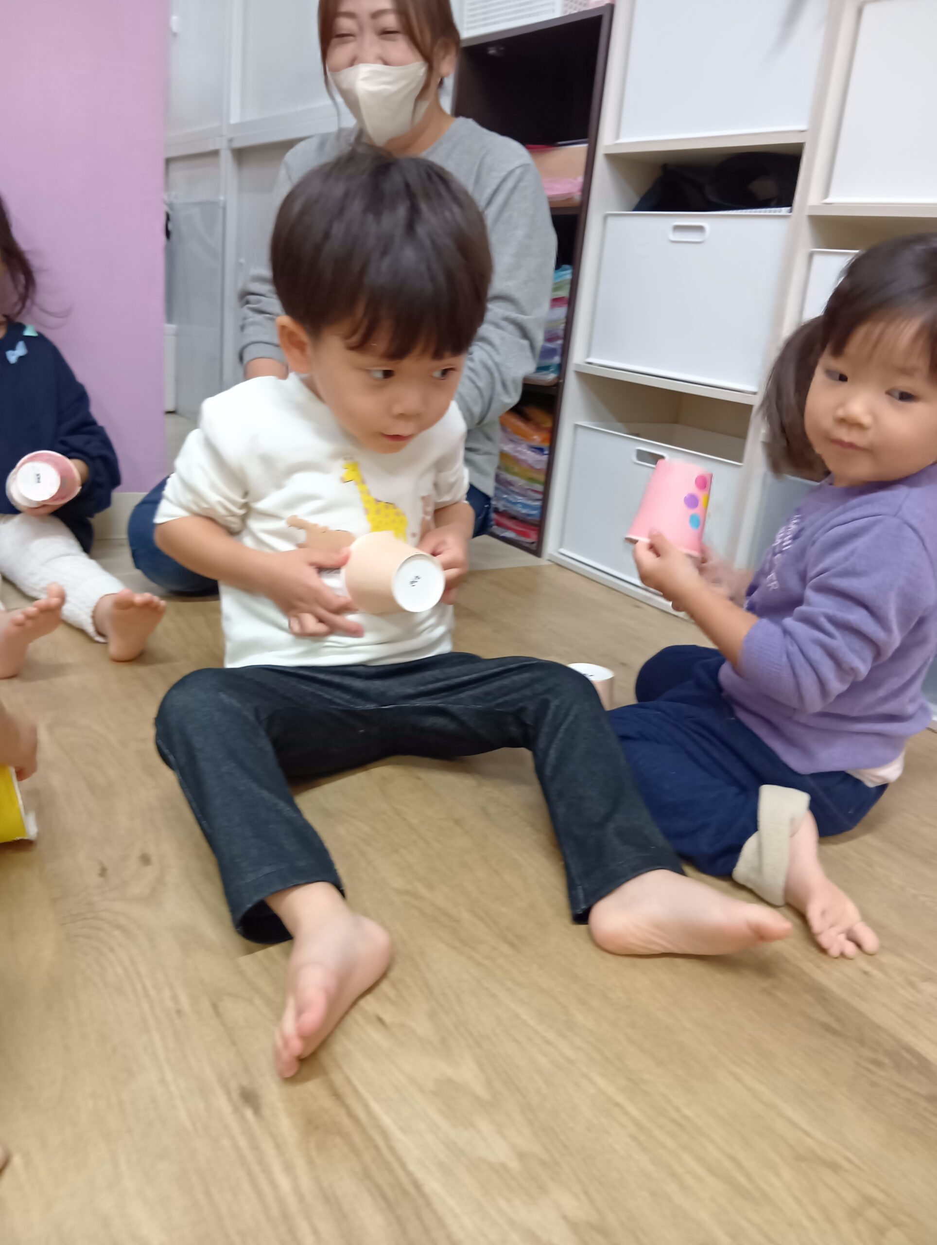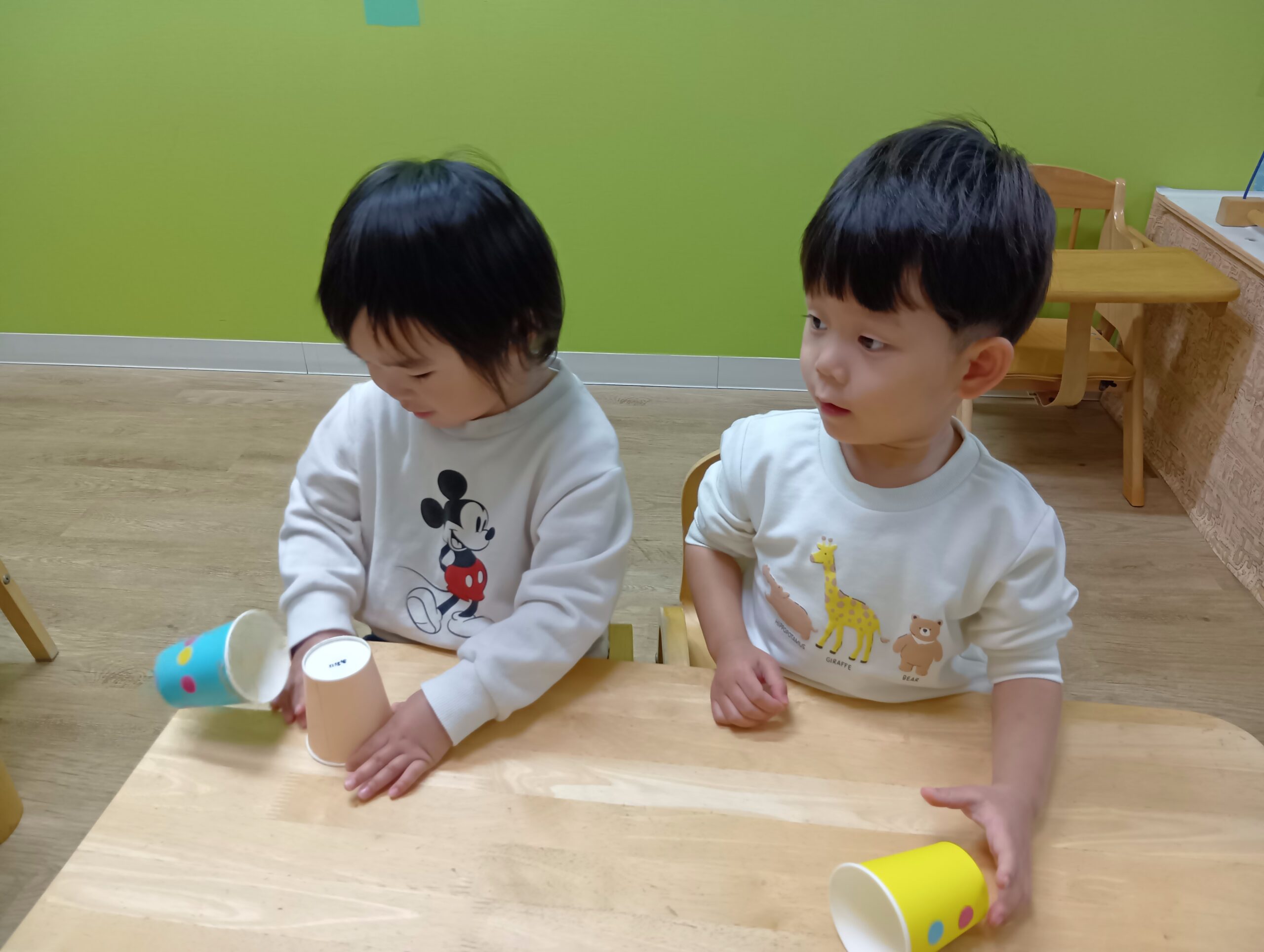自分たちで好きな色の紙コップを選んで、シールを貼りました!
