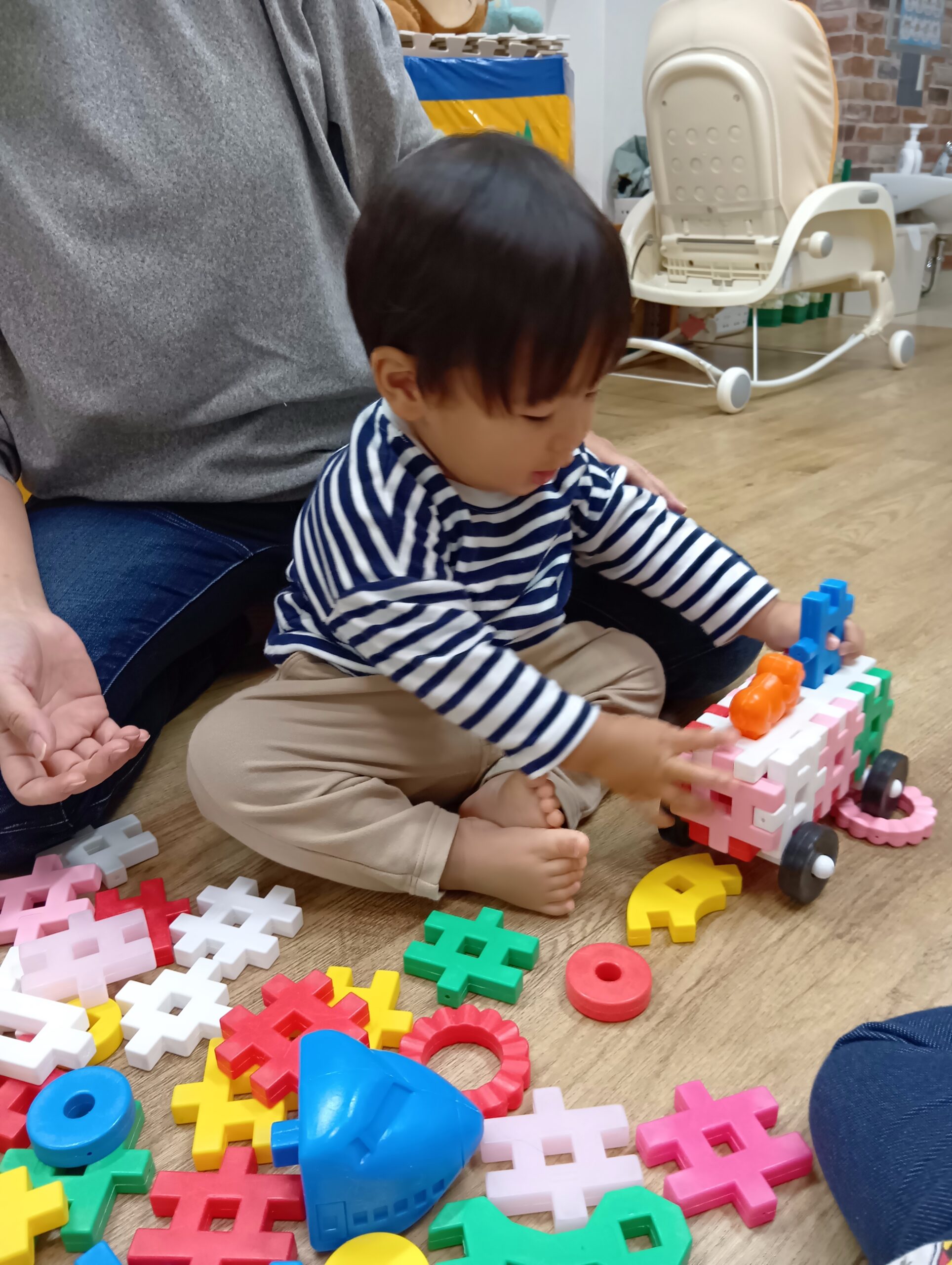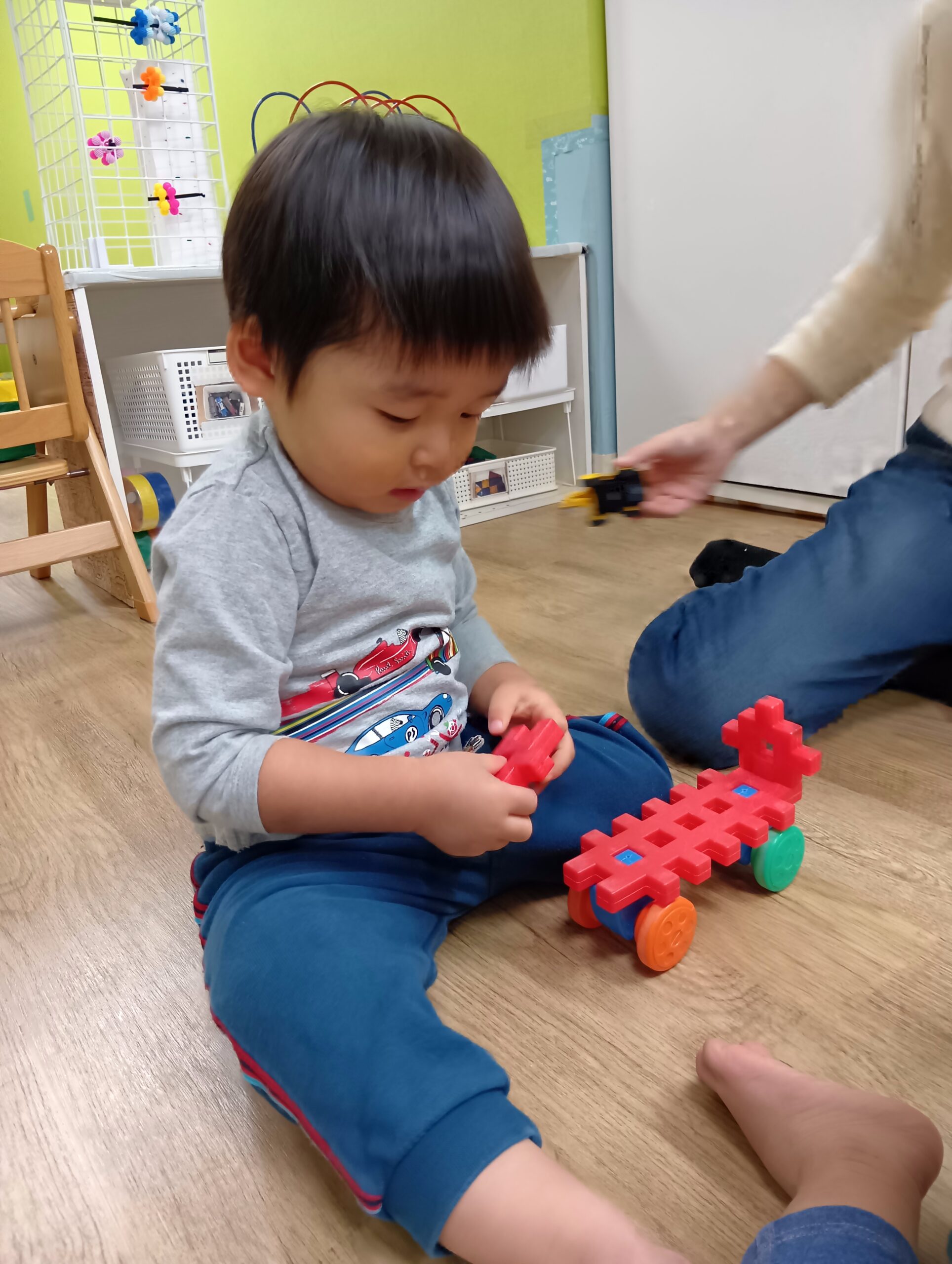 室内遊びでは、ブロックや車遊びを楽しみました!