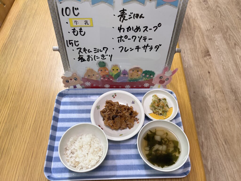 ※食育実施のため、おやつを塩おにぎりに変更しております。