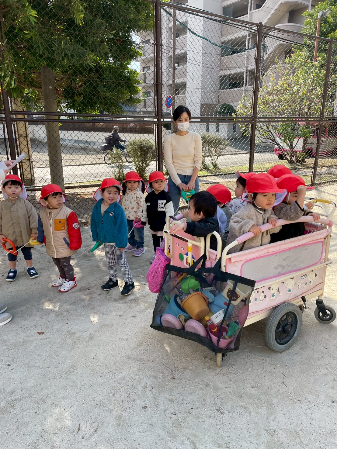 公園に着いてからみんないるか確認のためにお名前呼びをするととっても上手に手を挙げてくれていました🙋♀️