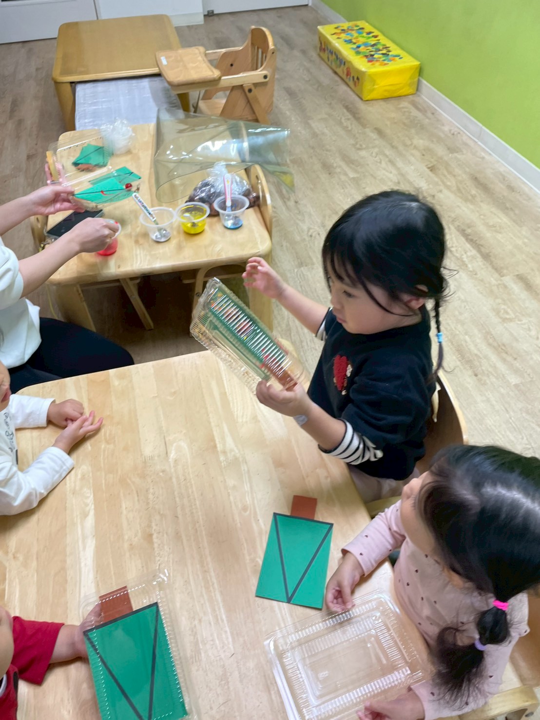 今日はクリスマスに向けてクリスマスツリーの壁面飾りの製作をしました🌳