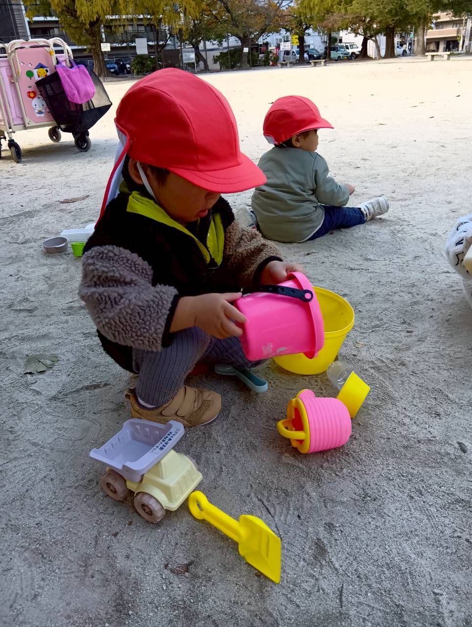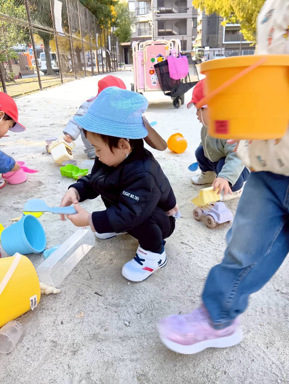 シャボン玉を追いかけたり、お砂遊びをしたり、したい遊びをそれぞれで楽しんでいましたよ😊