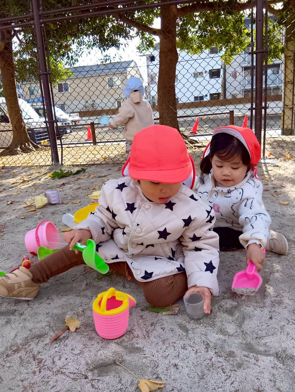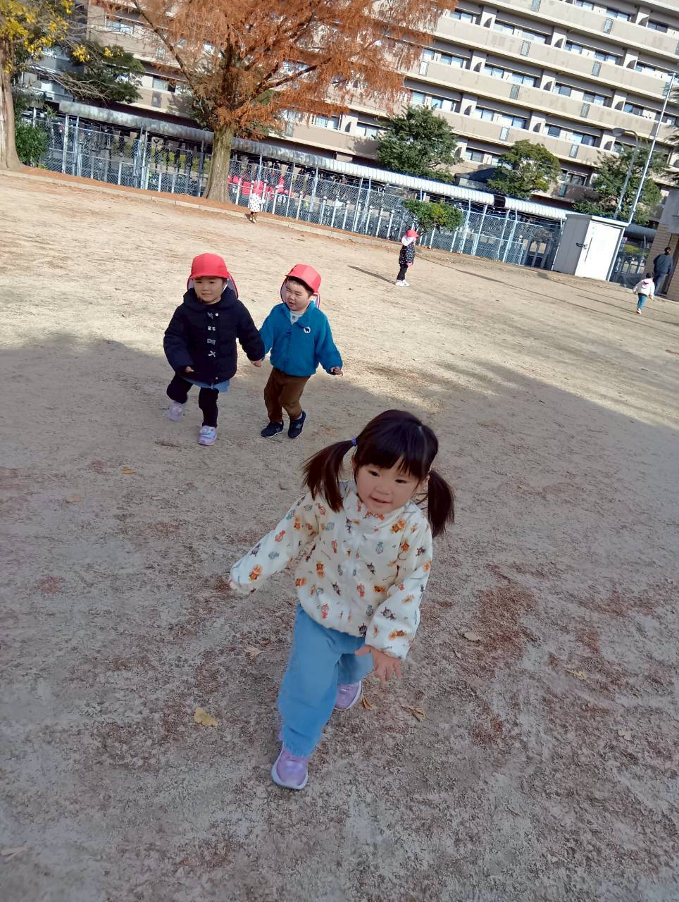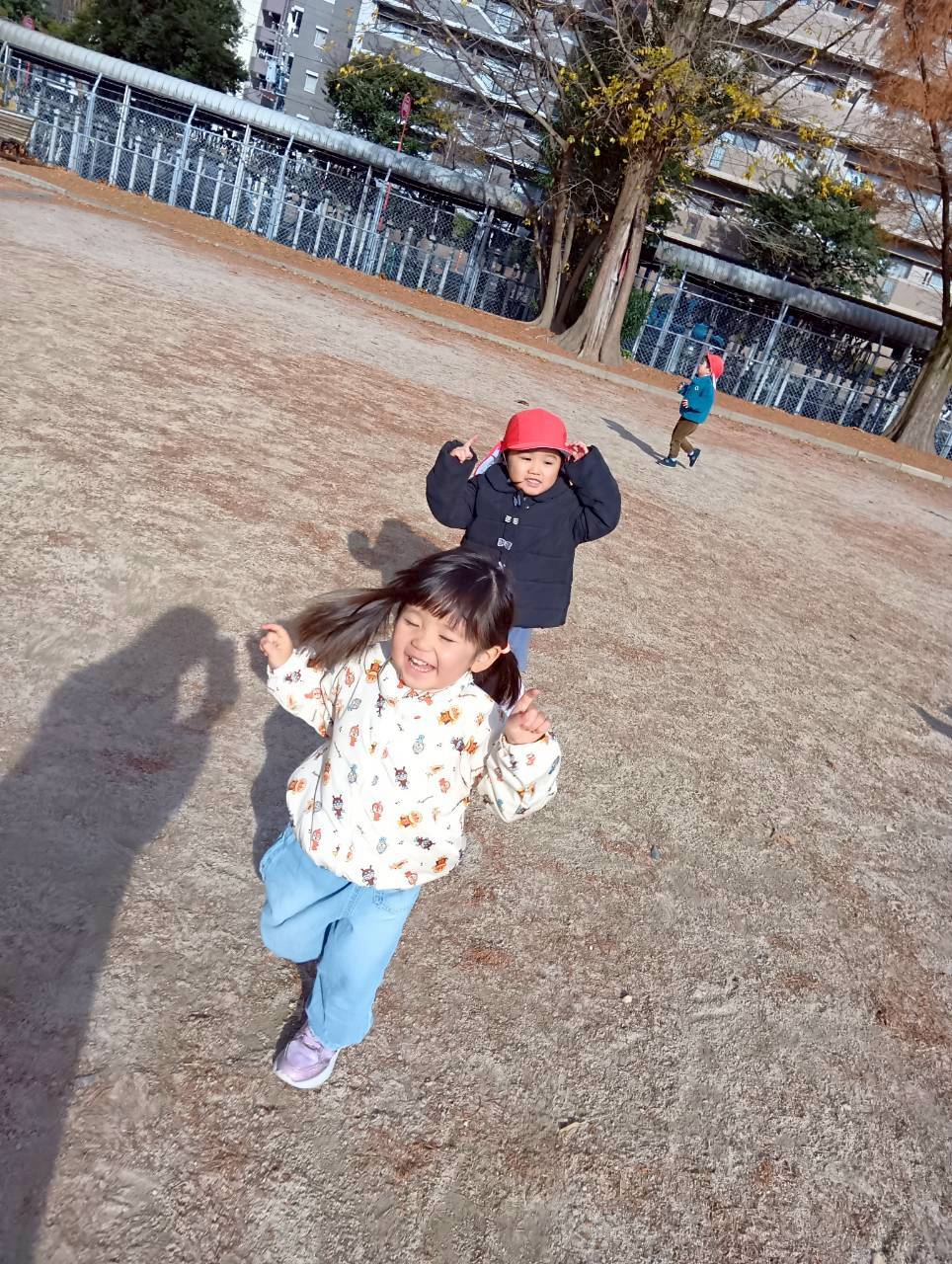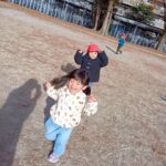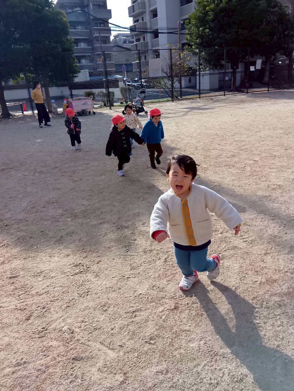 追いかけっこの後はお砂遊びをしたり、お友達同士で追いかけっこをしたりしながら寒い中でもたくさん遊んでいました❄️