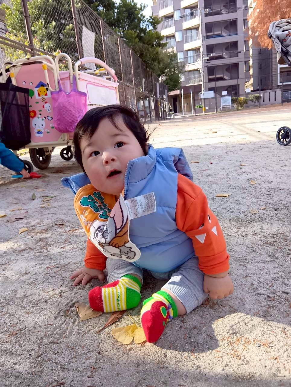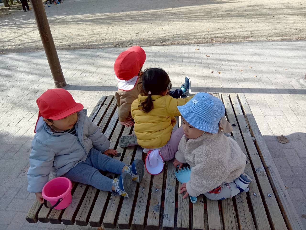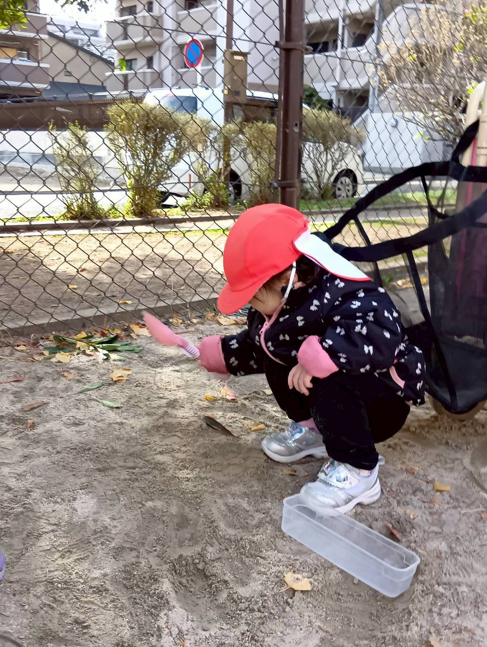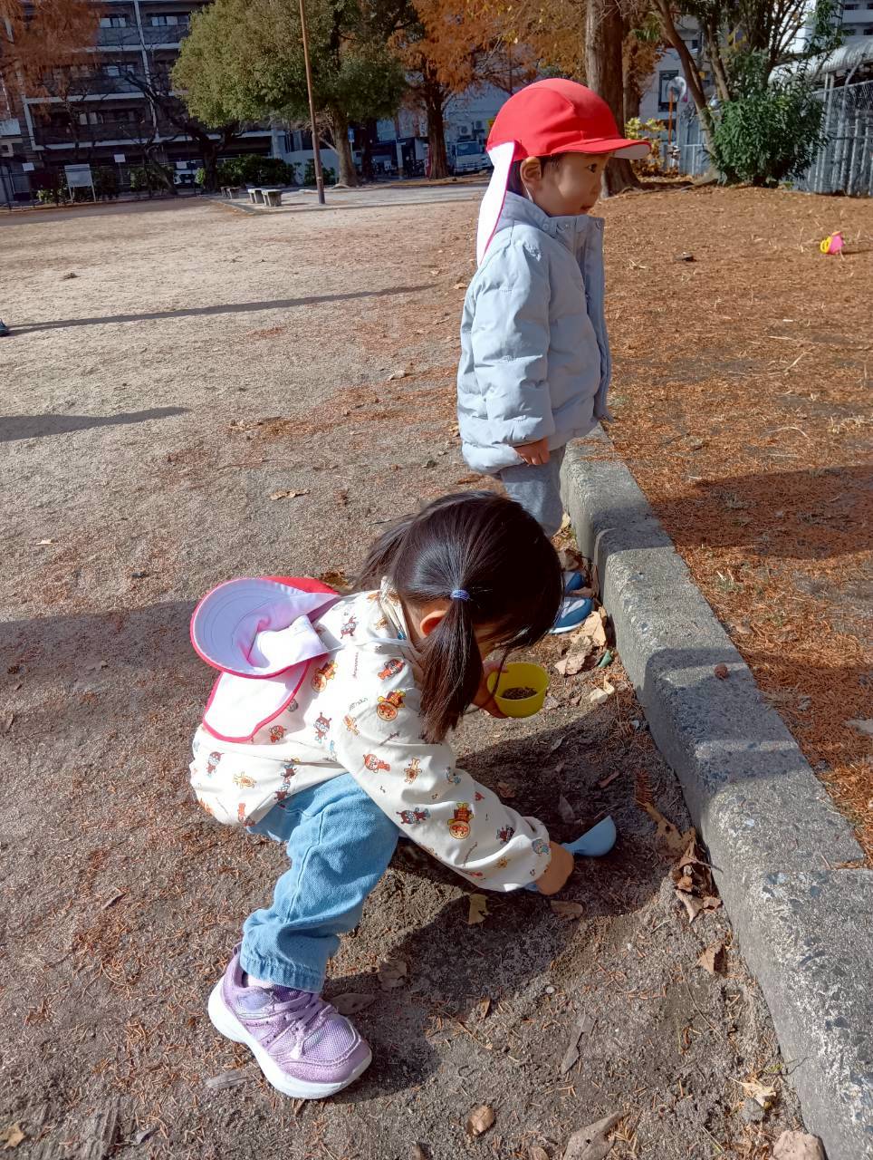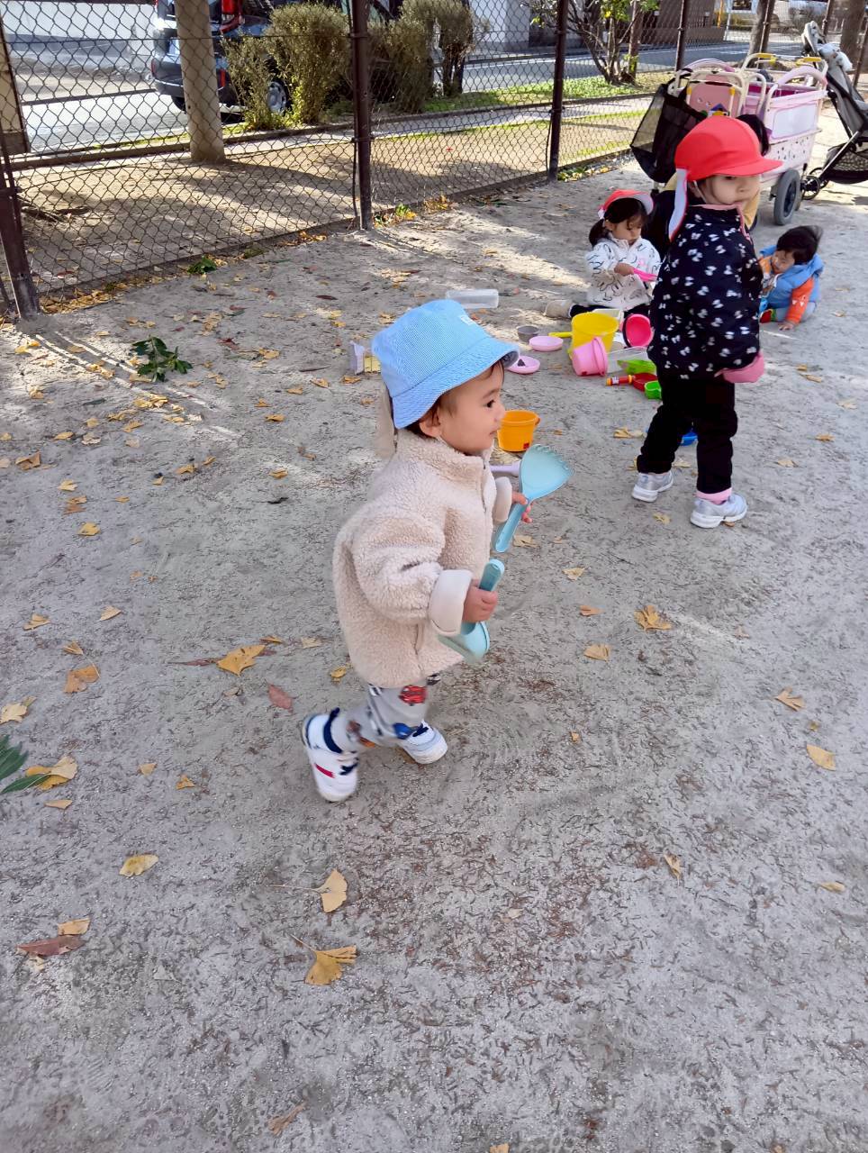 追いかけっこの後はお砂遊びをしたり、お友達同士で追いかけっこをしたりしながら寒い中でもたくさん遊んでいました❄️