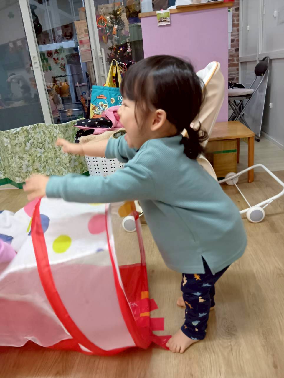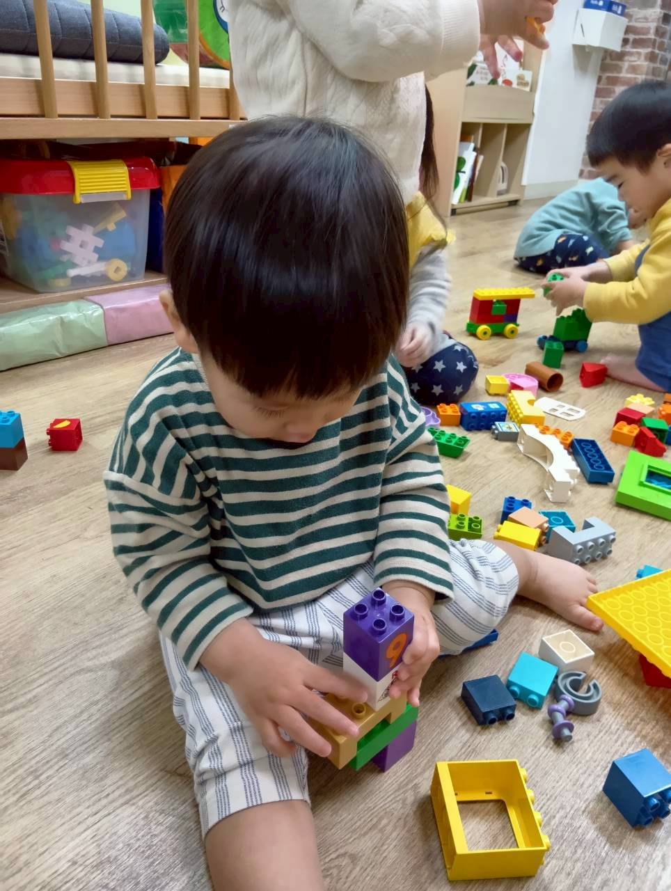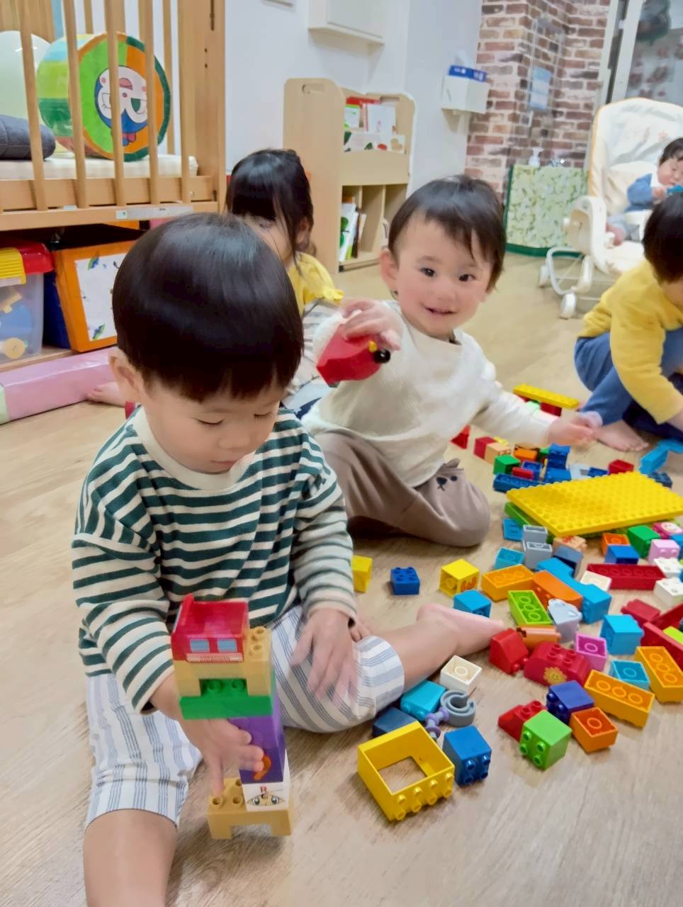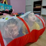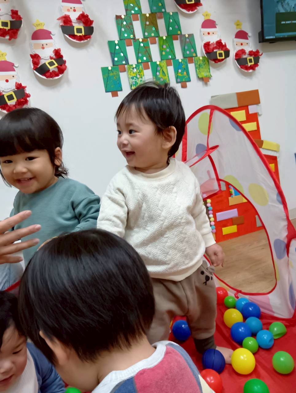 ボールプールと一緒にトンネルも出すと、順番にくぐってみたり、お友達とぎゅうぎゅうになってトンネルの中に入ってみたりと、いろいろな楽しみ方をしていましたよ😄