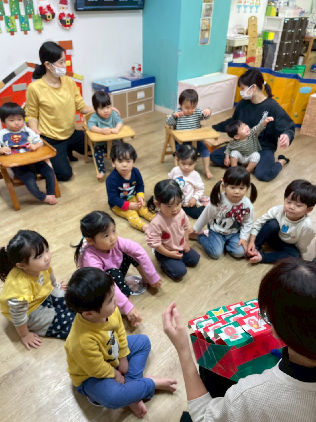 朝からお家でのクリスマスパーティーの話や、サンタさんからもらったプレゼントの話しで持ちきりだった子ども達🎅