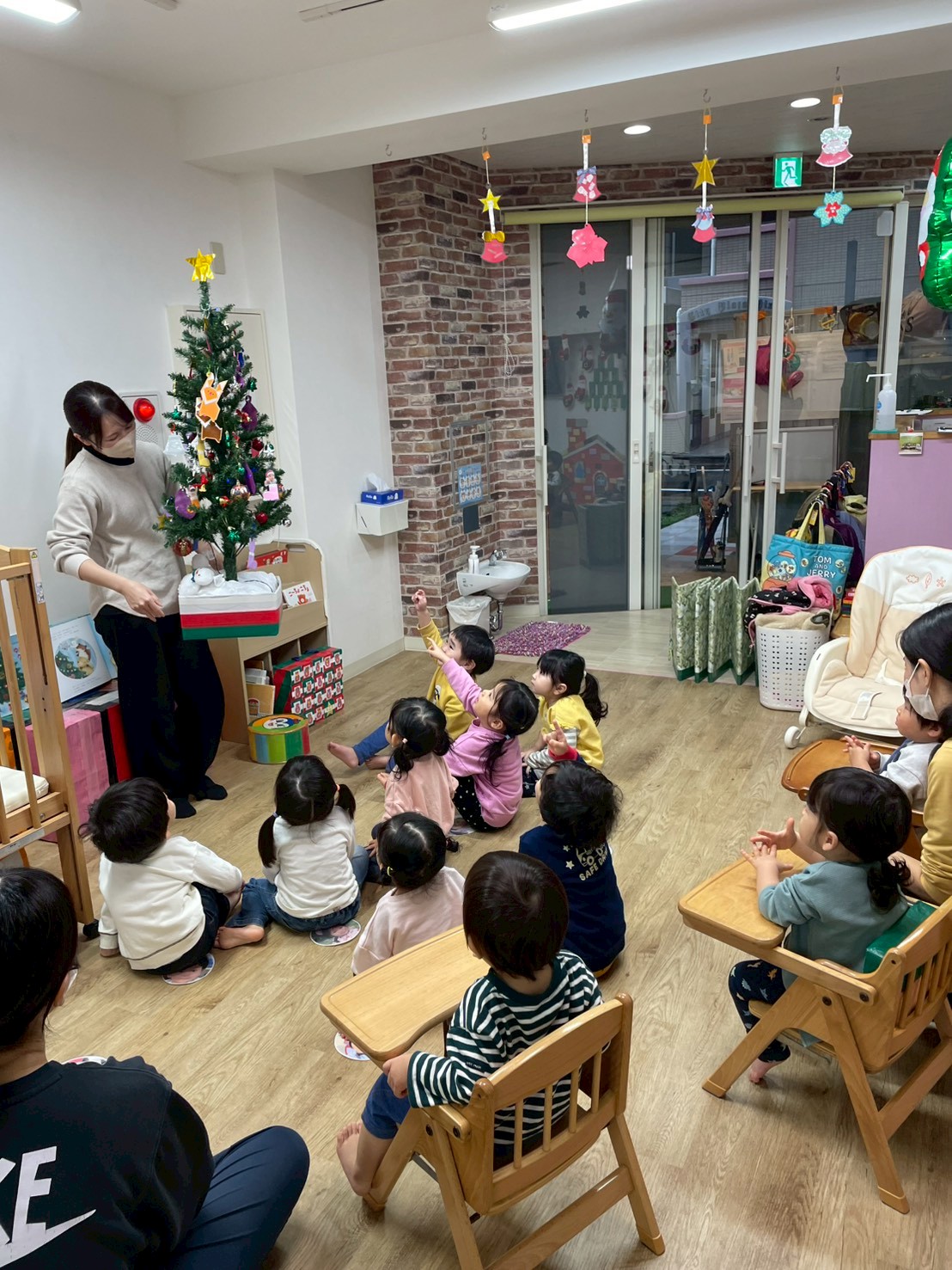 最後の飾りもツリーにつけると、完成したツリーを見て拍手をしてくれていた子ども達でした👏