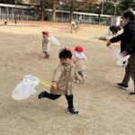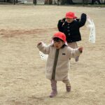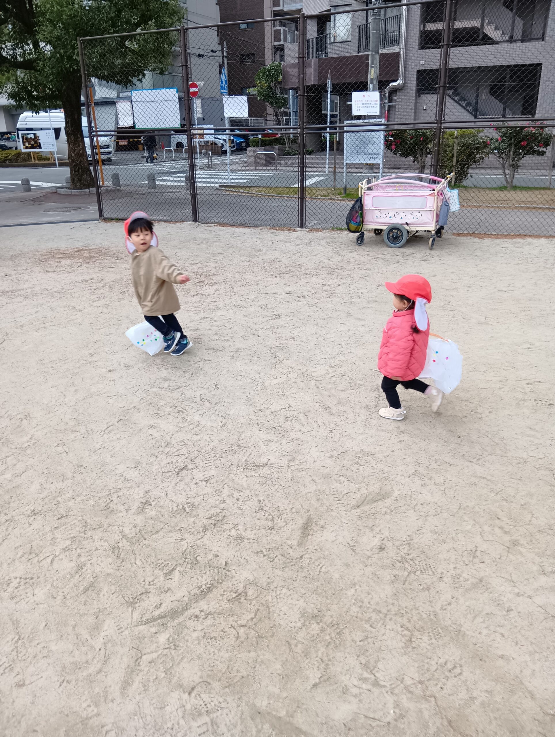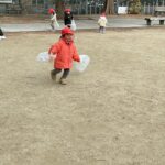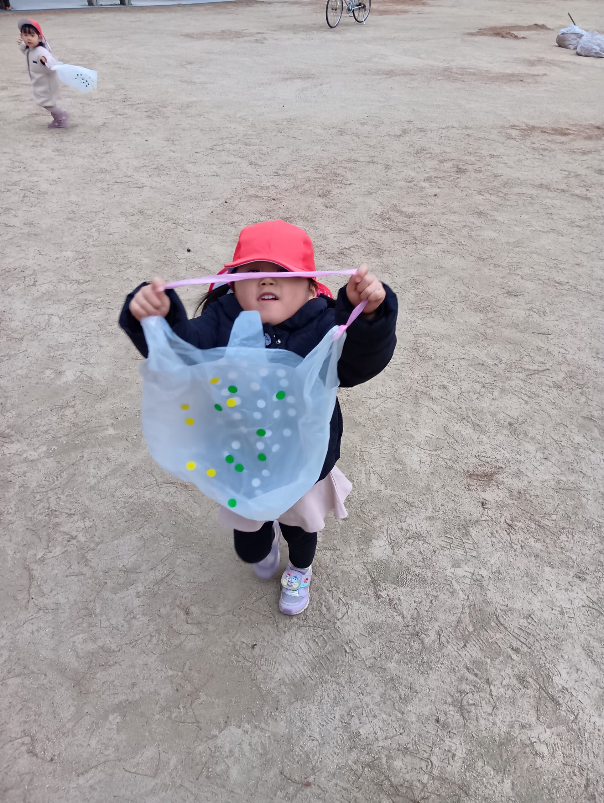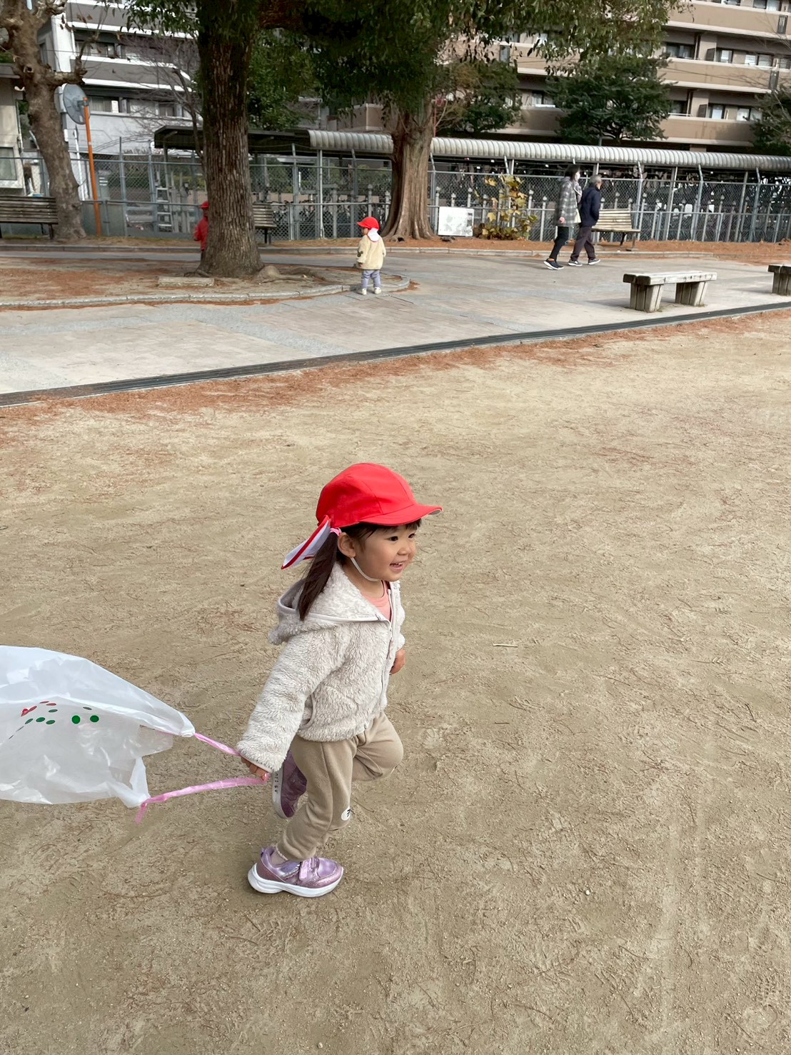 凧揚げの遊び方を教えると、みんな一生懸命に走って凧をあげていましたよ☺️