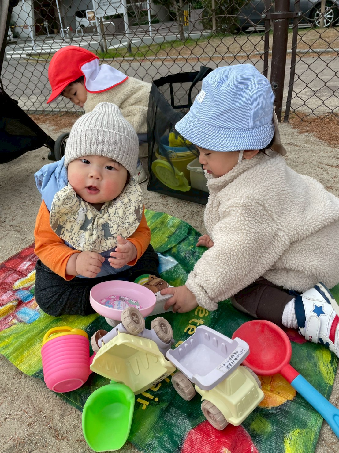 その後も砂遊びや、公園内を散策したりと、それぞれ思い思いに遊ぶ姿が見られました😊