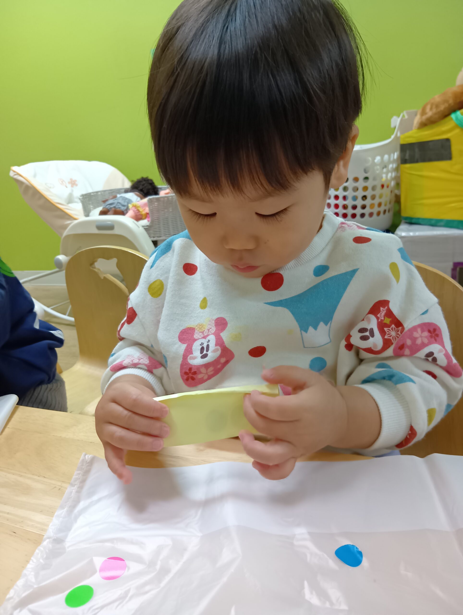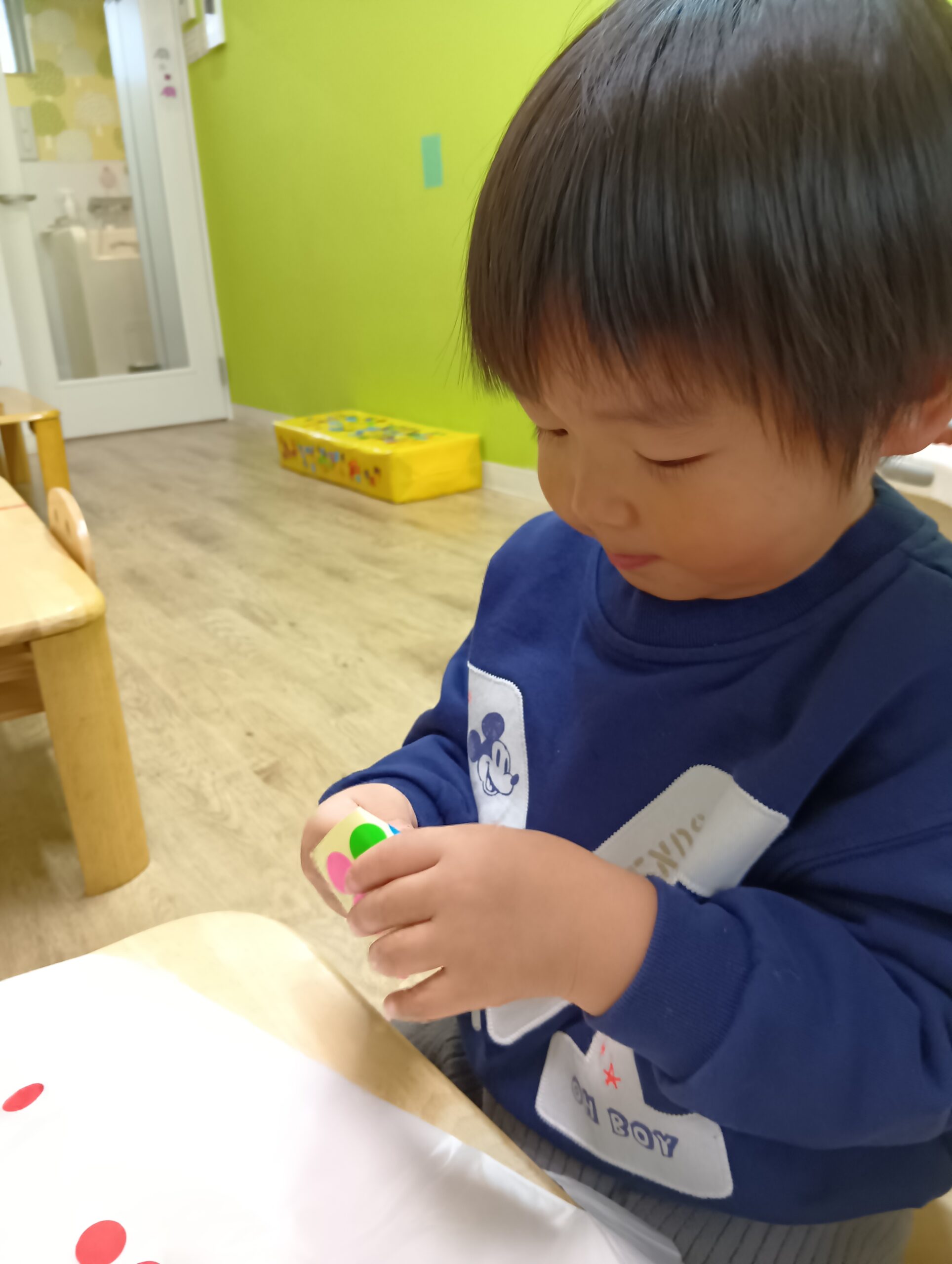 シール貼りも上手になり、「まだ貼る!」とたくさん貼っていましたよ♪