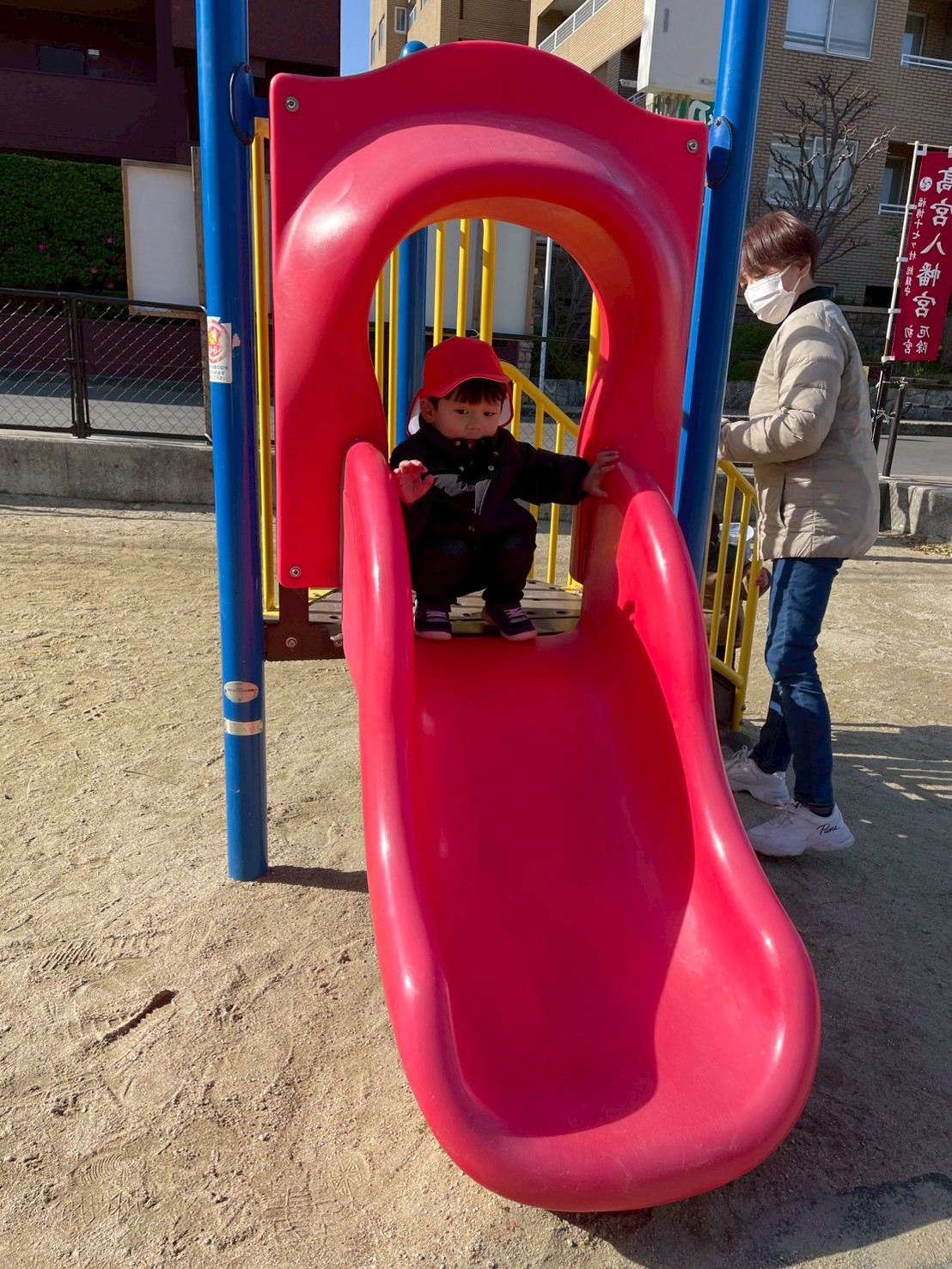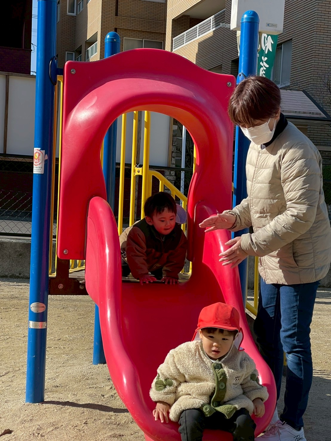 公園に着くと、早速すべり台や前後に揺れる遊具、お砂場に走っていく子どもたち!