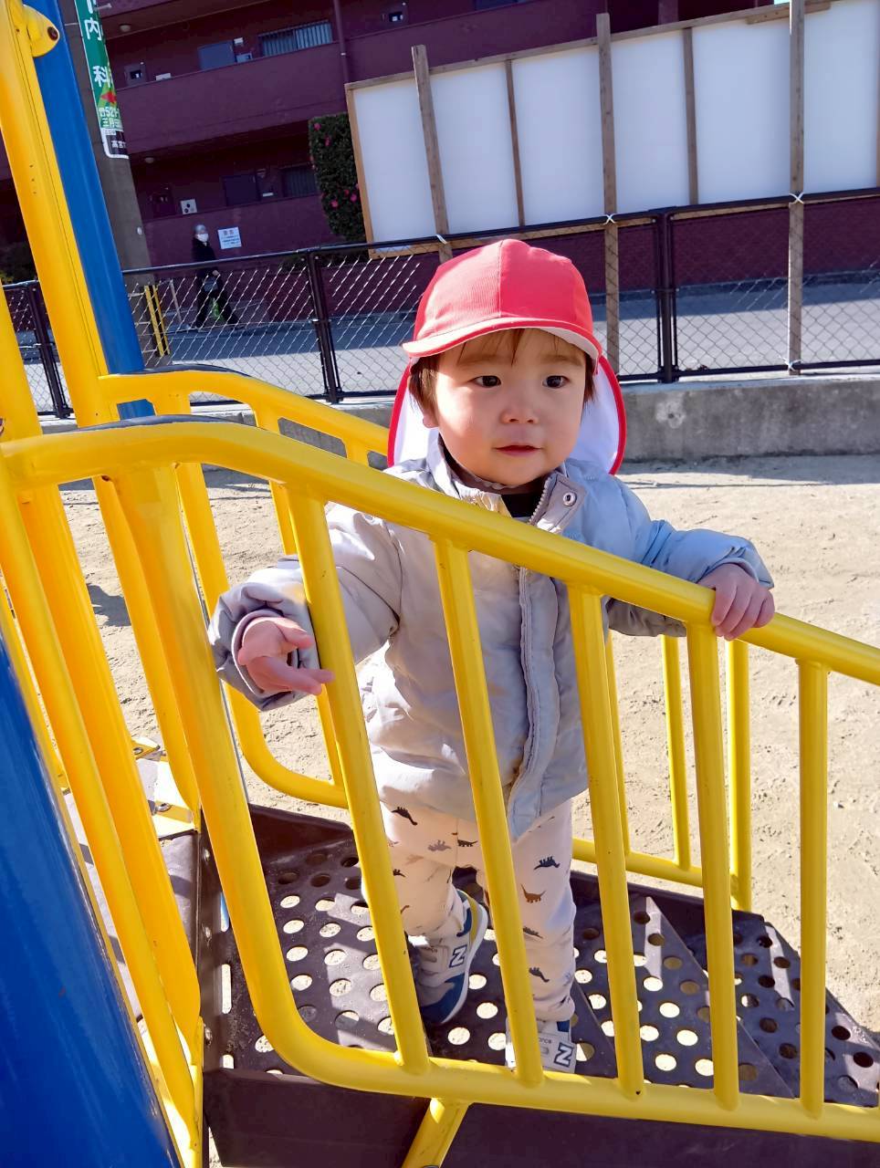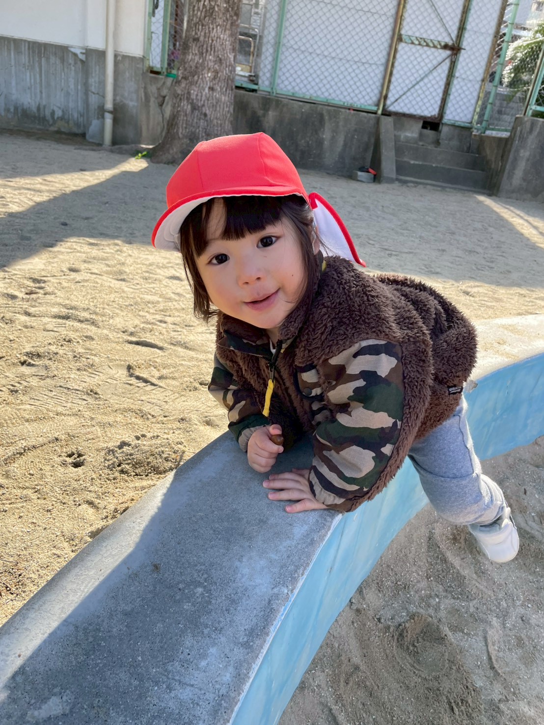 横長い石段の周りで追いかけっこをして体もたくさん動かせました🏃
