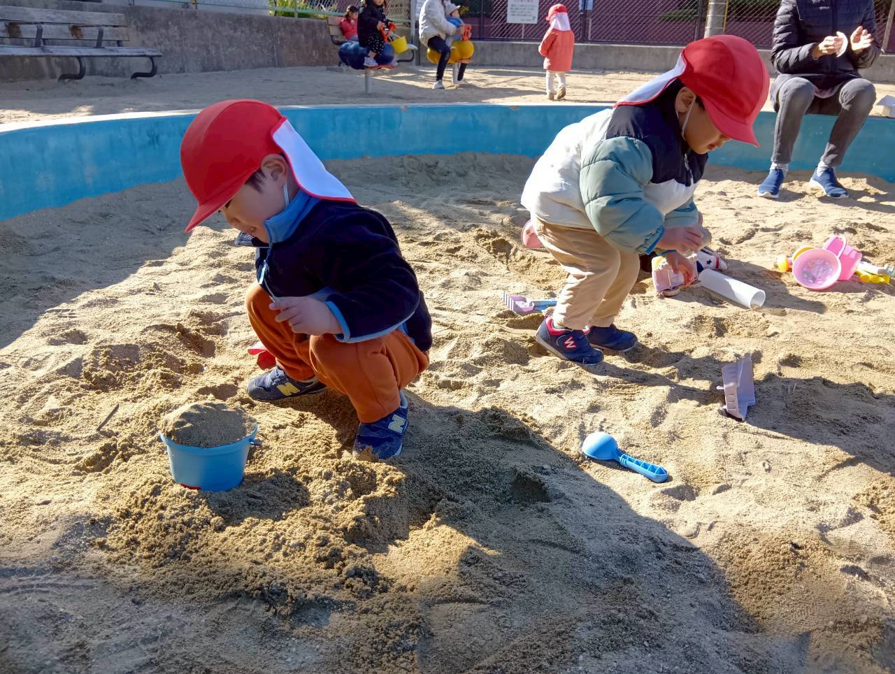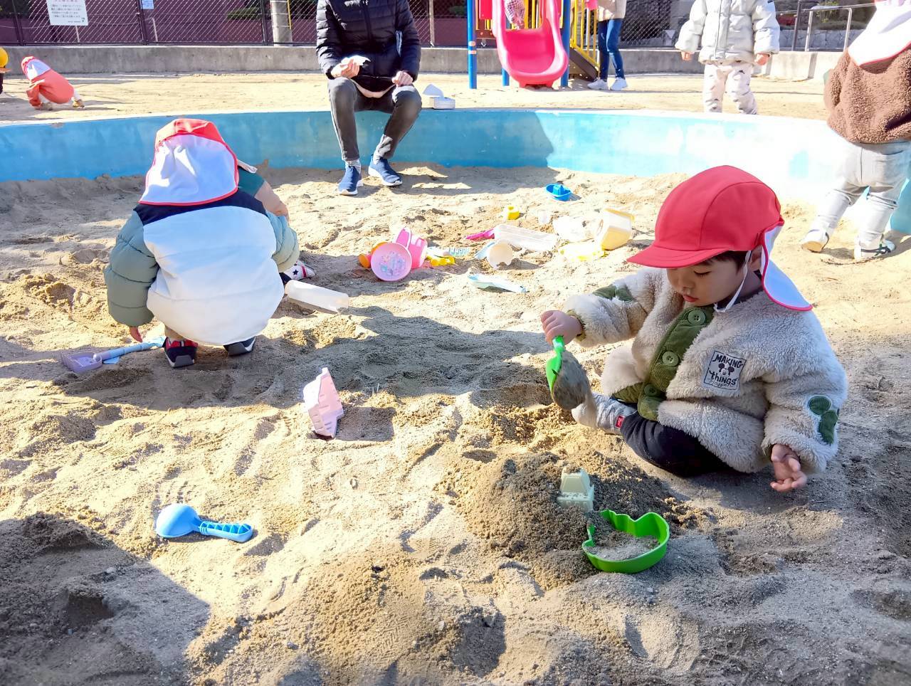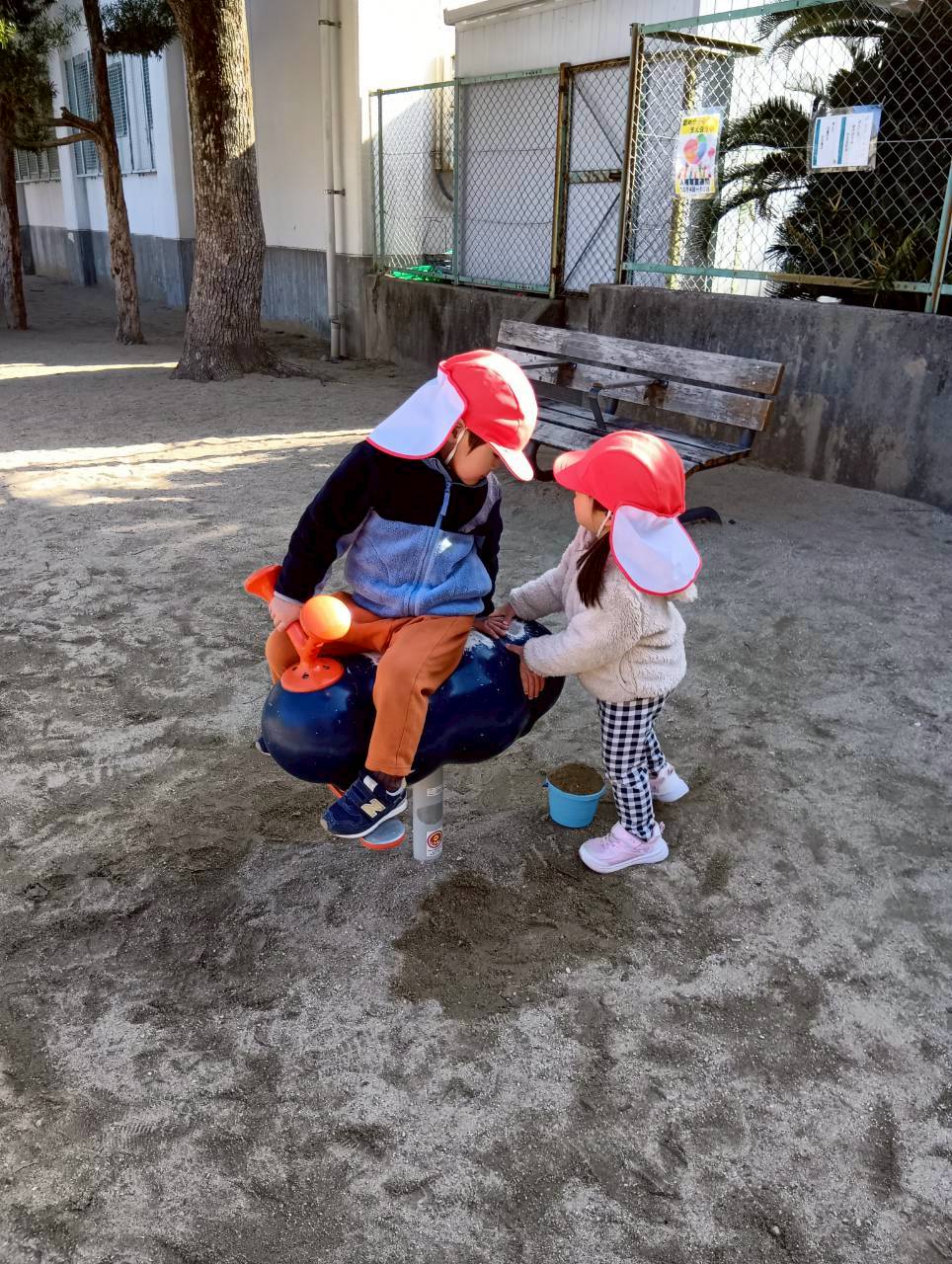 太陽が出ていて暖かく、長い時間戸外遊びを楽しむことができましたよ☀️