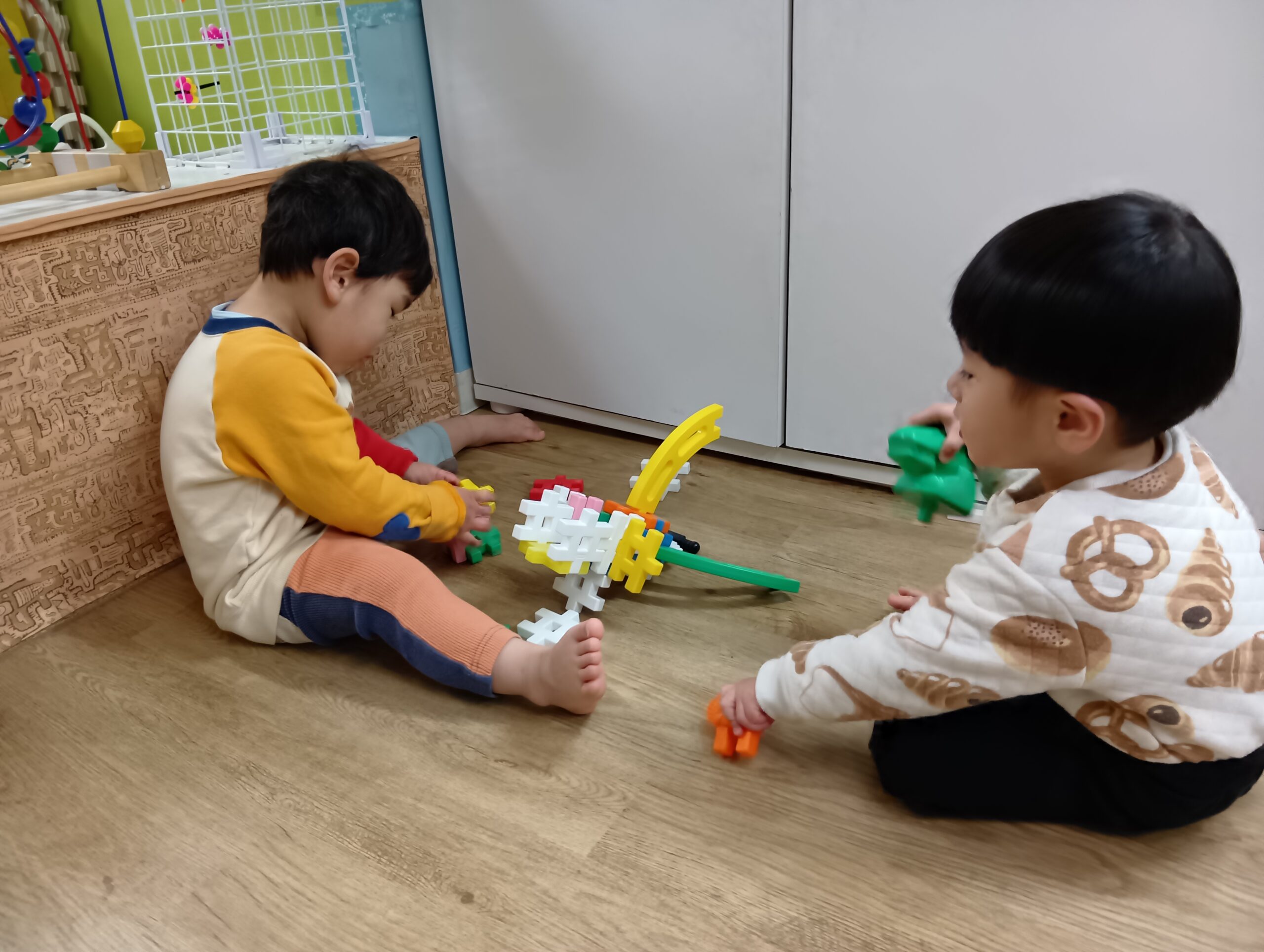 お外でたくさん遊んだ後は、室内でブロック遊びをして過ごしました!