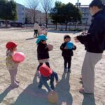 お友達と手をつないで並んで公園内を歩いた後、先生と追いかけっこをしたり、ボールで遊んだりしました🏃