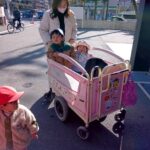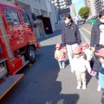 大きなはしご消防車が止まっていて、「大きいねぇ」と見上げたり、指をさしながら興味津々で見たりしていましたよ🚒