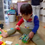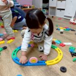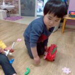 お部屋に戻ってからも少し遊び、給食の準備ができたことを知らせると早く食べたくて大喜びで片づけ始めていましたよ🧸