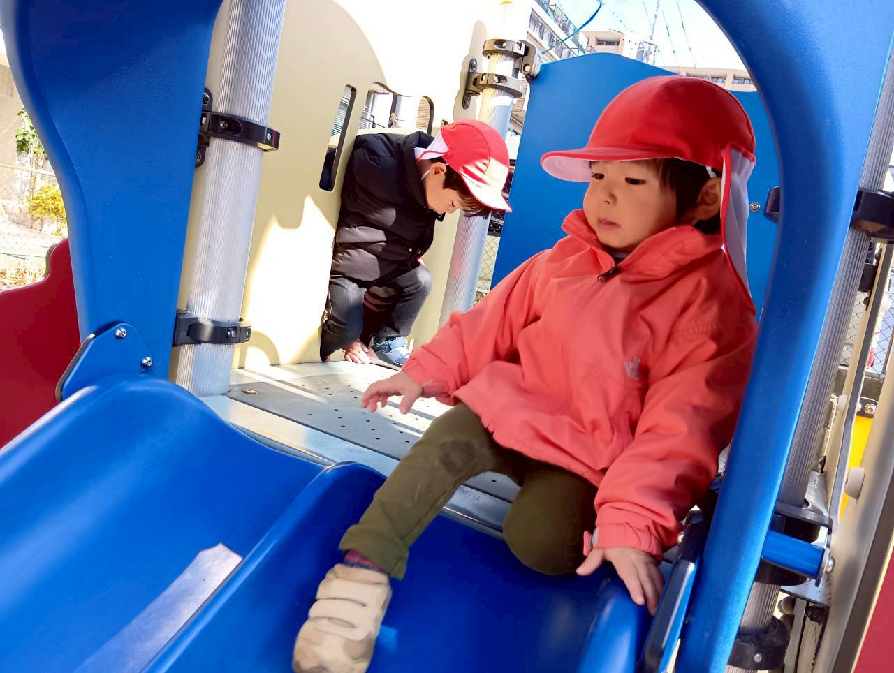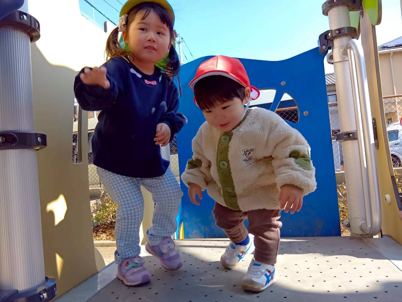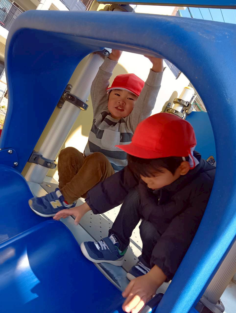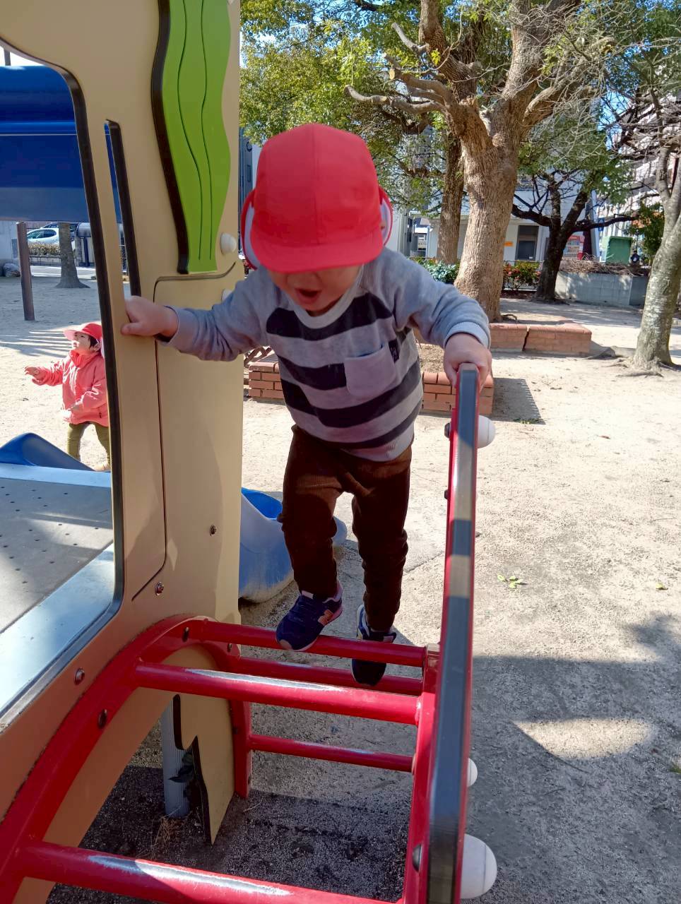 すべり台では階段と太鼓橋と登り口が二つあり、自分のできる方を選ぶ子もいれば、難しい方にチャレンジしてみる子もいましたよ😊