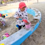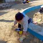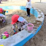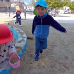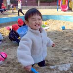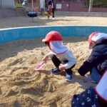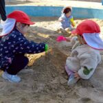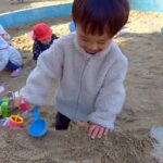 お砂場ではお友達と協力して高い山を作ったり、カップにお砂を入れて「アイスクリーム!」と食べさせに来てくれたり🍦