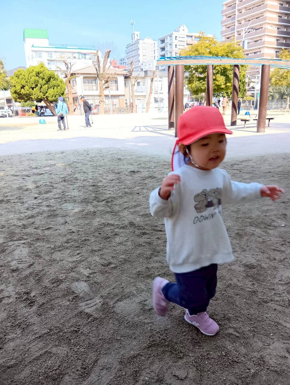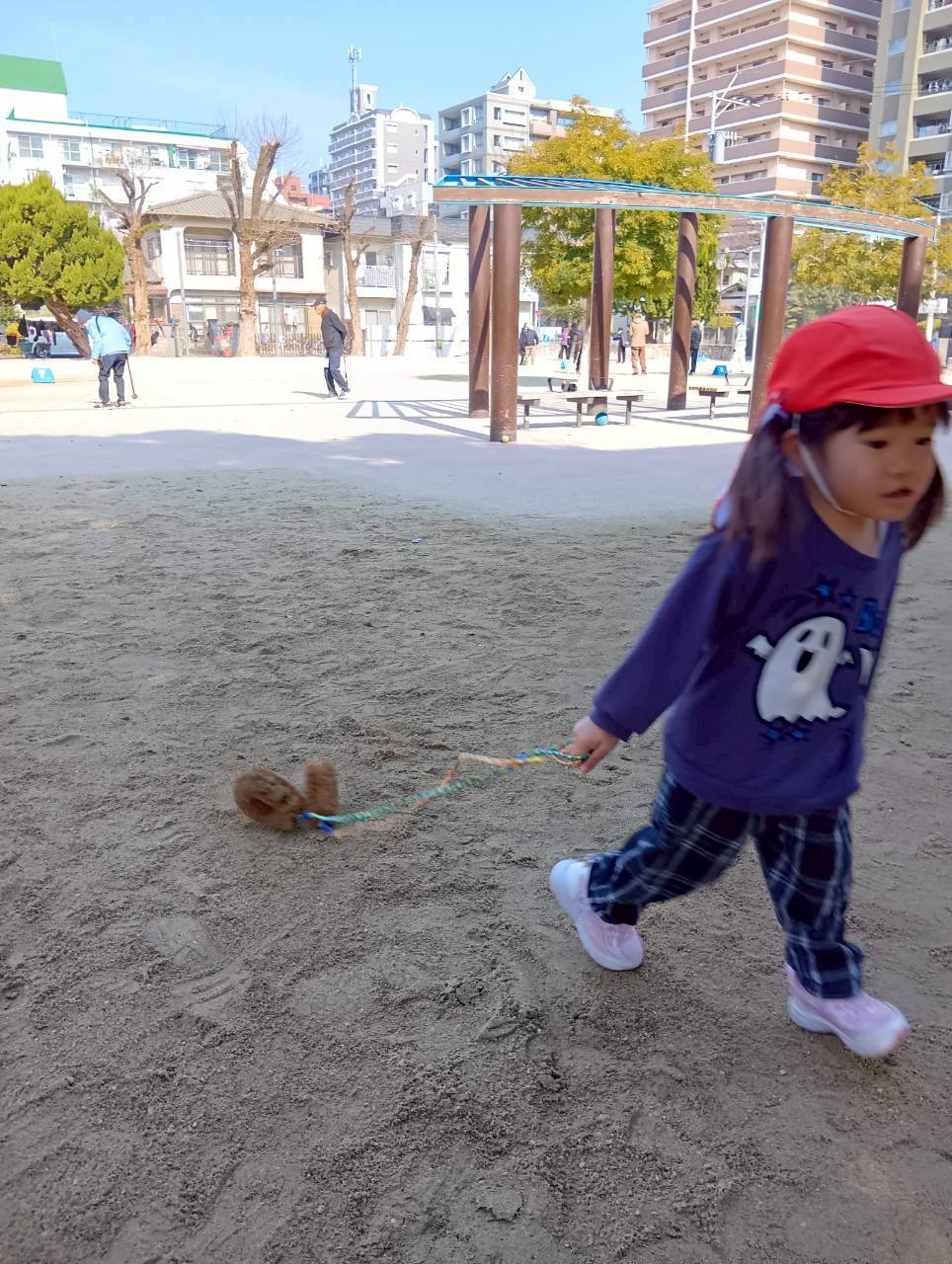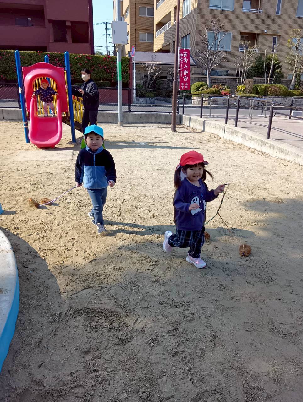 ひも付きのおもちゃを手に持ち、ひたすら全力で走る子もいてとっても楽しそうでした🏃