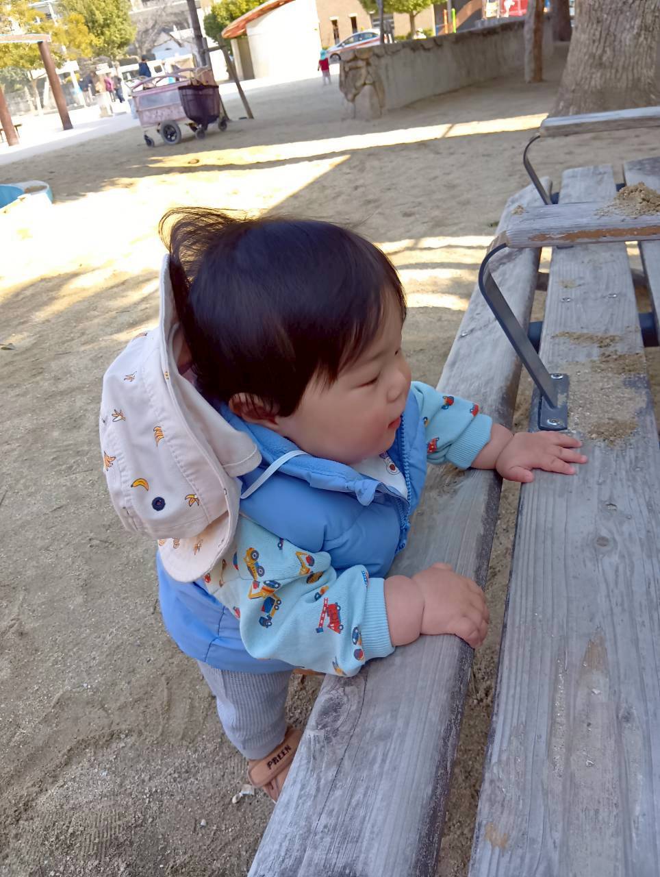 公園に着くまでに見えるトラックやバスを先生やお友達に教えながら歩いていましたよ!
